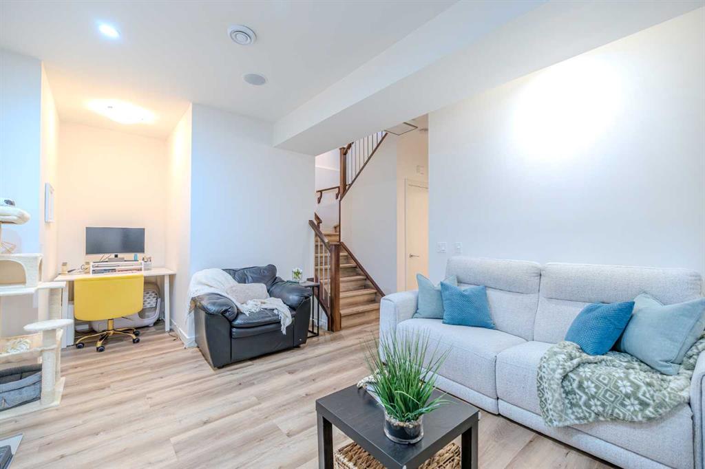 Well maintained, modern, and quiet 2-storey townhome offering nearly 2,000 sq ft of developed living space in the heart of Killarney. This 3-bedroom, 3.5-bath home features 2 bedrooms up and 1 down. The primary bedroom offers high ceilings, double sinks, a spacious shower, and walk-in closet. The second upstairs bedroom includes its own ensuite, plus convenient second-floor laundry. Fully developed basement with a large third bedroom, 4-piece bathroom, and second living room—ideal for guests or a home office. Recent updates include new flooring, fresh paint, and updated light fixtures. Features include a double-sided fireplace between the living and dining rooms, quartz countertops, gas range, stainless steel appliances, and ample storage. Low condo fees, single detached garage, and an excellent inner-city location—just a 3-minute walk to the LRT for an easy commute downtown, with quick access to 17 Ave, Crowchild Trail, transit, and local amenities.