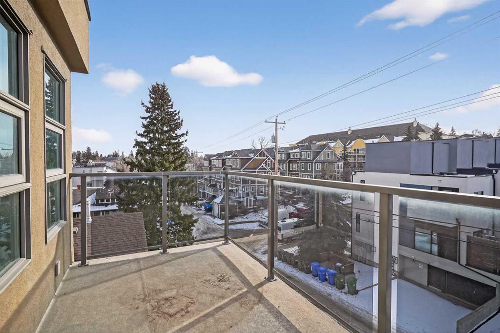 This home offers 1438 square feet, spread across two levels and rooms know what they’re meant to be. Most condos on the market are single-level and tightly packed, but here the space has room to breathe. One of the bedrooms tucks away a quiet nook—use it as an office, a media space, or somewhere to retreat when the day calls for it—along with a generous walk-in closet. Outside, the neighbourhood unfolds at an easy pace: Marda Loop sits about a fifteen-minute walk away—close enough for coffee, dinner, and errands, far enough to keep the peace at home. Set on the top floor and at the end of the building, this two-storey condo lives within a small eight-unit complex that feels more private than most. The layout is balanced and deliberate, with two true bedroom suites, each with its own ensuite, but thoughtfully different in their storage: one with a walk-in closet, the other with a wide, wall-to-wall closet that keeps everything within easy reach. The main level opens beneath nine-foot ceilings, anchored by a kitchen designed for real use rather than display—built around a quartz island, a gas stove, and upgraded stainless appliances—flowing naturally into a living area that feels open without feeling exposed. Upstairs, the separation continues, along with in-suite laundry and one of the home’s quieter luxuries: outdoor space on both levels. Two south-facing balconies—one above, one below—catch the sun from morning through evening and offer a sense of openness that’s hard to find in condo living. Below it all, a titled stall in the heated, secured underground parkade keeps the practical side of life as thoughtfully handled as the rest.