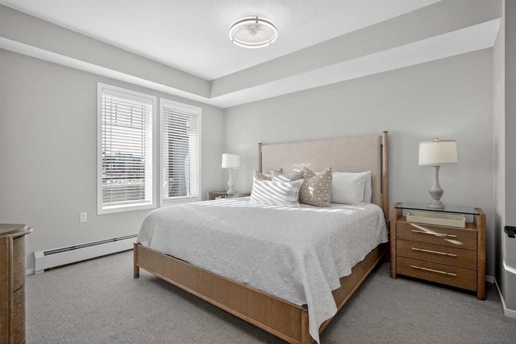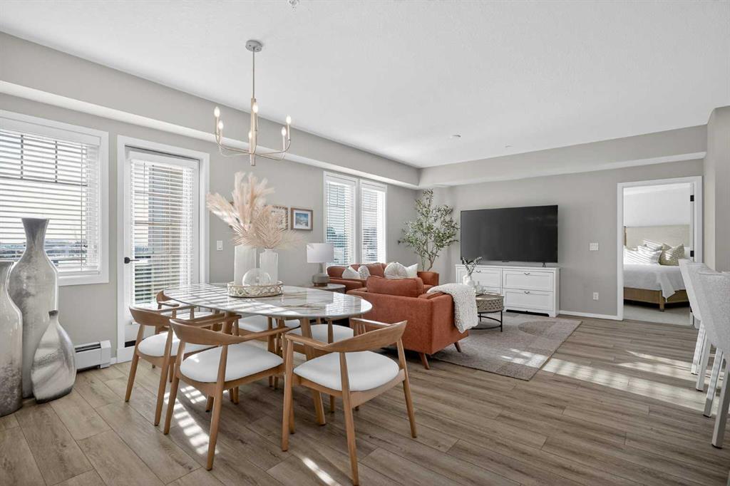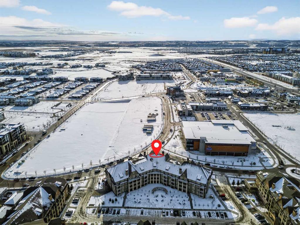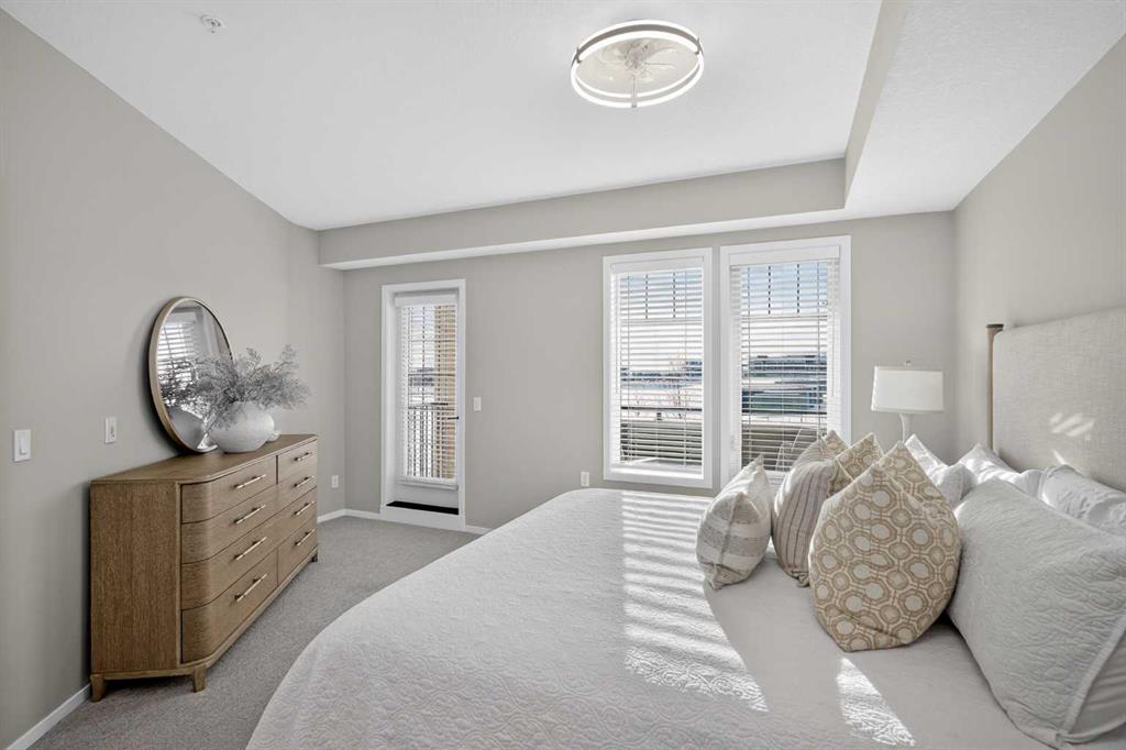 Experience the pinnacle of lake-community living in this exceptional 1,255 sq. ft. condo located in the award-winning community of Mahogany. Meticulously maintained and thoughtfully designed, this rare 2-bedroom, 2-bathroom PLUS DEN home with 2 BALCONIES offers the space and comfort of a detached residence with the ease of condo living. The open-concept main living area is filled with natural light and enhanced by wide-plank flooring that flows seamlessly through the kitchen, dining, and living spaces. The kitchen is both stylish and practical, with white cabinetry, quartz countertops, stainless steel appliances, and a generous island- perfect for everyday living, entertaining, or working from home. The living and dining areas flow easily together, creating a warm and welcoming space. The primary bedroom offers a quiet retreat with a private balcony, walk-in closet and a dual-vanity ensuite featuring quartz counters and modern finishes. A second generously sized bedroom is located near the second full bathroom, ideal for guests or family. The den offers the ideal space for a home office, hobby room, or reading area. A rare feature for condo living, this home includes two South-facing balconies that offer excellent outdoor space and all-day sun. The location provides easy access to Mahogany Lake, private beaches, walking paths, and wetlands, and is within walking distance to Westman Village, dining, shopping, and services.