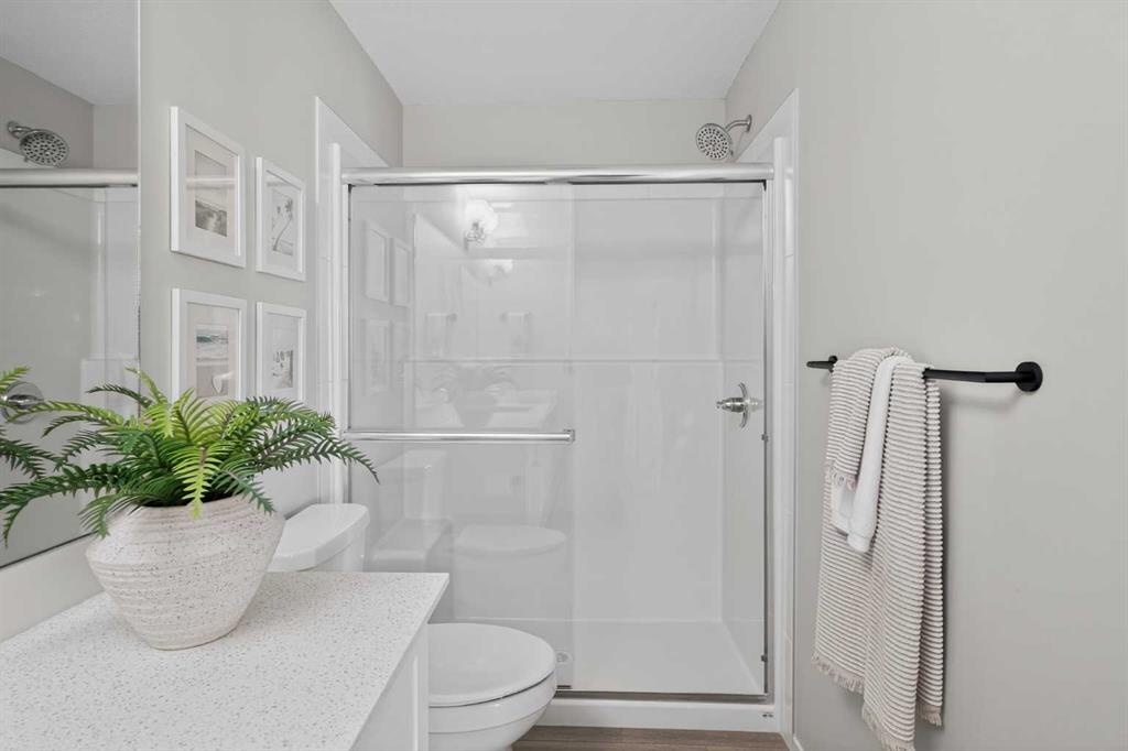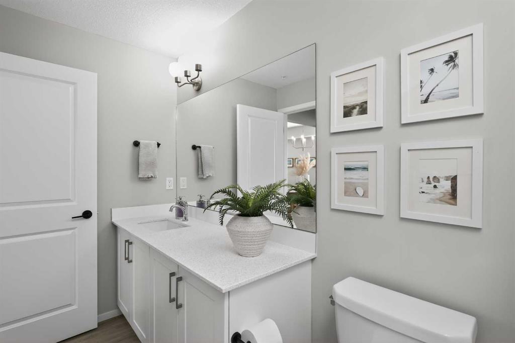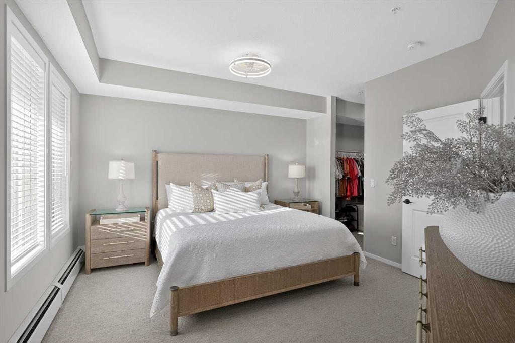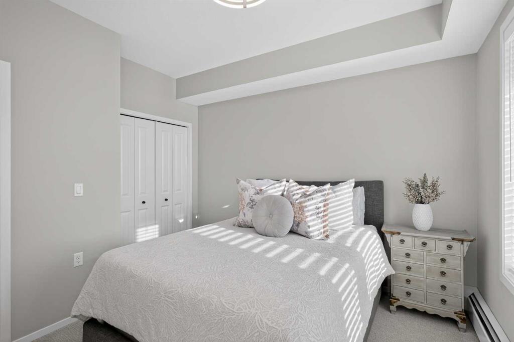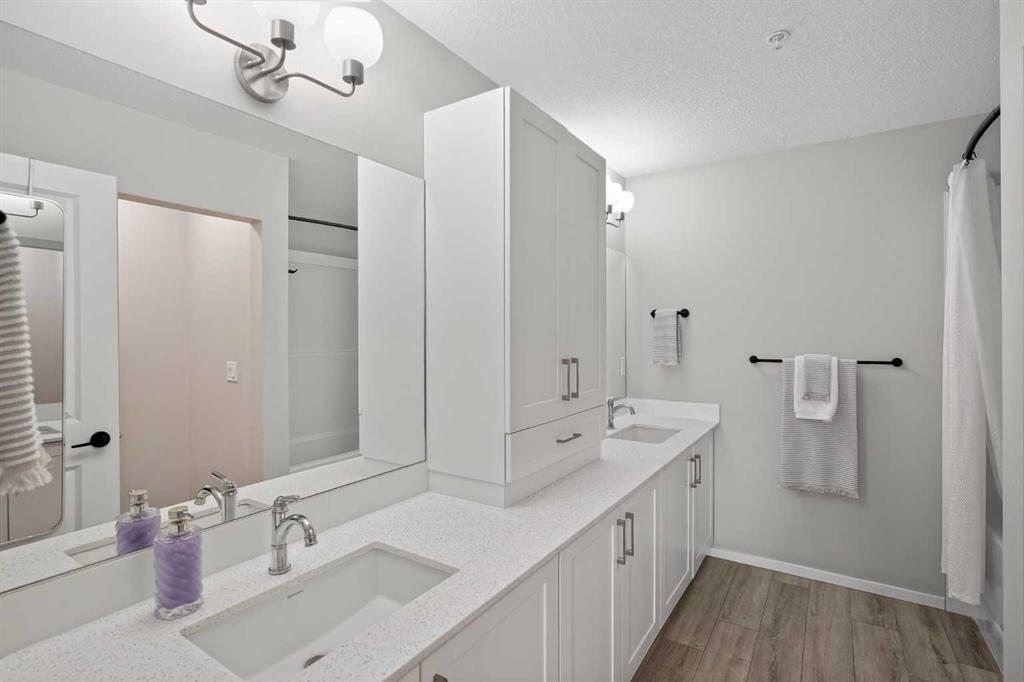 Experience the pinnacle of lake-community living in this exceptional 1,255 sq. ft. condo located in the award-winning community of Mahogany. Meticulously maintained and thoughtfully designed, this rare 2-bedroom, 2-bathroom PLUS DEN home with 2 BALCONIES offers the space and comfort of a detached residence with the ease of condo living. The open-concept main living area is filled with natural light and enhanced by wide-plank flooring that flows seamlessly through the kitchen, dining, and living spaces. The kitchen is both stylish and practical, with white cabinetry, quartz countertops, stainless steel appliances, and a generous island- perfect for everyday living, entertaining, or working from home. The living and dining areas flow easily together, creating a warm and welcoming space. The primary bedroom offers a quiet retreat with a private balcony, walk-in closet and a dual-vanity ensuite featuring quartz counters and modern finishes. A second generously sized bedroom is located near the second full bathroom, ideal for guests or family. The den offers the ideal space for a home office, hobby room, or reading area. A rare feature for condo living, this home includes two South-facing balconies that offer excellent outdoor space and all-day sun. The location provides easy access to Mahogany Lake, private beaches, walking paths, and wetlands, and is within walking distance to Westman Village, dining, shopping, and services.
