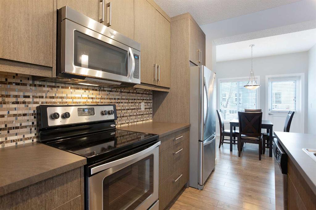 DOUBLE ENSUITE | TANDEM GARAGE | Welcome to the Ebony Townhomes in Mahogany! Here is your opportunity to own in one of Calgary's most desired communities. This 2 Bed 2 and a half bath townhome offers you an incredibly well maintained living space with ample natural light. Above the front foyer with garage access, the main living area is well thought out with a 2-piece bathroom, kitchen nook with balcony access and a massive center island with plenty of cupboard space. Upstairs provides you 2 large bedrooms, each with their own 4-piece ensuite bath making this a perfect living situation for a small family or first time buyer with a roommate! Laundry can also be found conveniently located on the upper floor taking the hassle out of laundry day. If you're looking for a workshop or extra parking the 35 foot long tandem garage has you covered! This unit is turnkey and ready to move into. Book your viewing today and see how well maintained this unit, complex and the surrounding area are!
