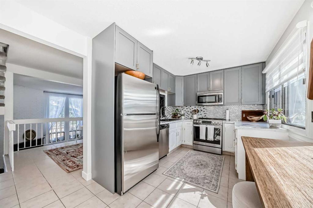 Click brochure link for more details. Welcome to one of Braeside's best-kept secrets — Brandy Lane. Tucked into one of the community's most established complexes, this four-level townhome offers the kind of layout that's genuinely hard to find. The main floor is designed so that the kitchen, dining room, and living room each have their own place without feeling closed off. The living room is anchored by a gas fireplace, 12' ceilings, and floor-to-ceiling windows that bring in great natural light. The kitchen has stainless steel appliances, a reverse osmosis system, and a breakfast nook for morning coffee. The formal dining room sits comfortably between them. It's a layout that lets everyone do their own thing without being on top of each other. Upstairs, the primary bedroom is generously sized with a walk-in closet, a 4-piece ensuite, and a bonus area that works well as a dressing space or sitting area. Two additional large bedrooms and a second full bathroom round out the upper level. Downstairs, you'll find a flexible space that works well as an office or home gym, plus a laundry area with a new dryer (2025) and new furnace (December 2025). Step outside, and the deck backs onto some of the most beautiful mature trees in the area. It's a genuinely private and peaceful outdoor space that's hard to find in a complex setting. Single attached garage, insulated and drywalled, with an extra-long driveway for a second vehicle. Condo fees include water and sewer, and the complex has real upgrades coming: new wood fascia and soffits, additional landscaping and tree planting, and freshly painted wood fencing. An easy online portal keeps residents connected for documents and communications. Minutes to Glenmore Reservoir pathways, schools, shopping, transit, and Southland Leisure Centre.