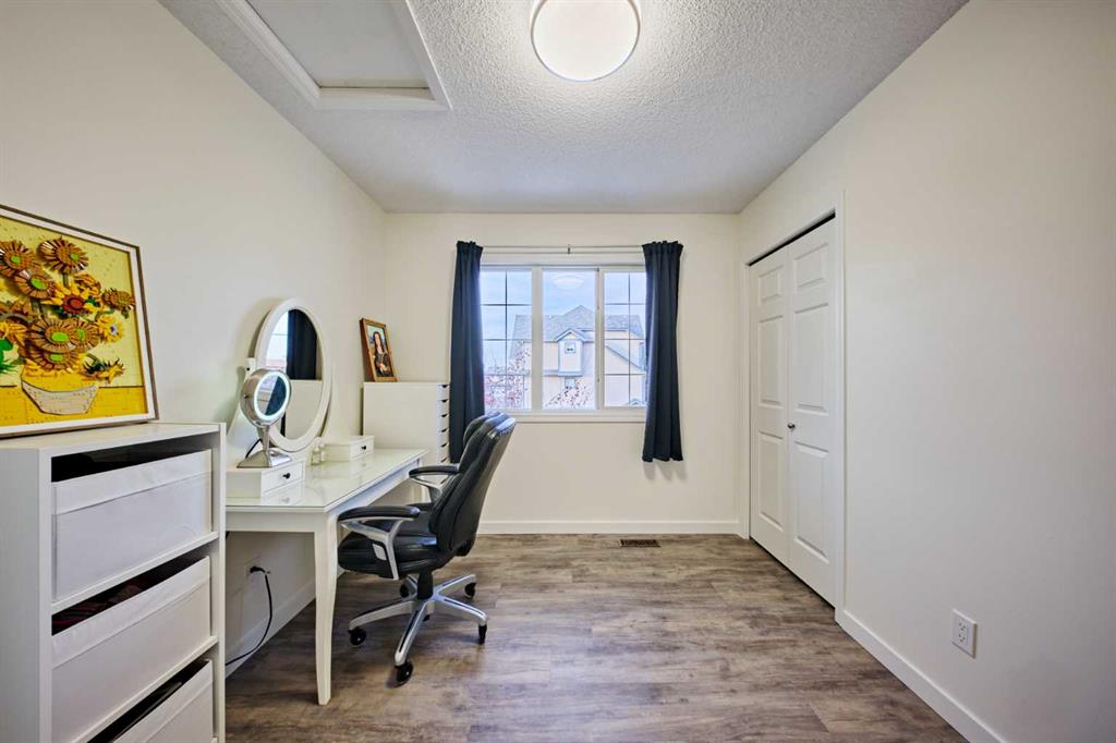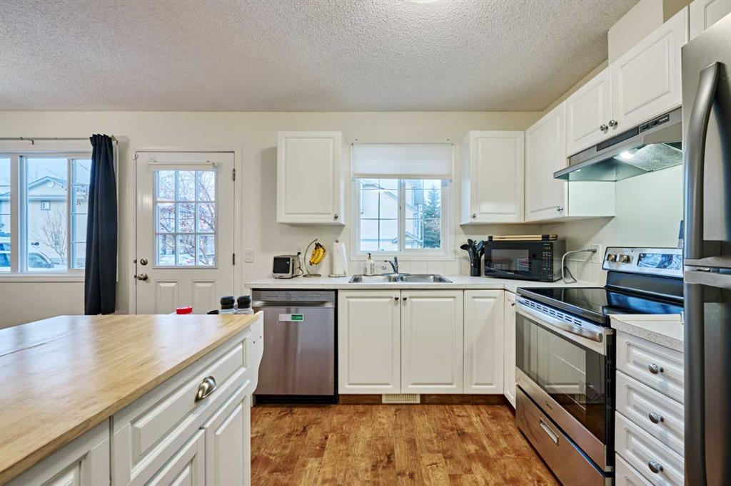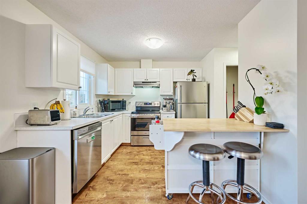 Welcome to this beautiful/Well-maintained 3-bedroom townhome in the community of Evergreen is near everything that the SW has to offer. Just steps from playgrounds, Shopping, Schools & Transit........A spacious entrance greets you as you enter from the south facing porch. Laminate floors & Large windows throughout the main floor flow from the living room into the dining area and into the open eating area/kitchen. All carpets were replaced. The entire home freshly painted in neutral tones and replaced all new light fixture. Open concept. The massive/bright living room can easily accommodate all your furniture while the dining room allows you to host large family get-togethers for years to come! Gourmet kitchen is overlooking the backyard, completed with functional white cabinetry, removable kitchen island and ALL NEW Stainless-Steel Appliances. Good size dining room is perfect for hosting those memorable meals. Garden Door to your semi-private exposed aggregate patio, space to BBQ & lounge in the sun all day! 2 parking stalls & visitor parking, RIGHT OUTSIDE your back door! New Vinyl flooring throughout the second floor. Upstairs features a large master with 3 piece ensuite & walk-in closet. Across the hall, two additional bedrooms await your kids, guests or office space. The downstairs is wide open and awaits your creative touch. Roughed in plumbing is there for your convenience. Ideal for first-time buyers, small families, or investors — this is a fantastic opportunity to own in a well-managed complex in a family-friendly neighborhood. Book a private showing today!