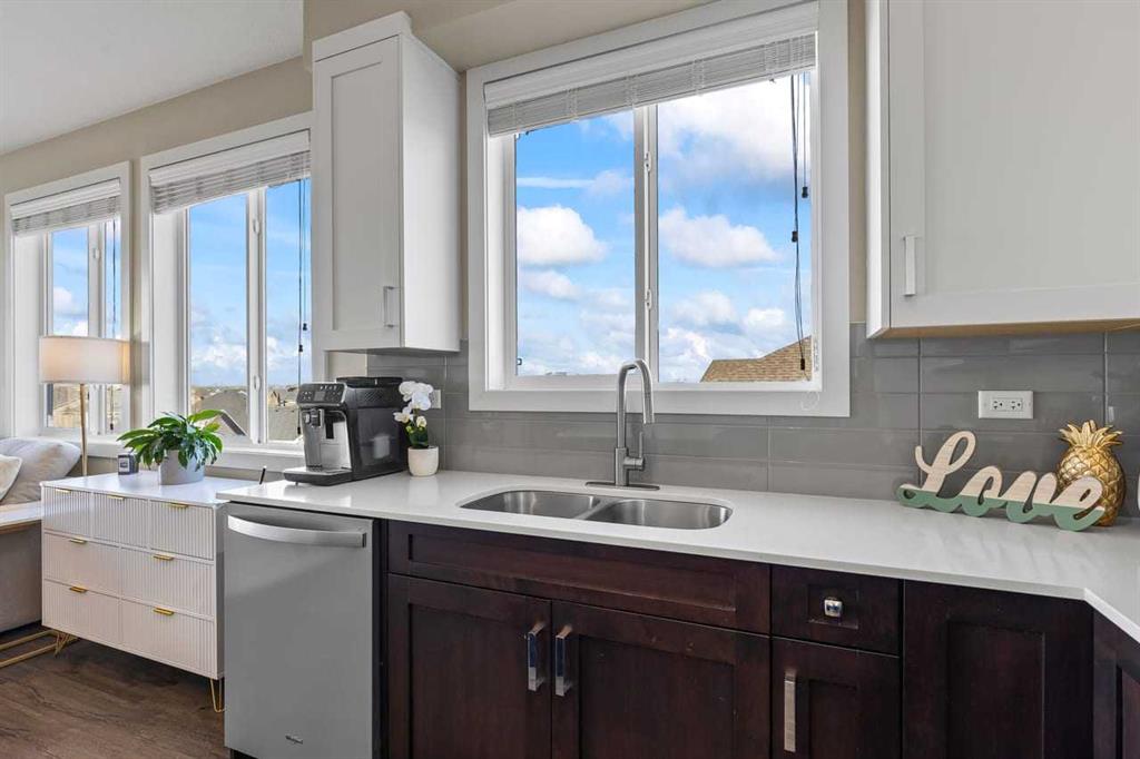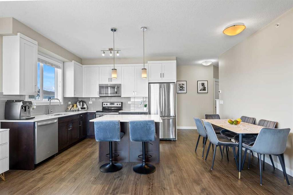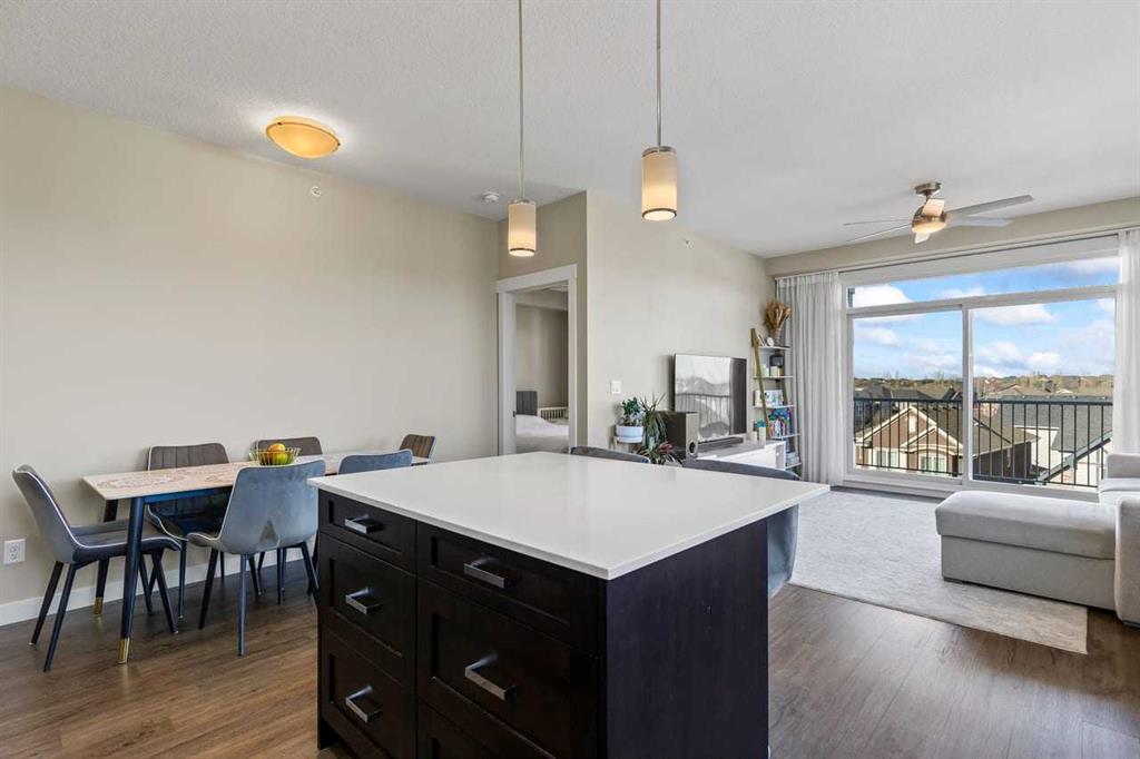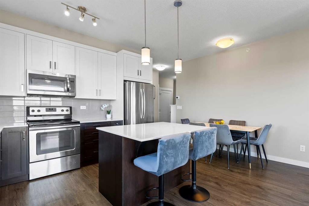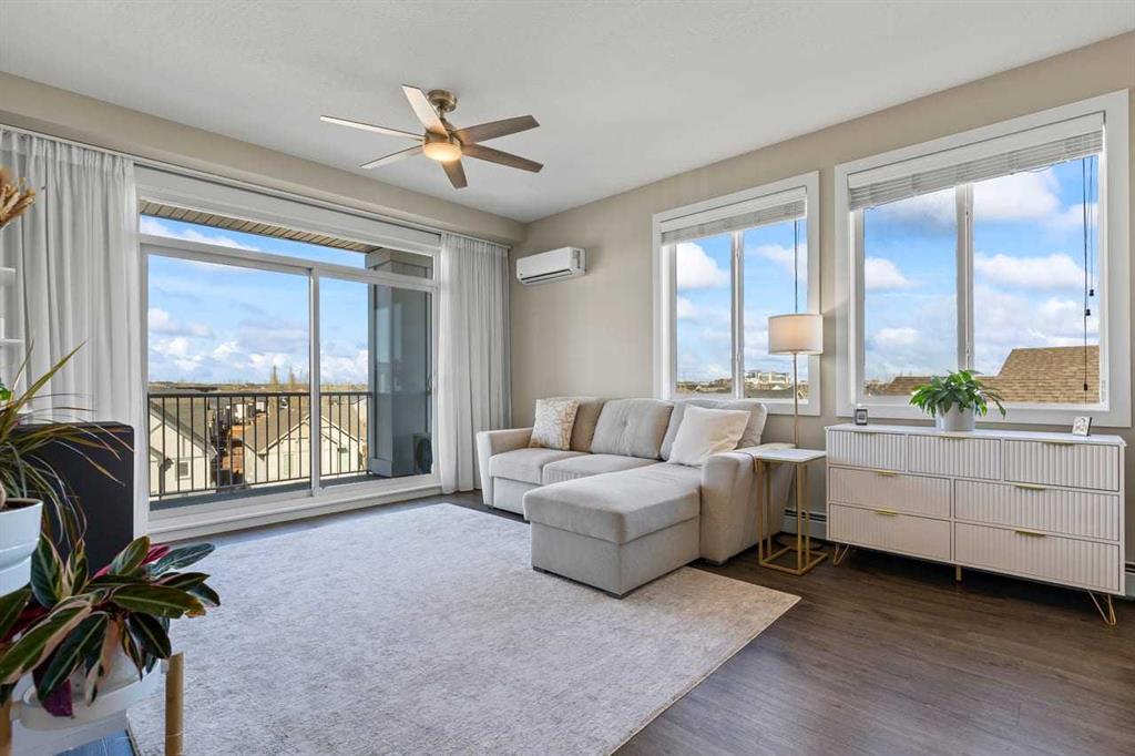 WELCOME TO THIS BRIGHT, BEAUTIFUL, TOP-FLOOR, CORNER 2-bedroom, 2-bathroom condo unit in Cranston offerING an OPEN-CONCEPT DESIGN with LARGE WINDOWS that flood the space with NATURAL LIGHT. The kitchen is a chef's delight with STAINLESS STEEL APPLIANCES, QUARTZ COUNTERTOPS, modern WHITE SOFT-CLOSE CABINETS. This unit features AIR CONDITIONING, DINING ROOM, and DURABLE LVP FLOORING throughout the living areas. The LARGE PRIMARY BEDROOM includes a WALK-THROUGH CLOSET and 5-PIECE ENSUITE complete with dual sinks, separate shower and bathtub, while a second bedroom and full 4 PIECE bathroom provide comfortable, flexible space for guests or family. Relax and enjoy the clear view from the top floor balcony. This unit also includes TWO TITLED PARKING STALLS —> ONE UNDERGROUND and ONE SURFACE plus an assigned STORAGE UNIT for added convenience. Cranston is a well-established, family-oriented community with shopping, schools, parks, playgrounds, and the Century Hall community centre, as well as walking and bike paths. Tucked at the top of the ridge, you’ll enjoy a short distance to the river valley, easy access to Deerfoot Trail, close to South Health Campus, and all Seton amenities nearby. DON'T MISS THE OPPORTUNITY TO OWN THIS FANTASTIC CONDO OR MAKE IT YOUR NEXT INVESTMENT!
