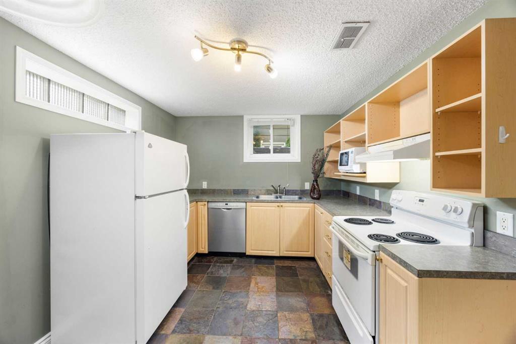 Open House November 8th Saturday 1:30pm to 3:30 pm ! Retro charm with modern conveniences, come see this upgraded bungalow in the highly desired neighborhood of Banff Trail. Fresh paint, a new furnace (2021) upgraded electrical for both main floor and basement suite (illegal) his home is move in ready. The main floor features gorgeous hardwood floors throughout and the renovated kitchen features a slate tile floor, a new refrigerator and large windows bringing in natural light. The main level has 2 bedrooms, a 4 piece bathroom with floor-to-ceiling tiles, hardwood and slate tile throughout. Large windows bring in lots of natural light. The upgraded 2 bedroom illegal suite includes a gas fireplace, private entrance and shared laundry. The large private backyard features a stone patio, large deck and fire pit for our gorgeous summer weather and single detached garage. Close to transit, U of C and across the street from McMahon Stadium, your new home would be a great meeting spot for all your friends before football games.
