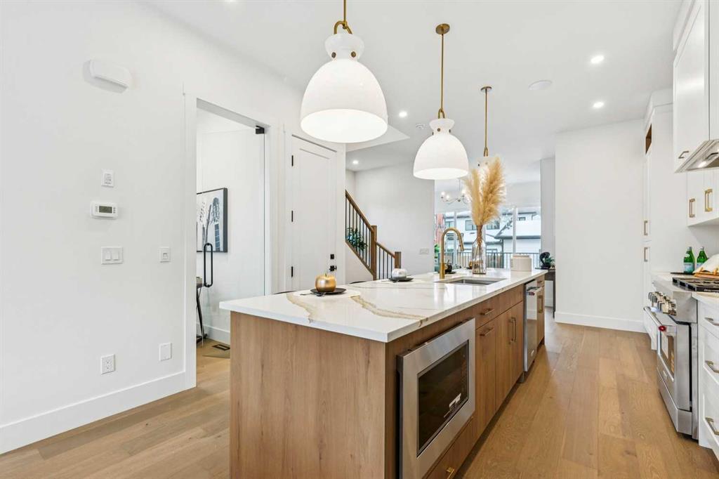 ***OPEN HOUSE SAT & SUN from 12:00pm to 2:00pm*** Introducing a remarkable new luxury infill in the heart of Killarney, offering nearly 2,000 sq ft of meticulously curated living space where architectural elegance meets modern comfort. Set in one of Calgary’s most coveted inner-city communities, this residence delivers a seamless blend of sophisticated design, airy openness, and refined functionality. A welcoming formal dining space makes an elegant first impression, setting the stage for the home’s elevated aesthetic. The space transitions beautifully into a show-stopping chef’s kitchen, anchored by a dramatic 12-foot quartz waterfall island that serves as both a design centrepiece and an entertainer’s dream. Premium finishes, clean lines, and thoughtful layout create a kitchen that is as beautiful as it is practical. Across from the kitchen, a light-filled executive office offers a quiet, polished environment for work or study. At the rear of the home, the living room exudes warmth and sophistication, highlighted by a sleek fireplace feature and expansive glass patio doors that open to the generous rear deck, creating an effortless indoor–outdoor lifestyle experience. A custom mudroom with built-in storage and a tastefully designed powder room complete the main level with both style and intention. Upstairs, the primary suite is a serene retreat defined by a vaulted ceiling, abundant natural light, and a spacious walk-in closet. The spa-inspired ensuite elevates daily living with designer tilework, dual vanities, and a sculptural freestanding soaking tub. Two additional bedrooms, a beautifully appointed main bath, and a convenient upper laundry room round out this thoughtfully designed level. The lower level showcases the builder’s signature extended LEGAL BASEMENT SUITE — a distinctive feature that provides exceptional additional living space and sets these homes apart. Bright, spacious, and beautifully finished, this private level includes a full kitchen, open-concept living area, two bedrooms, a versatile flex room, and dedicated laundry. Ideal for executive tenants, multi-generational living, or upscale guest accommodations, this extension of the home enhances both lifestyle flexibility and long-term investment value. Completing the property is a double detached garage with paved lane access, offering everyday convenience with a polished touch. With its elevated finishes, intelligent floorplan, abundant natural light, and exceptional location near parks, schools, amenities, and quick downtown connections, this home represents the perfect balance of luxury, comfort, and enduring value.