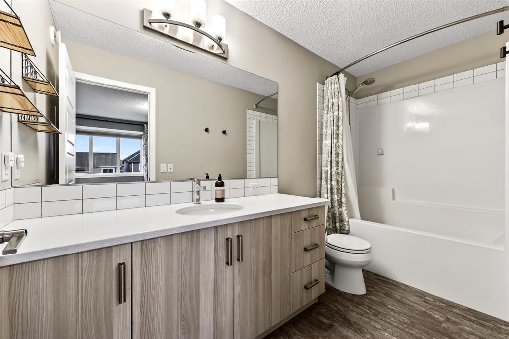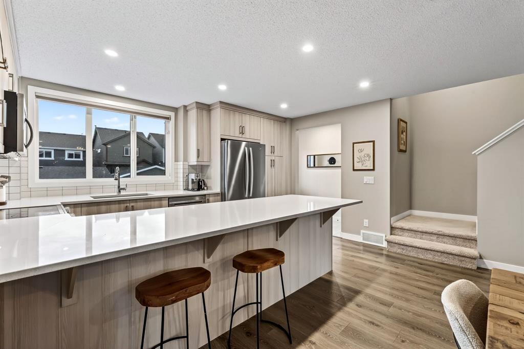 2500 Square feet of living space in the beautiful LAKE community of Mahogany awaits! This 4 bedroom 4 bathroom home is truly one of a kind - as you enter you will immediately notice the soaring 12 foot main floor ceilings, and the designer quality finishing throughout. The floor plan is beautifully done with a spacious living room area, separate large dining space and open concept kitchen with upgraded appliances, stone counters, and built in features. The upper level features a large primary retreat with its own ensuite bathroom and walk in closet, as well as 2 additional spacious bedrooms with their own 4 piece bathroom and upstairs laundry! The lower level does not feel “basement” like - this level has 11 foot ceilings, large windows, a huge recreation space as well as a large 4th bedroom and another full 4 piece bathroom. This home has a beautifully designed backyard with a deck and a flagstone patio, and a garage is no problem as the concrete pad is already poured! The tankless hot water system and high efficiency furnace keep utility bills low, and the central AC is a great feature for our warm Calgary summers! From the high end finishing, to the quiet yet accessible location, this beautiful property does not miss a beat! Enjoy the beautiful Lake community of Mahogany with its variety of restaurants, shopping, schools parks and more!