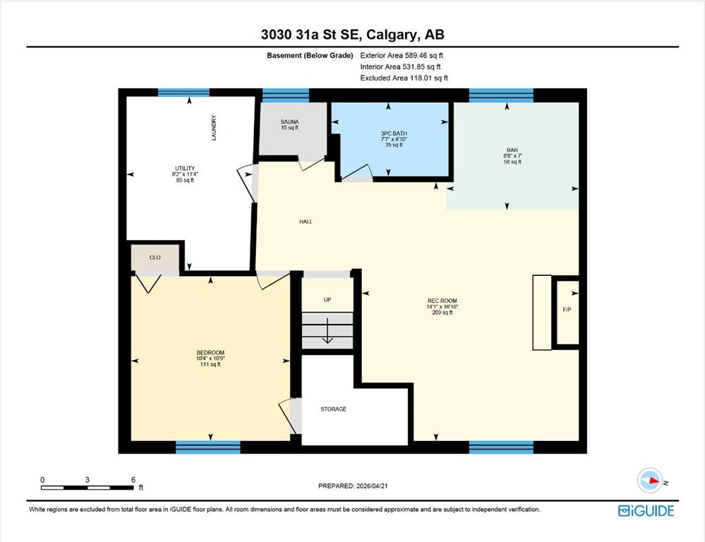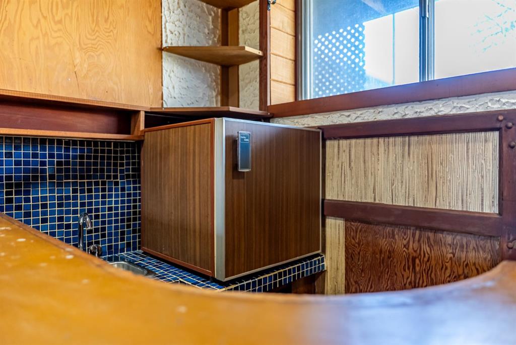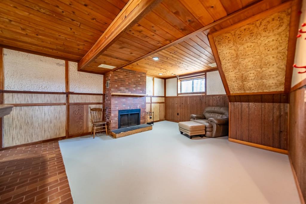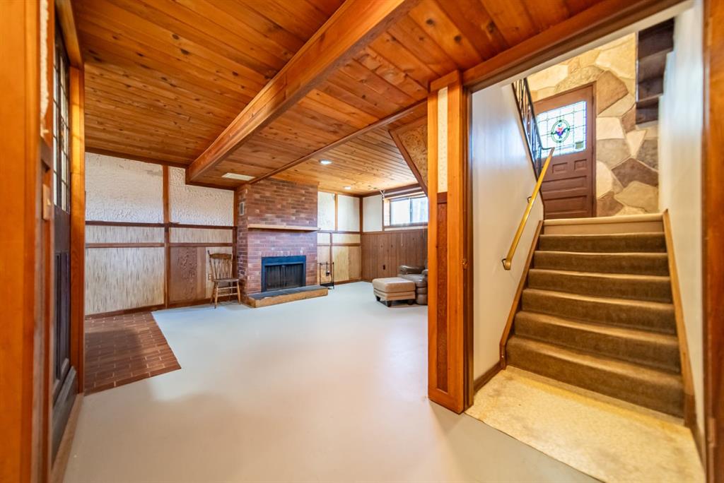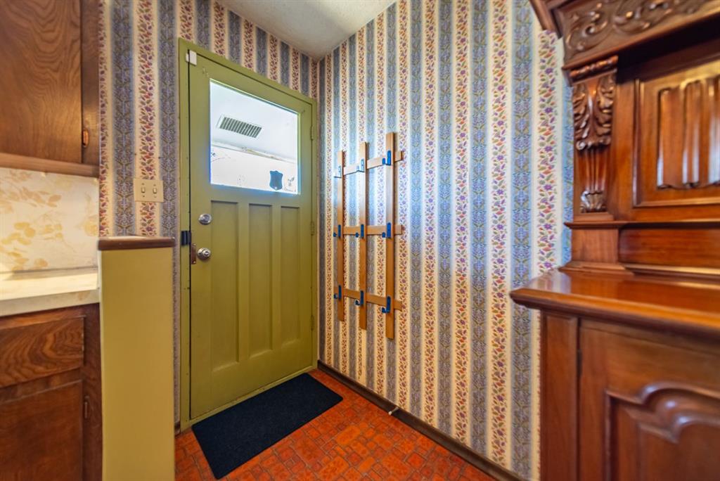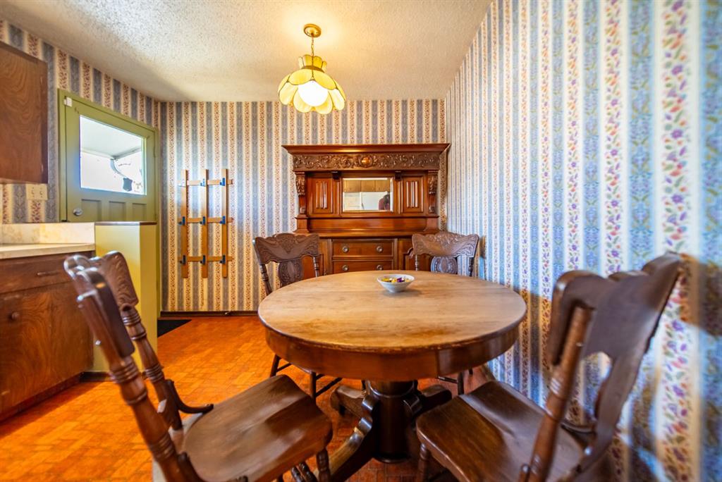 Welcome to 3030 31A Street SE — a home that has been genuinely loved for over fifty years and it shows. Nestled in the heart of Dover, an established Calgary community with a story worth knowing, this bi-level sits on a pedestrian pathway with green space out front and lane access to the rear — Radburn-style planning designed to prioritize people over traffic. The entry welcomes you with an original stained-glass door, a stone feature wall, an original pendant chandelier, and rough-hewn shelving. The main floor offers original hardwood floors, a bright living room, and a spacious kitchen with eating area. Two bedrooms up including a freshly painted primary, plus a fully renovated 3-piece bathroom with new vanity, tile and shower. The lower level is where this home truly surprises you. A generous rec room with a brick woodburning fireplace, tongue and groove wood ceiling, and a built-in bar complete with sink and bar fridge. A striking stained glass feature wall anchors the bar area. A cedar sauna rounds out a lower level built for entertaining and unwinding. The oversized single detached garage features a dedicated workshop space and additional storage, ideal for hobbyists or tradespeople. There is also room to park additional vehicles on the parking pad and garage apron. This is a rare opportunity to own a home with real character, in a community with real history, at a price that still makes sense.