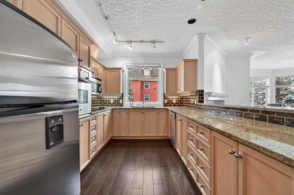 Welcome to River Grande Estates, a highly sought-after condominium community located in the heart of Erlton just steps from the Elbow River pathway system and minutes to downtown. This spacious third-floor unit offers 1,467 sq ft of comfortable living space with a well-designed layout featuring 2 bedrooms, a den, and 2 full bathrooms. The bright and open floor plan includes a generous living and dining area anchored by a cozy gas fireplace and large windows that bring in plenty of natural light. The kitchen offers ample cabinetry, extensive counter space, and a functional layout that flows seamlessly into the main living area—perfect for both everyday living and entertaining. The primary bedroom is generously sized and features a walk-through closet and a private 5-piece ensuite. The second bedroom and additional full bathroom provide excellent flexibility for guests or family, while the den offers a great option for a home office or reading space. Additional highlights include in-suite laundry, a private balcony, titled underground parking, and separate storage. River Grande Estates is known for its exceptional amenities including a large central courtyard, fitness centre, party room, library, billiards area, and secure underground visitor parking. The location is unbeatable—just steps to the Elbow River pathways, LRT station, Stampede Park, MNP Community & Sport Centre, and the shops and restaurants of Mission and 4th Street. An excellent opportunity to own a spacious condo in one of Calgary’s most desirable inner-city communities.