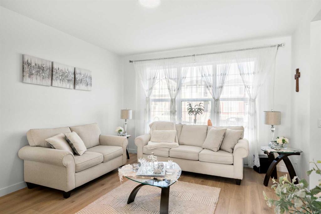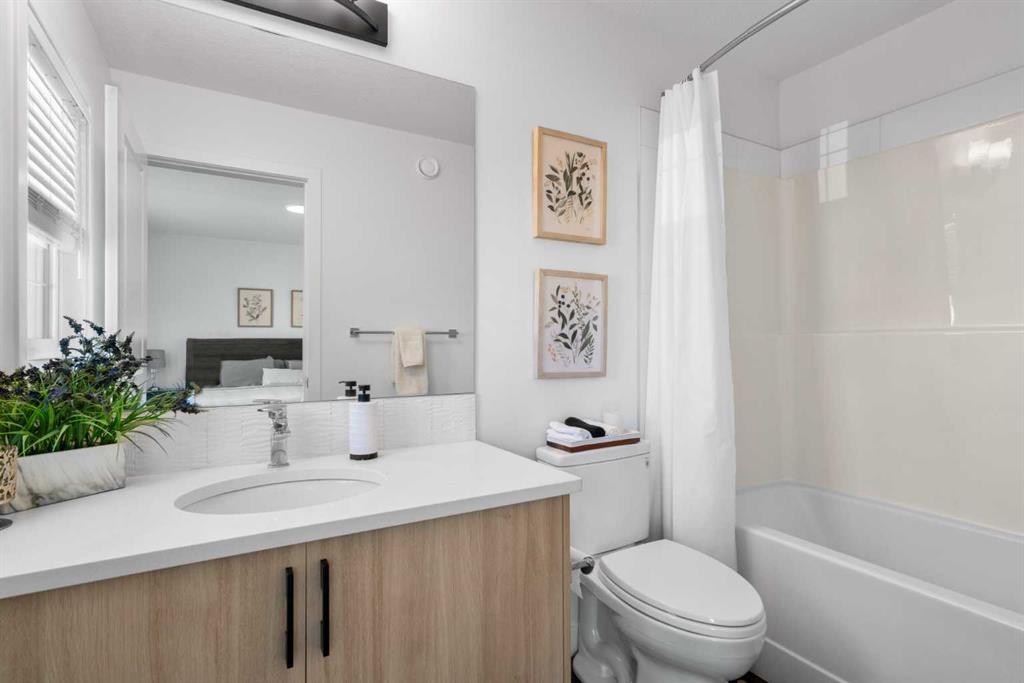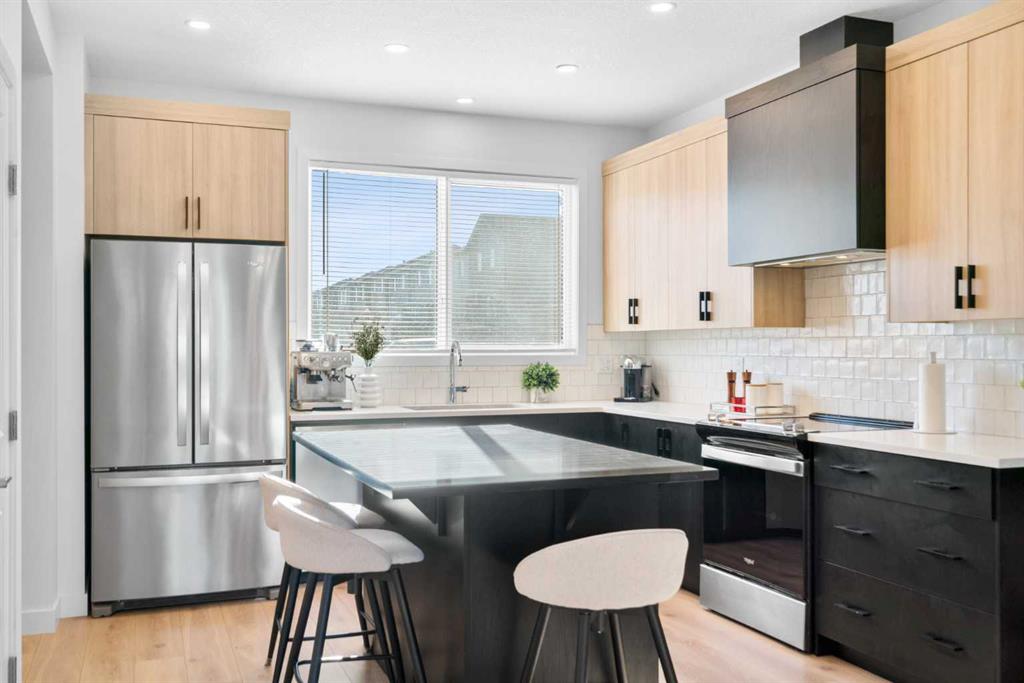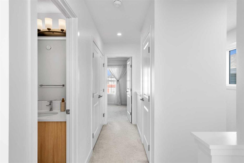 *** Home Sweet Home*** Welcome to this move-in ready 2024 Jayman BUILT House in the vibrant community of Ambleton NW. Offering 1444 sq. ft. of thoughtfully designed living space, this detached home features 3 bedrooms and 2.5 bathrooms with an open-concept layout ideal for modern living. The main floor highlights a gourmet kitchen with quartz countertops, central island with flush eating bar, stainless steel appliances including French door fridge with ice maker, designer hood fan, and microwave. The bright dining area and spacious Great Room are complemented by large windows for abundant natural light. A 2-piece bath and rear mudroom complete the level. Upstairs offers three generous bedrooms, full main bath, convenient upper laundry, and a primary suite with walk-in closet and 3-piece ensuite. The basement includes 9’ ceilings, separate side entrance, and 3-piece rough-in for future development (subject to city approval). Built with Jayman’s Core Performance features including 10 solar panels, Built Green Canada certification with EnerGuide rating, triple-pane windows, UV-C air purification system, high-efficiency furnace with HRV, Navien tankless hot water heater, quartz throughout, 12 x 10 composite deck, smart home package, rear BBQ gas line, and completed front landscaping. Ideally located near parks, future schools, shopping, and quick access to Stoney Trail.