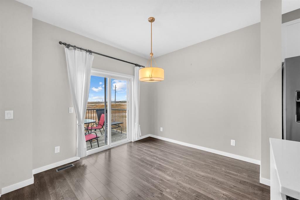 Welcome to this beautifully maintained townhome offering exceptional space and comfort in the desirable community of Copperfield situated on a walkout lot backing onto green space and walking trails! Featuring 3 bedrooms and 2.5 bathrooms, this home is perfect for families or anyone looking for a stylish and functional layout. The bright, open main level includes a welcoming foyer with access to the garage and a versatile walkout flex room. The second floor boasts an open-concept design with a spacious living room, dining area, pantry, 2 piece washroom and a beautifully upgraded kitchen complete with modern cabinetry, stainless steel appliances, and a large centre island perfect for entertaining. Off the dining room, step onto your private balcony that backs directly onto a walking trail and green space, offering peace and privacy. The upper floor features a generous primary bedroom with a 3 piece ensuite, along with two additional bedrooms and a full bathroom. Enjoy the convenience of a single attached garage plus driveway, giving you ample parking and storage. With its ideal location backing onto serene pathways and green space, this home offers both tranquility and accessibility. Located in a family-friendly community with nearby schools, parks, shopping, and easy access to Stoney Trail and Deerfoot, this move-in ready home is the perfect blend of comfort and convenience!