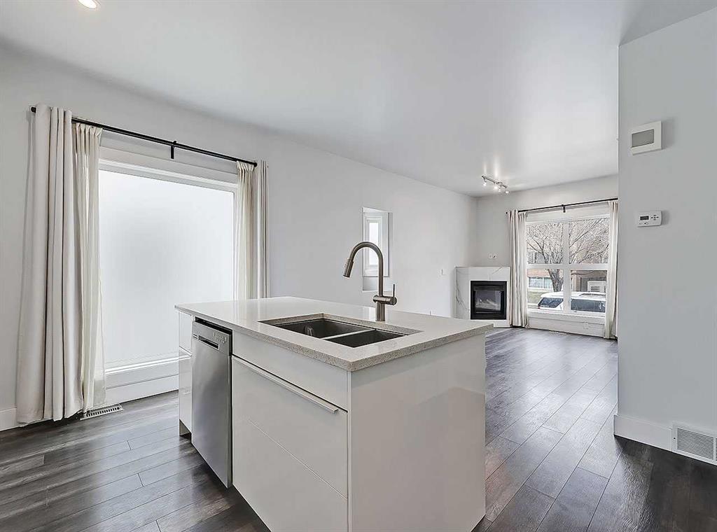 *OPEN HOUSE SATURDAY APRIL 25, 1:00pm-3:00pm* Welcome to Chateau Falls! This New York inspired FULLY RENOVATED TOWNHOUSE offers almost 1000SF of fully developed living space in one of Calgary most vibrant inner-city locations. It's nestled on a quiet on a tree-lined street but only steps away from Calgary's trendiest and most popular walking street - 17th Ave (The Red Mile). When entering the home, plenty of natural sunlight greets you a benefit you only get in an END UNIT with all the extra windows. Making your way through the light, bright, spacious main living space, you enter the heart of the home. The RENOVATED kitchen is equipped with UPDATED STAINLESS STEEL appliances, tall gloss white cabinetry featuring Phillips Hue multi-tone smart lighting, QUARTZ countertops, tile backsplash and massive kitchen island for that extra counter space and storage we all crave. Downstairs you'll find 2 very spacious bedrooms, generous, ample storage spaces and full bathroom. The WALK-IN closet in the primary bedroom is an absolute must-see as it is HUGE and the 2nd bedroom closet, offers a ton of space as well. The FULL 4-piece bathroom has been COMPLETELY RENOVATED and is stunning. You will have never have to worry about or deal with the inconvenience of small laundry spaces as this home has a full-sized LAUNDRY ROOM with full-sized washer and dryer. There are so many UPSIDES AND FEATURES to this property it is impossible to list them all but here are a few additional “must know” features: IN-FLOOR HEATING in the basement, the ENTIRE FLOORING throughout the unit has all been recently been replaced, 9’ ceilings, corner fireplace with tile surround, ample storage, and HEATED UNDERGROUND PARKING along with storage locker. The Chateau Falls condo corporation is in excellent shape!! Here are some of the recent updates that were completed: entire envelope of the building, doors, windows and the roof. All poly-b replacement has been scheduled, a great sign the corporation is on top of maintenance. Enjoy the PRIVATE and gated communal Chateau Falls courtyard with its beautiful water feature. This property is perfect for the 1st time home buyer, inner city professionals or investors looking to expand their rental portfolio.