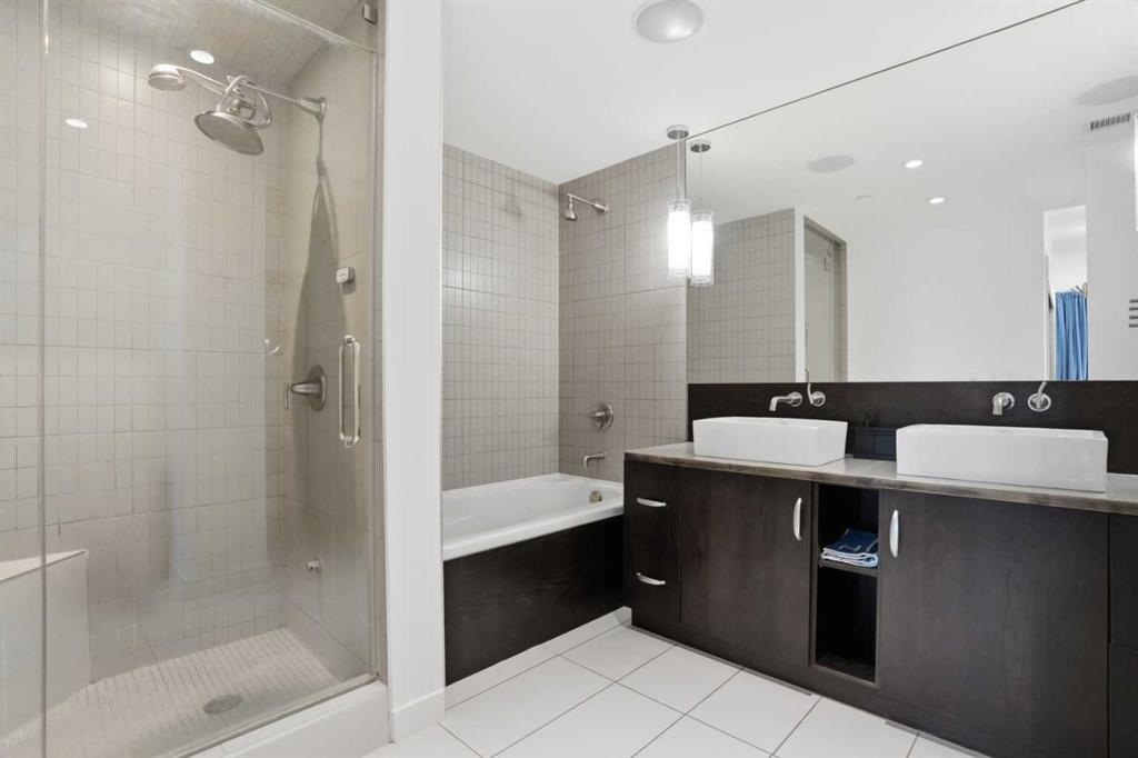 Experience elevated inner city living in The Castello, one of Calgary’s most sought after luxury buildings in the Beltline. This 918 sq ft one bedroom residence has been fully and extensively renovated, creating a truly one of a kind unit that cannot be duplicated anywhere else in the building. Unlike other units in Castello, this home has been completely updated with brand new luxury vinyl plank flooring, entirely new custom kitchen cabinetry, fresh designer paint throughout, and brand new modern contemporary fixtures that transform the space into a sleek and sophisticated urban retreat. The thoughtful renovation elevates both the style and functionality of the home, making it feel brand new and entirely unique compared to other units in the building. The bright open concept layout features 9 foot ceilings and dramatic floor to ceiling windows, allowing natural light to pour into the living space while showcasing unobstructed south facing views. The beautifully updated kitchen is designed for both everyday living and entertaining, offering quartz countertops, stainless steel appliances, full height cabinetry, a wine cooler, garburator, and generous preparation space. The spacious primary bedroom easily accommodates a king sized bed with nightstands and a large television, while the walk through closet leads to an impressive 5 piece spa inspired ensuite. The ensuite is one of the largest in the building and features dual sinks, a deep soaker tub, and a luxurious steam shower, creating a true at home retreat. For added convenience, the front loading washer and dryer are discreetly located within the ensuite. A separate guest bathroom provides additional comfort and privacy for visitors. Additional features include central air conditioning, a built in humidifier, in suite speakers with individual room controls, and a gas BBQ line on the balcony. The unit also includes titled underground secure parking and a titled storage locker. Residents of The Castello enjoy premium amenities including a fully equipped fitness centre, guest suite, car wash, and a social lounge. Perfectly located in the heart of the Beltline, you are steps from Calgary’s best restaurants, cafes, shopping, and downtown amenities. This is a rare opportunity to own a fully renovated, truly one of a kind residence in one of Calgary’s premier condo buildings.