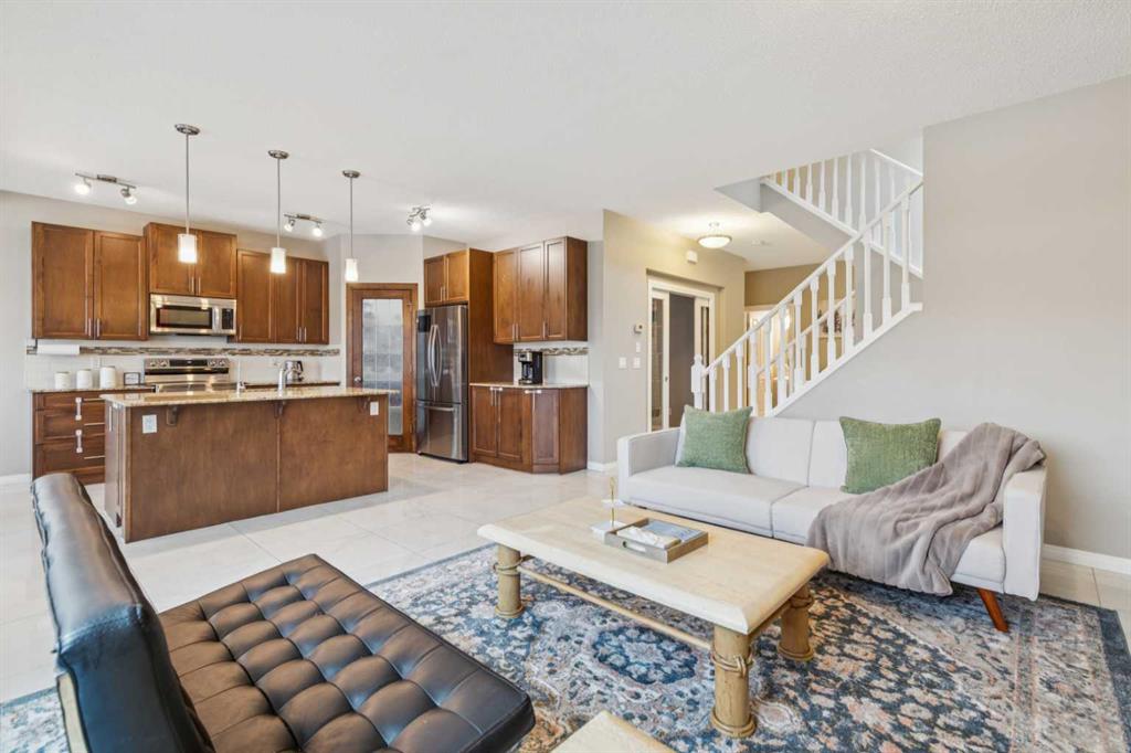 Step into this bright and spacious home featuring a gorgeous open-concept floor plan with massive windows that fill the space with natural light and showcase clean sightlines throughout. The main floor boasts 9-foot ceilings, a large foyer with front hall closet, and a main floor office — perfect for working from home. The chef’s kitchen is a showstopper with granite countertops, stainless steel appliances, a deep undermount sink, a walk-in pantry, and a large island overlooking the great room with a beautiful fireplace, wooden mantle, and tile surround — complete with a built-in area for your TV. Enjoy your meals in the dining area with glass lighting, or step through the patio doors to a private deck overlooking a spacious backyard and lush green space. A convenient 2-piece powder room completes the main level. Upstairs, the master suite is a true retreat, featuring a massive walk-in closet and a luxurious 4-piece ensuite with a soaker tub and separate shower. Three additional bedrooms with large windows and deep closets, a second 4-piece bathroom, and a generous family room with built-in speakers and floor-to-ceiling windows provide plenty of space for family living. The fully developed basement offers a huge rec room, two additional bedrooms, a full bathroom, plus storage and utility rooms — perfect for guests, teenagers, or home gym setup. Located close to parks, and just minutes from shopping and dining, this home combines modern elegance, functional design, and lifestyle convenience in one spectacular package. Don’t miss the opportunity to call this dream home yours!