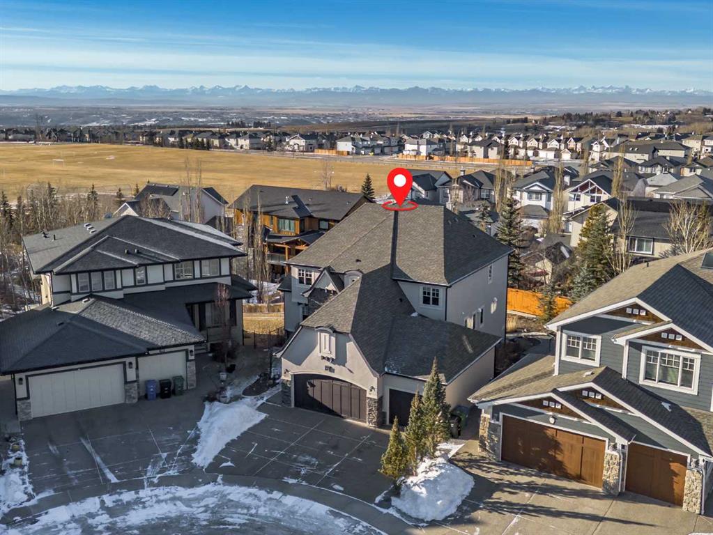 Unrivalled Executive Luxury with Panoramic Mountain Vistas Discover the pinnacle of sophisticated living in this stunning, custom-built executive residence located in the prestigious community of Rocky Ridge. Offering nearly 4,500 square feet of meticulously maintained living space, this home is defined by its breathtaking, uninterrupted panoramic views of the majestic Rocky Mountains. From the impeccable curb appeal of the professionally landscaped grounds to the rare convenience of the triple attached garage, every detail of this property has been curated to an exceptional standard of cleanliness and quality. The main level welcomes you with an impressive open-concept foyer that flows seamlessly into a formal dining room and a quiet, dedicated den—perfect for a sophisticated home office. The heart of the home is the grand great room, a light-filled sanctuary featuring soaring ceilings, a signature feature fireplace, and direct access to a sprawling west-facing balcony designed for taking in world-class mountain sunsets. For the culinary enthusiast, the gourmet chef’s kitchen is a true masterpiece. Equipped with top-of-the-line stainless steel appliances and a gas range, it is further enhanced by a dedicated spice kitchen, allowing for elaborate meal preparation while keeping the primary entertaining space in pristine condition. A functional mudroom, powder room, and full bath complete this level, ensuring ultimate convenience for both family and guests. The architectural focus on the mountains continues upstairs, where the bonus room features expansive windows that flood the home with natural light. The primary suite serves as a private sanctuary, boasting unmatched mountain vistas and a spa-inspired ensuite complete with a deep soaker tub, a separate shower, and dual vanities. Two additional oversized bedrooms, a full bathroom, and a conveniently located laundry room complete the upper floor, all finished with the same premium millwork and high-end fixtures found throughout the home. The fully developed walkout basement is designed for grand-scale entertaining. A massive recreation room is anchored by a stylish wet bar featuring an oversized social island, ideal for hosting friends or family. This level also includes two additional large bedrooms and a full bath, providing an ideal layout for a home gym, guest wing, or multi-generational living. This five-bedroom, 4.5-bathroom masterpiece is packed with upgrades, from custom cabinetry to designer flooring, and reflects a level of care and maintenance that is truly rare. Positioned in one of Calgary’s most scenic communities, this home represents a unique opportunity to own a piece of the Rocky Mountain skyline.