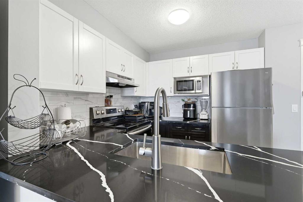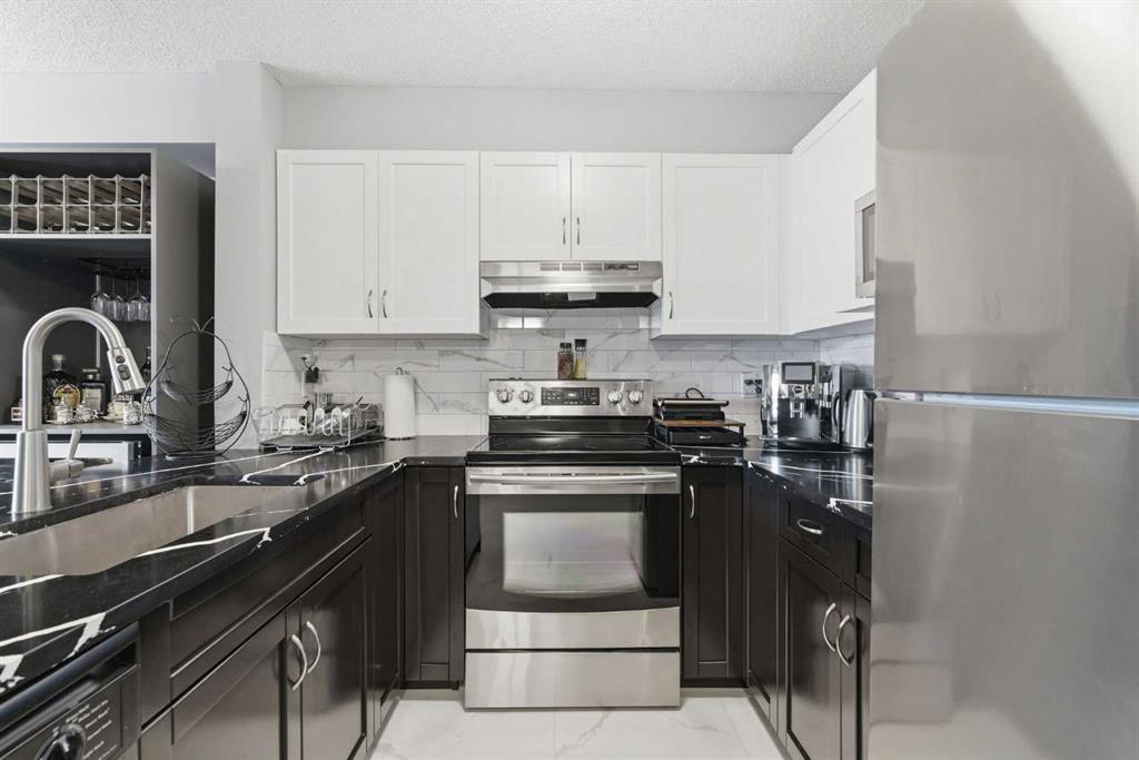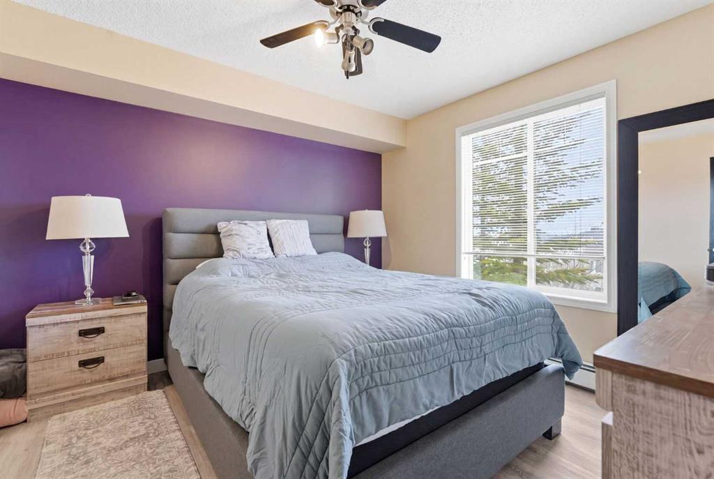 Welcome to this FULLY RENOVATED condo in the popular community of Panorama Hills, offering exceptional value, convenience, and modern living. Perfectly located close to schools, shopping, restaurants, and everyday amenities, with quick and easy access to major routes for a seamless commute. This unit truly stands out within the complex thanks to a thoughtfully completed, high quality renovation, nothing was overlooked! The stunning kitchen has been fully updated with STAINLESS STEEL APPLIANCES, STONE COUNTERTOPS, NEW CABINETRY, a stylish and fresh backsplash, and a functional BREAKFAST BAR, perfect for both everyday living and entertaining. The whole interior has been upgraded with NO CARPET throughout, featuring durable and modern LUXURY VINYL PLANK and TILE FLOORING for a clean, cohesive look. The spacious primary bedroom offers a convenient WALK-THROUGH CLOSET leading into the beautifully UPDATED BATHROOM, also complete with NEW CABINETRY, STONE COUNTERTOPS, and TILE FLOORING that extends into the STAND-UP GLASS SHOWER. Step outside to your private balcony, equipped with a GAS LINE for easy BBQing and outdoor enjoyment. This unit also includes TITLED UNDERGROUND PARKING for added security and convenience, along with a generous 8’ x 4’ STORAGE LOCKER in the secured parkade. To add the value, this unit is in a well managed complex with LOW CONDO FEES inclusive of all your utilities! A move-in-ready home in a fantastic location, this is one you don’t want to miss.