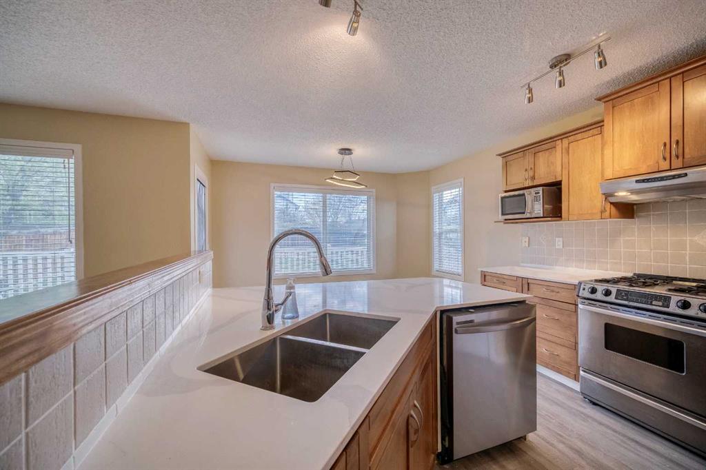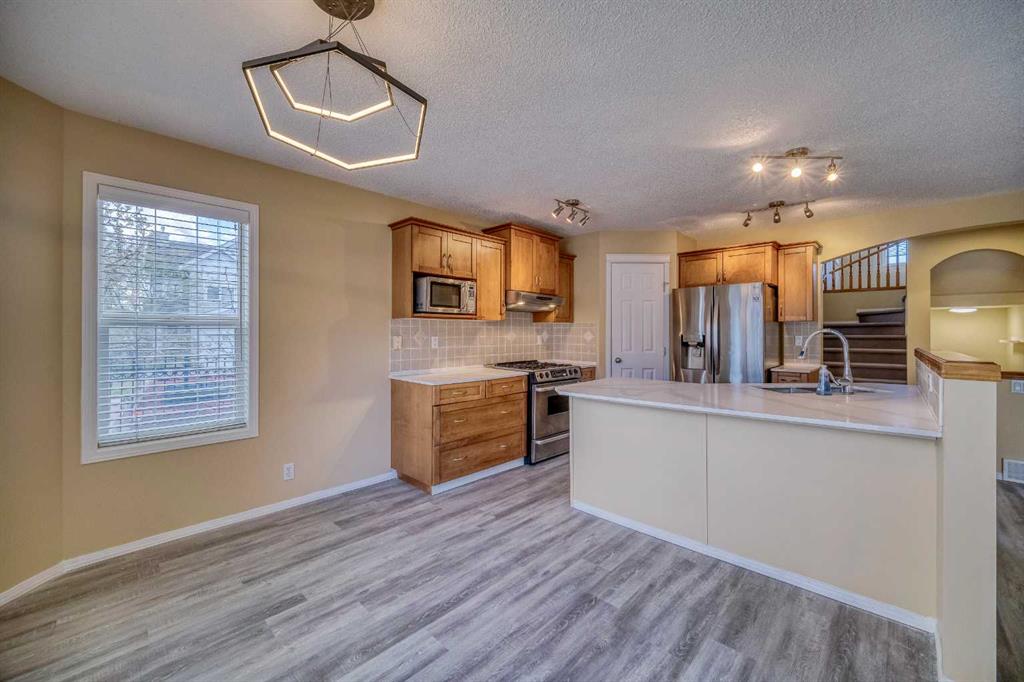 **OPEN HOUSE: 1-3 PM SUN, NOV 9 , 2025**Welcome to this freshly updated gem on a quiet street in the heart of Evanston. With new paint, new flooring, and a brand-new kitchen countertop, this 3+2 bedroom, 3.5 bathroom home is move-in ready! The main floor features a spacious foyer, open-concept living area, and a bright kitchen with upgraded stainless steel appliances, corner pantry, and raised breakfast bar. The dining area opens to a full-width rear deck—perfect for summer entertaining—while the cozy family room offers a gas fireplace with maple mantle and tile surround.Upstairs, enjoy a sunny bonus room, three bedrooms, and a 4-piece bathroom. The primary suite includes a 4-piece ensuite and large walk-in closet.The fully finished basement offers two large flex rooms and a 3-piece bath—ideal for extra bedrooms, an office, or playroom.Enjoy the private, fenced yard, insulated double garage, and oversized driveway with space for three vehicles. Close to schools, transit, shopping, and with easy access to Stoney and Deerfoot Trails. A fantastic family home at a great price—book your showing today!