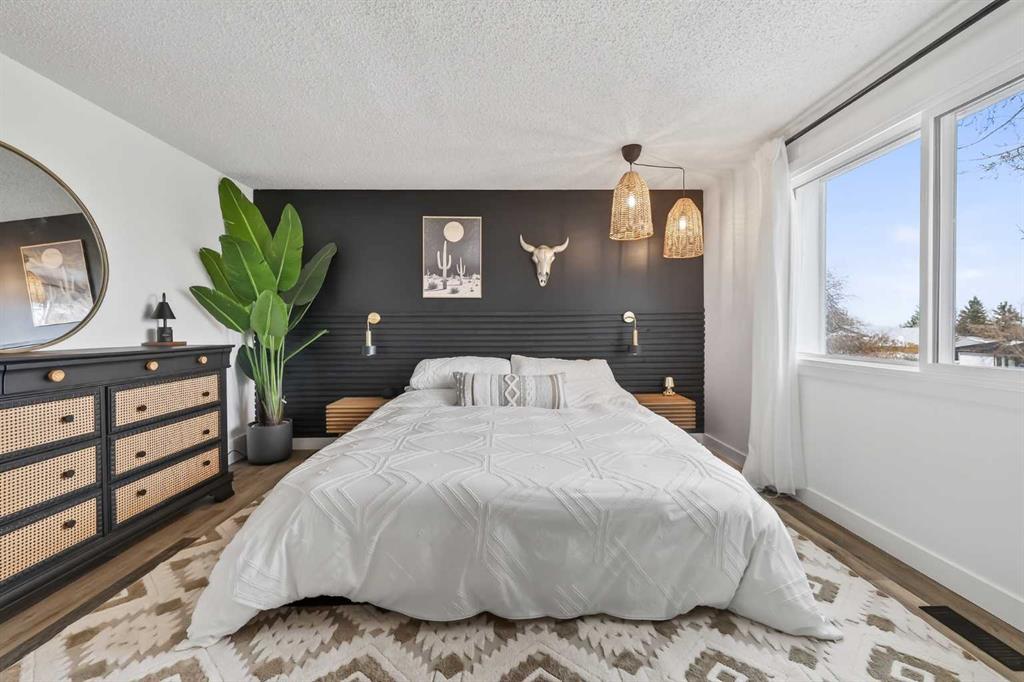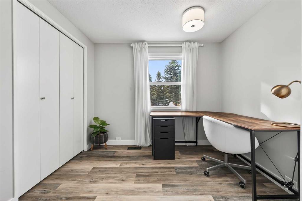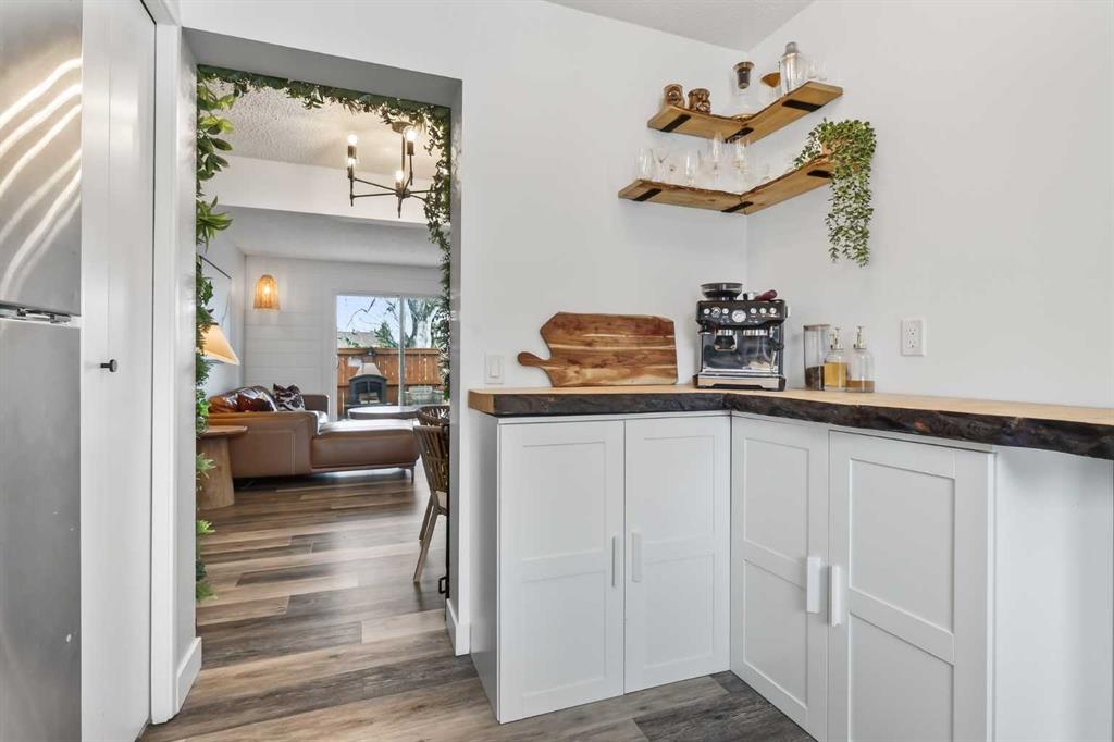 Exceptionally maintained and updated end unit townhome in Canyon Meadows! Well maintained complex in a very accessible location with a rare heated outdoor pool & tennis courts! Over 1500 Sq Ft of developed space, with a bright open floor plan. Completely remodeled kitchen with quartz countertops, stainless steel appliances, shaker style cabinetry, & live edge wood plank coffee bar with lower cabinetry! Luxury vinyl plank throughout the entire property. Sprawling living room with fluted wood acoustic sound panel feature wall. Sliding garden door to a sunny West facing rear yard, one of the biggest offered by townhomes in the city. Double primary bedrooms upstairs, with linen closet & fully updated main bathroom. Fully developed lower level with updated mechanicals, new washer/dryer, large media rm/flex room (currently in use as a guest bedroom), & full 4 piece bathroom. Canyon Glen Townhomes offers a lush, quiet grounds with mature trees and winding pathways which lead to a recently renovated heated outdoor swimming pool, completed with lockers, full-service bathrooms, and a recreation hall with pool tables, darts, kitchen, & more. Full tennis/sport courts on site. Very well managed complex, with some of the lowest condo fees in the city & lots of savings in reserve. An incredible value in Calgary's marketplace, completely turnkey and ready to be enjoyed.