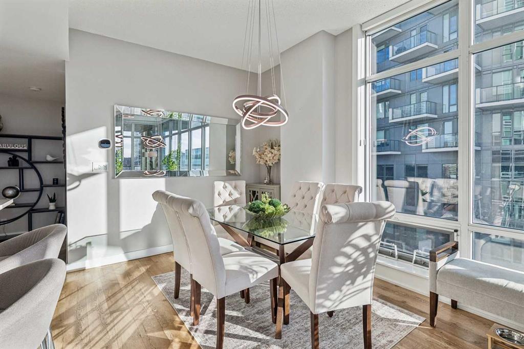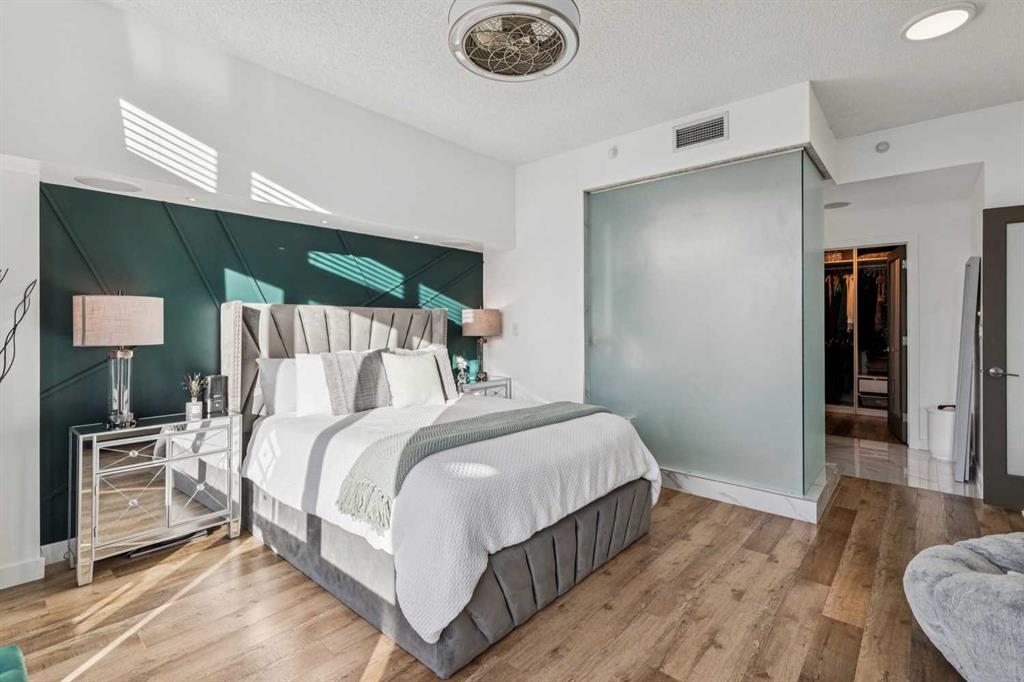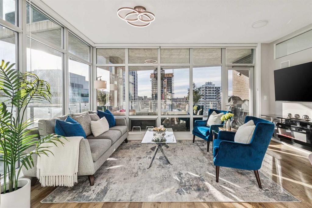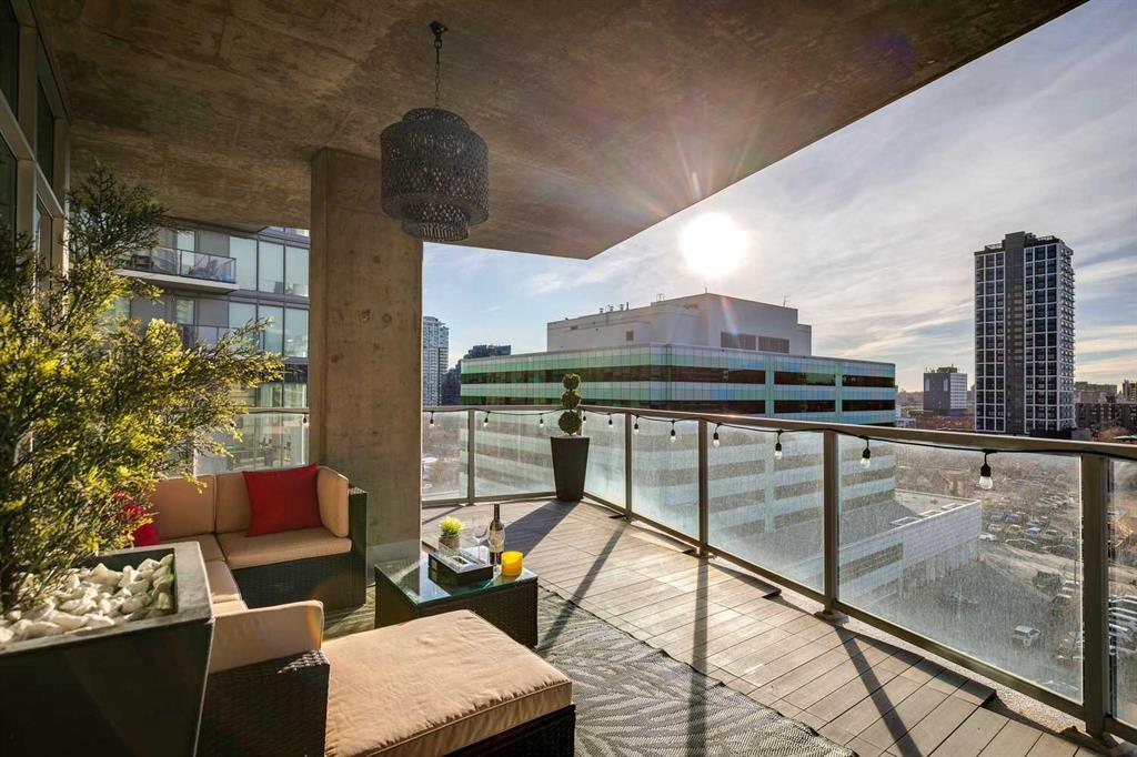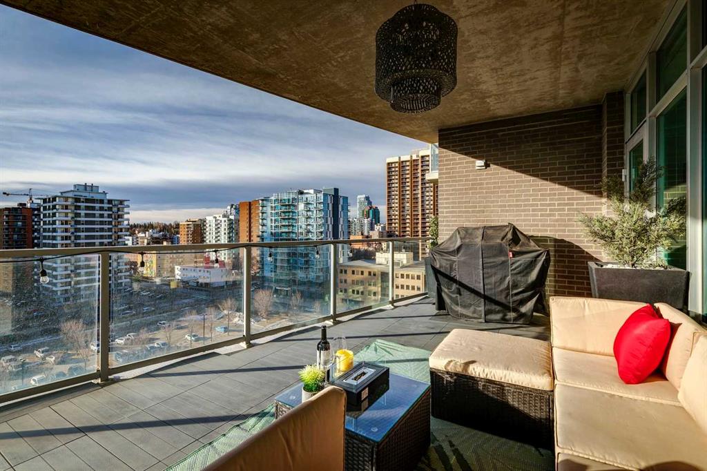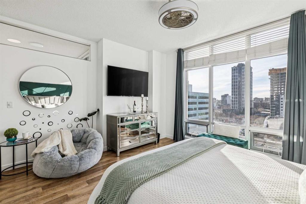 STUNNING RECENTLY RENOVATED EXECUTIVE CONDO IN CASTELLO WITH TWO TITLED PARKING STALLS & STORAGE! OPEN HOUSE: Sat. Feb 7th from 12-2pm AND Sun. Feb 8th from 11-1pm. Welcome to this beautifully upgraded unit in the prestigious, executive Castello complex, offering nearly 1,200 sq. ft. of thoughtfully laid out living space, two titled parking stalls, and titled storage. This quiet unit is filled with stunning natural light all day and boasts high end finishes throughout. Step into the main entrance featuring brand new tile flooring and modern lighting. The chef’s kitchen impresses with stainless steel appliances, quartz countertops, stylish new tile floors, updated light fixtures, and professionally painted cabinets enhanced with new hardware and additional cabinetry topped with a sleek glass surface. The spacious living room showcases floor-to-ceiling windows with brand new motorized zebra blinds, an elegant electric fireplace, and direct access to a massive covered wraparound patio (almost 300 square feet) perfectly extending your living space for entertaining or relaxing while enjoying stunning south facing Beltline views. The generously sized master bedroom offers a luxurious 4-piece ensuite with all-new lighting, mirror, tile floors and backsplash, painted cabinetry with fresh hardware, and a beautifully tiled shower with updated fixtures. A large walk-in closet features smart organization systems for added convenience. The second bedroom is equally spacious, complete with new lighting and zebra blinds. The main bathroom is mostly renovated, featuring new floor tile, lighting, shower tile and fixtures, sink fixtures, painted cabinetry, and new hardware, reflecting the same attention to detail found throughout this home. **Additional bonuses include:** recently repainted throughout, quiet concrete building construction, soft-close doors and drawers, Ecobee smart thermostat, central A/C, wine/beverage fridge, updated balcony lighting, laundry room storage cabinet, upgraded lighting throughout, and newer tile flooring in the laundry area. Castello’s exceptional amenities include concierge service, a fitness centre, guest suite ($75 per night), car wash bay, and secure, heated parking. This well managed building offers a true executive lifestyle. Located just steps from vibrant 17th Avenue shops, Stephen Avenue, fine dining, public transit, and more, this condo truly has it all.