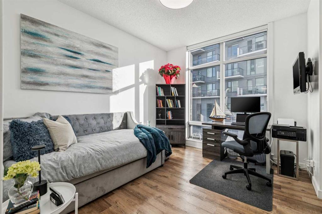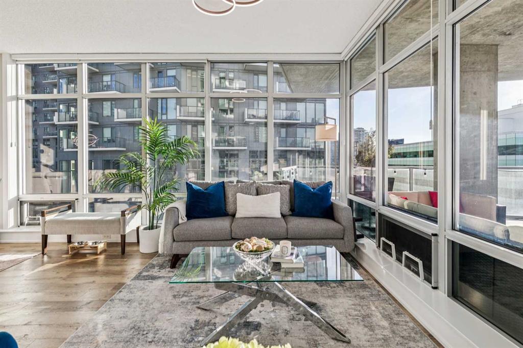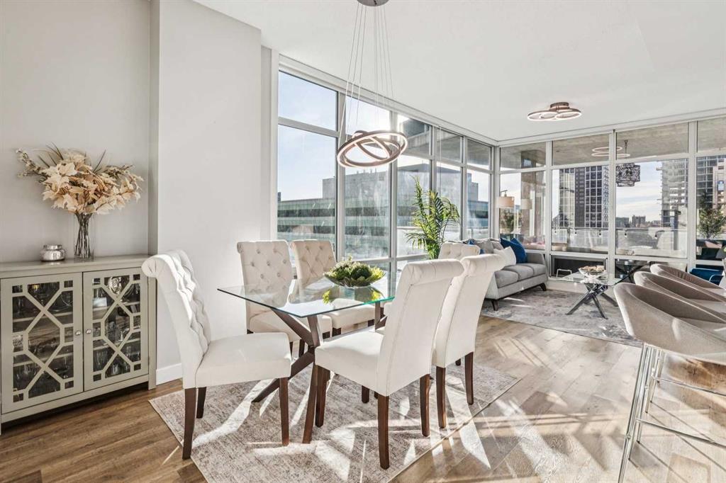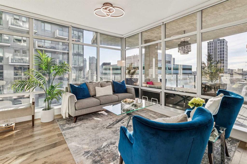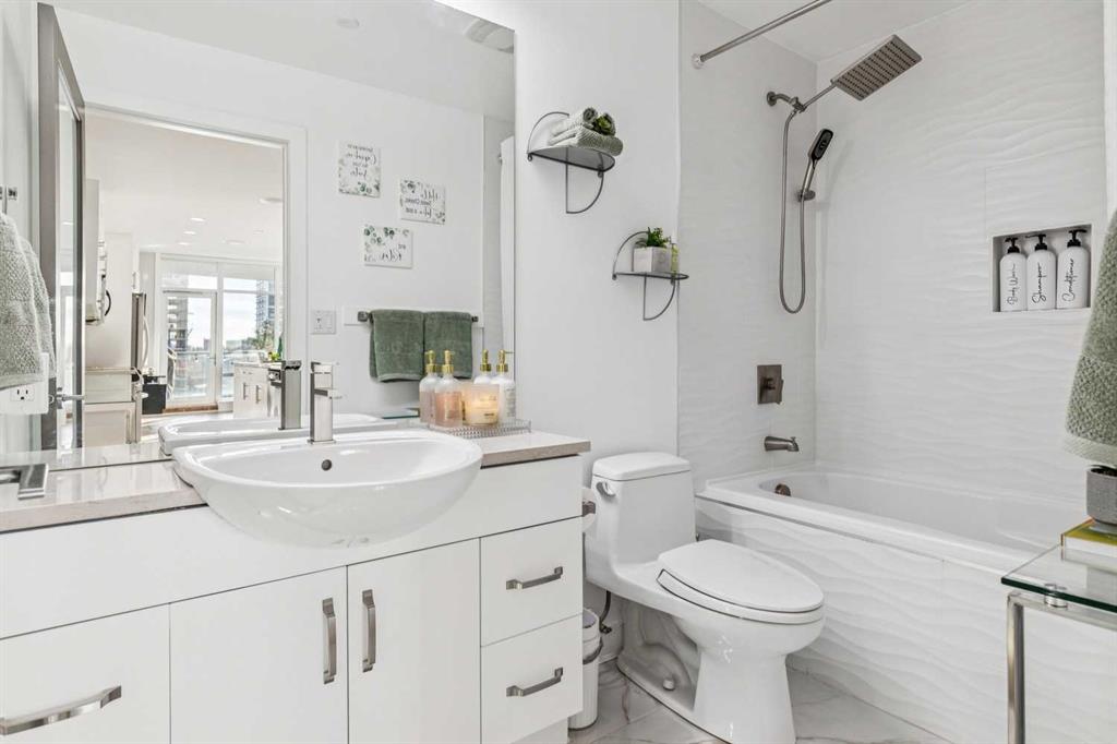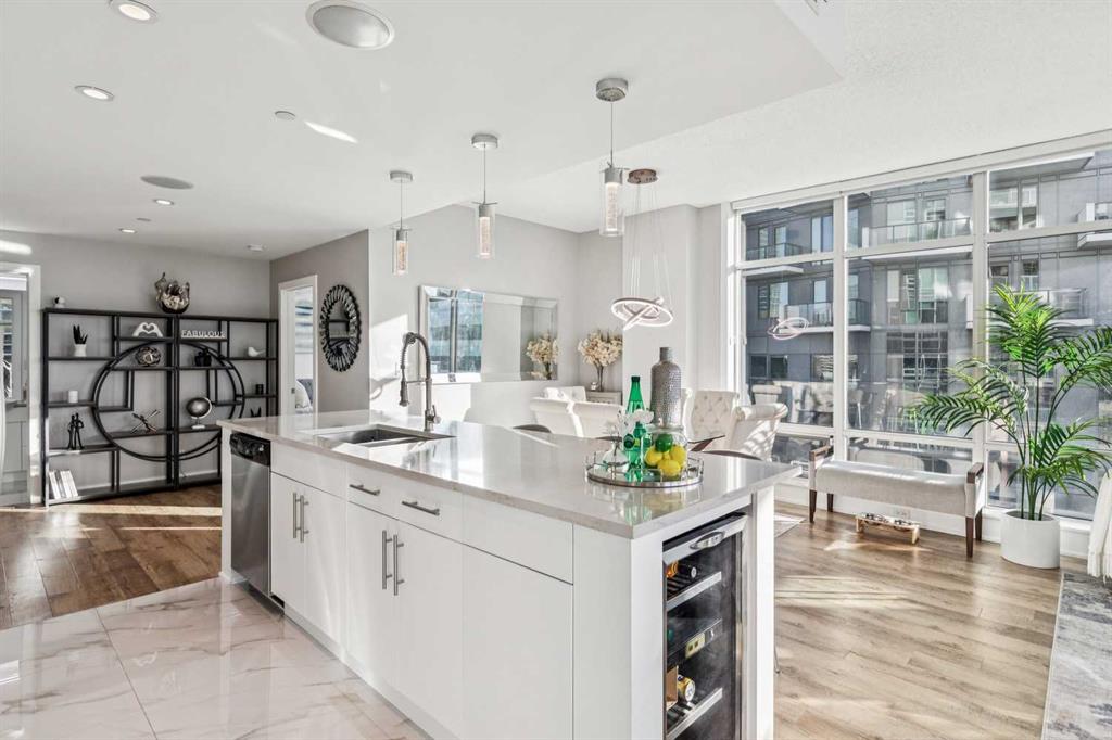 STUNNING RECENTLY RENOVATED EXECUTIVE CONDO IN CASTELLO WITH TWO TITLED PARKING STALLS & STORAGE! OPEN HOUSE: Sat. Feb 7th from 12-2pm AND Sun. Feb 8th from 11-1pm. Welcome to this beautifully upgraded unit in the prestigious, executive Castello complex, offering nearly 1,200 sq. ft. of thoughtfully laid out living space, two titled parking stalls, and titled storage. This quiet unit is filled with stunning natural light all day and boasts high end finishes throughout. Step into the main entrance featuring brand new tile flooring and modern lighting. The chef’s kitchen impresses with stainless steel appliances, quartz countertops, stylish new tile floors, updated light fixtures, and professionally painted cabinets enhanced with new hardware and additional cabinetry topped with a sleek glass surface. The spacious living room showcases floor-to-ceiling windows with brand new motorized zebra blinds, an elegant electric fireplace, and direct access to a massive covered wraparound patio (almost 300 square feet) perfectly extending your living space for entertaining or relaxing while enjoying stunning south facing Beltline views. The generously sized master bedroom offers a luxurious 4-piece ensuite with all-new lighting, mirror, tile floors and backsplash, painted cabinetry with fresh hardware, and a beautifully tiled shower with updated fixtures. A large walk-in closet features smart organization systems for added convenience. The second bedroom is equally spacious, complete with new lighting and zebra blinds. The main bathroom is mostly renovated, featuring new floor tile, lighting, shower tile and fixtures, sink fixtures, painted cabinetry, and new hardware, reflecting the same attention to detail found throughout this home. **Additional bonuses include:** recently repainted throughout, quiet concrete building construction, soft-close doors and drawers, Ecobee smart thermostat, central A/C, wine/beverage fridge, updated balcony lighting, laundry room storage cabinet, upgraded lighting throughout, and newer tile flooring in the laundry area. Castello’s exceptional amenities include concierge service, a fitness centre, guest suite ($75 per night), car wash bay, and secure, heated parking. This well managed building offers a true executive lifestyle. Located just steps from vibrant 17th Avenue shops, Stephen Avenue, fine dining, public transit, and more, this condo truly has it all.