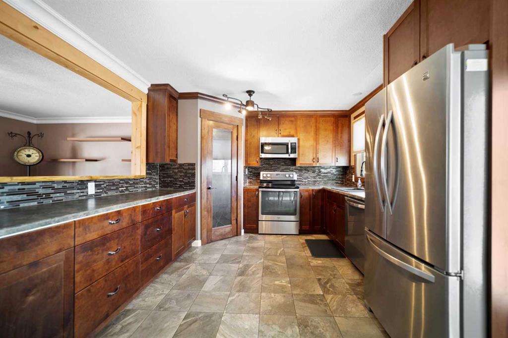 Welcome to the perfect blend of privacy, upgrades, and move-in ready comfort! This beautifully updated 1,000 sq. ft. bungalow sits on an oversized, landscaped lot with no backyard neighbours, offering the kind of peaceful setting and space that’s hard to find. Step inside to a bright and inviting main floor featuring two bedrooms and a stunning 5-piece bathroom. The large living room flows effortlessly into the heart of the home—an updated, gorgeous kitchen that has been partially opened for better connection and function. You’ll love the abundant cabinet and counter space, the large pantry, and the fresh, modern feel throughout. Recent improvements include updated kitchen, flooring, windows, and fresh paint inside and out, making this home truly turnkey. Downstairs, the fully finished basement adds impressive extra living space with two additional bedrooms, a 3-piece bathroom, a comfortable family/living room, and a dedicated laundry room with loads of storage—perfect for family life, guests, or a home office setup. Outside, enjoy the privacy and functionality of the detached insulated double garage, plus the benefit of a yard that’s already landscaped and ready to enjoy. Even the big-ticket items are taken care of with brand new shingles in 2025 and LeafGuard gutter protection installed for low-maintenance peace of mind. If you’ve been waiting for a home that offers space, privacy, and major updates already completed, this is the one