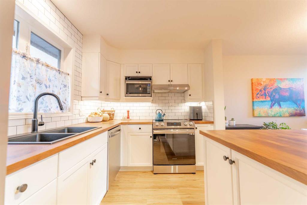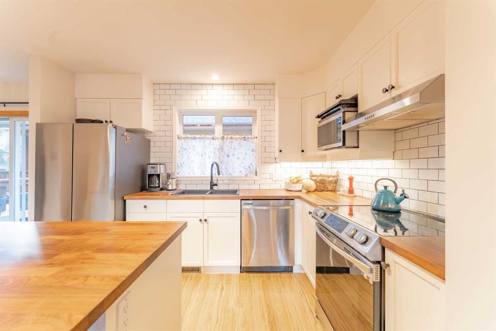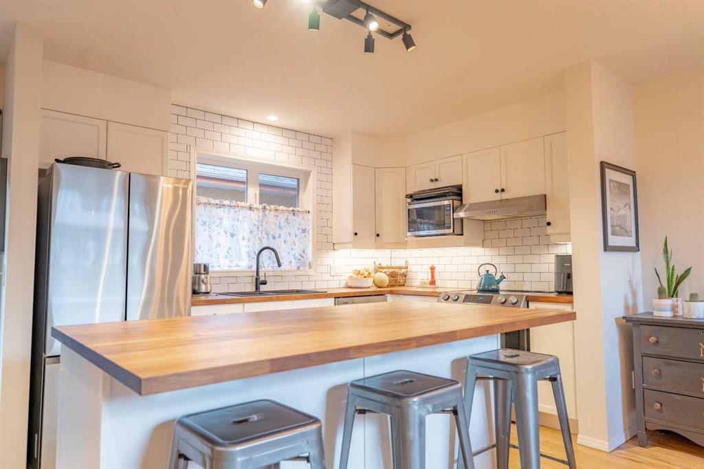 Welcome to 2, 601 4th Street, a beautifully updated townhome offering over 1,500 sq. ft. of bright, functional living space in the heart of South Canmore. Just blocks from Main Street, grocery stores, parks, Policeman’s Creek trails, and the Bow River, this highly walkable location lets you enjoy downtown living without the hassle of traffic or parking, while still providing quick access to Quarry Lake, the Nordic Centre, and highway routes. The thoughtful three-level layout is rarely found at this price point. The entry level features two full bedrooms, a full bathroom, laundry, and additional storage, ideal for families, guests, or rental use. The main living floor is filled with natural light from expansive windows and vaulted ceilings, showcasing mountain views and a cozy gas fireplace. The renovated kitchen offers stainless steel appliances, modern finishes, a large island, and space for a full dining area, along with a versatile nook perfect for a home office or seating area. The top floor is dedicated to a spacious loft-style primary suite with excellent closet space and a private ensuite, creating a true retreat separate from the additional bedrooms. Additional features include a detached storage unit, front lawn space, and a back patio ideal for outdoor relaxation. True three-bedroom townhomes in South Canmore under $1M are exceptionally rare. With its renovated interior, abundant natural light, smart layout, and unbeatable central location, this home is a standout opportunity for full-time living, weekend use, or a high-demand long-term rental.