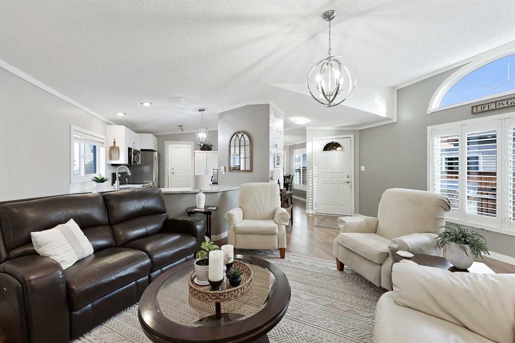 Enjoy easy living and outdoor beauty in this meticulously maintained bungalow — ideal for retirees or anyone who loves a beautiful garden and the comfort of single-level living. Set on a large, landscaped lot, this home offers lush gardens, fruit trees, berries, raised vegetable boxes, a firepit area, gazebo, and multiple outdoor living spaces including two decks and a charming pergola entrance. Inside, the open-concept layout features a gas fireplace with new mantle and feature wall (2024), an updated kitchen with new stainless steel appliances (2022), countertops, sink, faucet, cabinet hardware, two added pantries, and a coffee bar. The primary bedroom includes a full wall of closets and a renovated ensuite with soaker tub and separate shower (2023). Two additional bedrooms offer flexibility for guests or a den, plus another updated full bath. Additional upgrades include new flooring, trim, paint, lighting (interior & exterior), water heater (2023), shed with roof extension (2023), double gate to greenspace, and a hidden dog run. The heated double garage (23’2” x 21’2”) provides ample workspace and storage. A commercial-grade HVAC system ensures year-round comfort, and the firepit, and garden setup make this truly turnkey. Friendly neighbors and inviting outdoor spaces complete this welcoming, move-in ready home. Call your favourite Local Real Estate Agent for a private tour.