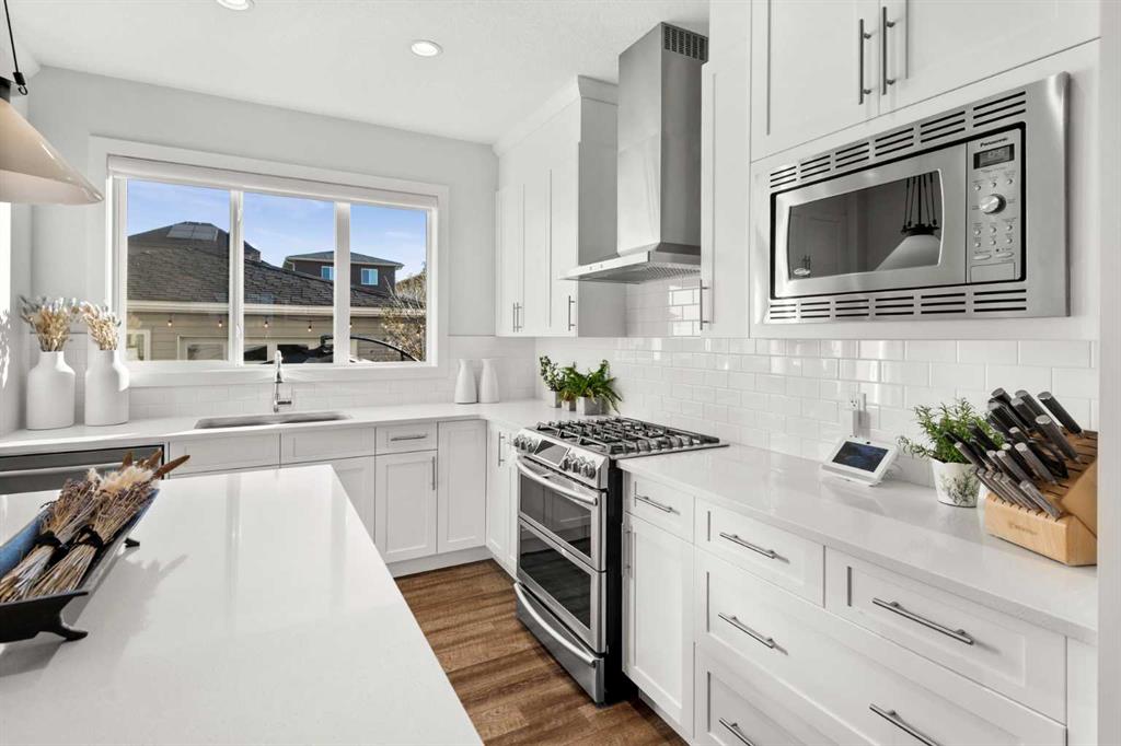 Welcome to this stunning 3 bedroom, 2.5 bathroom home in the desirable west Cochrane community of Heritage Hills. Combining modern comfort with timeless charm, this property offers the perfect balance of style, functionality, and location. From the inviting front porch to the thoughtfully designed interior, every detail has been carefully considered. The open concept main floor is filled with natural light, creating a warm and welcoming atmosphere. The spacious living room flows seamlessly into the dining area and modern kitchen complete with sleek stainless steel appliances including a gas range, ample cabinetry, and plenty of counter space — perfect for family meals or entertaining guests. Upstairs, you’ll find three generous bedrooms, including a primary suite featuring a walk-in closet and private ensuite bathroom. Two additional bedrooms, full laundry room and a full bath provide plenty of room for family or guests. The basement offers endless potential to customize the space to suit your needs — whether it’s a recreation room, home office, gym or additional living area. Outdoors, enjoy a low maintenance landscaped rear yard with a patio ideal for relaxing or hosting summer barbecues. The oversized detached double garage provides ample parking and storage space, and features a secondary overhead garage door offering convenient backyard access. Located just steps from a playground and minutes from amenities and scenic walking trails, with exceptional access to the majestic Rocky Mountains, this home perfectly blends convenience and community. Experience the best of Cochrane living in this exceptional Heritage Hills home.