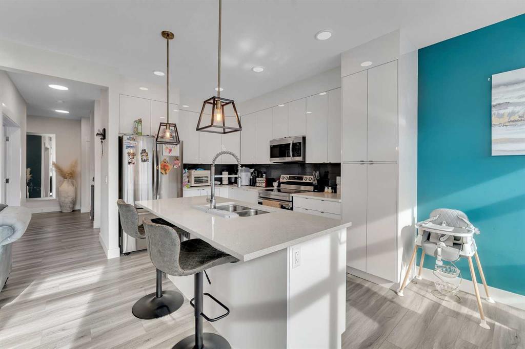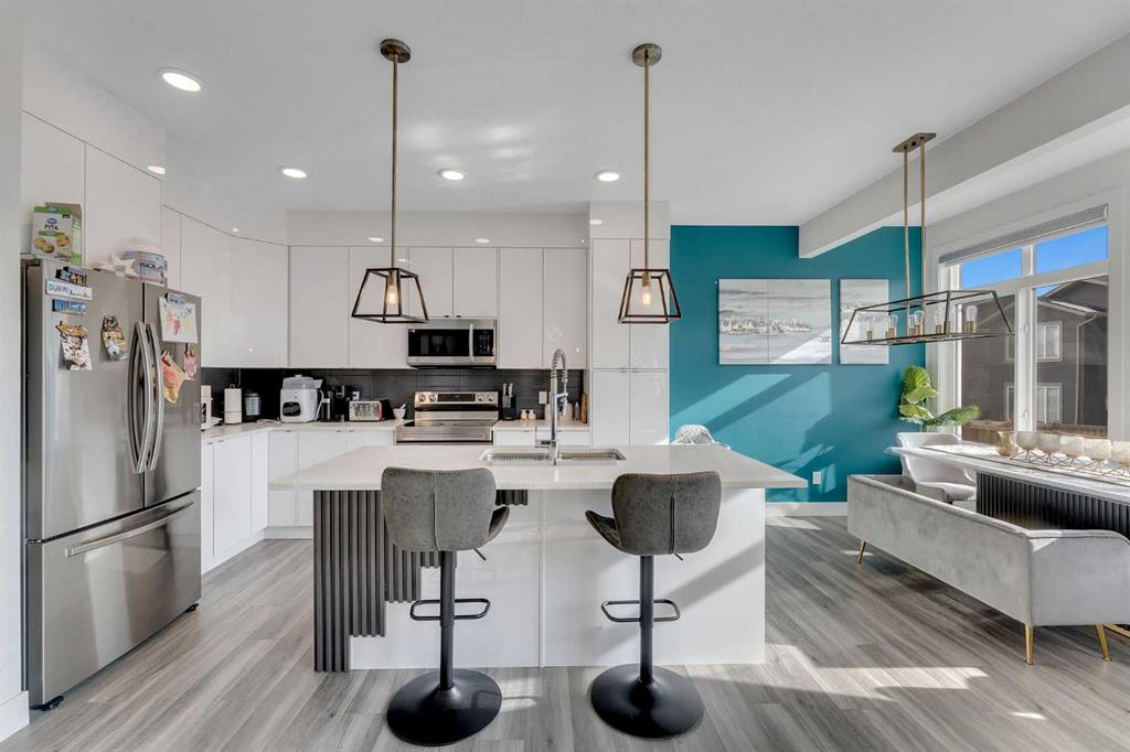 Introducing Your Beautiful Home in Heartland, Cochrane Welcome to this stunning family home in the heart of Heartland, located in the charming town of Cochrane. Offering approximately 2,000 sq. ft. of thoughtfully designed living space, this property perfectly blends comfort, style, and functionality. The main floor features a dedicated office, ideal for working from home or creating a quiet study area. The open-concept layout leads to a modern kitchen showcasing full ceiling-height cabinetry, stainless steel appliances, and a stylish feature wall. Upgraded lighting fixtures throughout the home add a contemporary and elegant touch. Upstairs you’ll find a spacious bonus room, perfect for family gatherings or entertainment. The primary bedroom features a luxurious 5-piece ensuite bathroom, creating a relaxing private retreat. The upper level also includes two additional well-sized bedrooms and a full 4-piece bathroom, along with a convenient upper-floor laundry room with built-in cabinetry. Additional Highlights: • Extended garage with extra space • Fully fenced backyard – perfect for kids and pets • Bright and functional open layout • Modern finishes throughout the home Prime Location: • Close to schools, parks, and playgrounds • Near Bow River pathways and playground areas • Minutes from commercial plaza and everyday amenities • Easy access to Alberta Highway 1A for convenient commuting A perfect home offering space, comfort, and a fantastic location in Heartland.