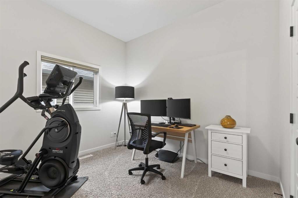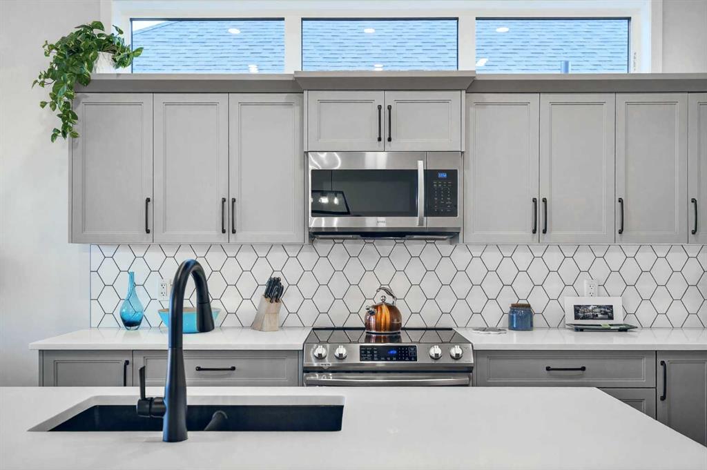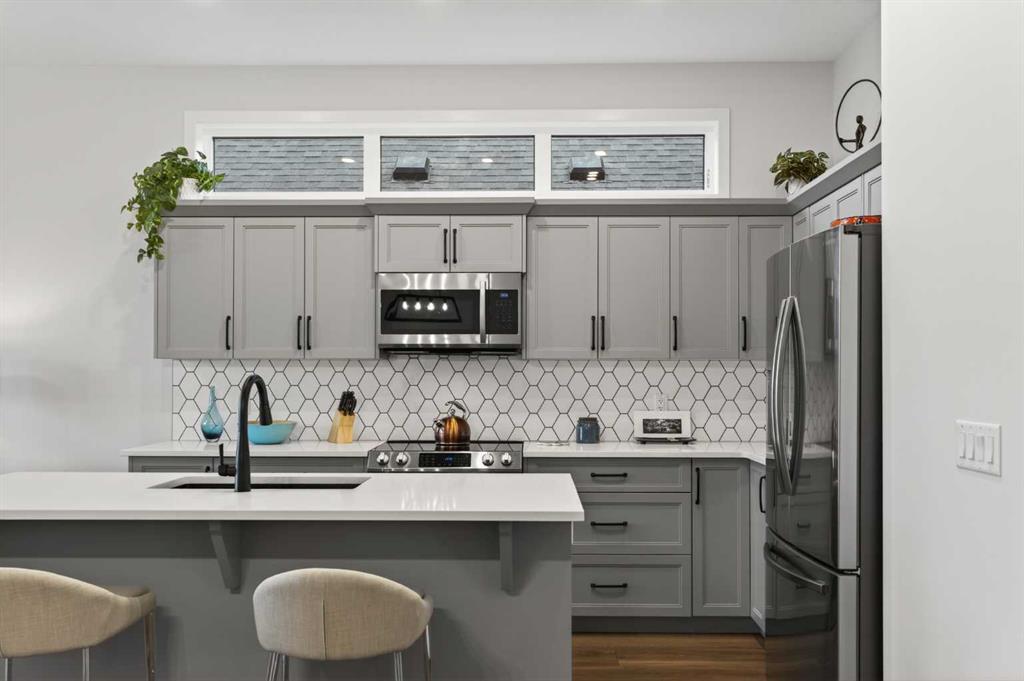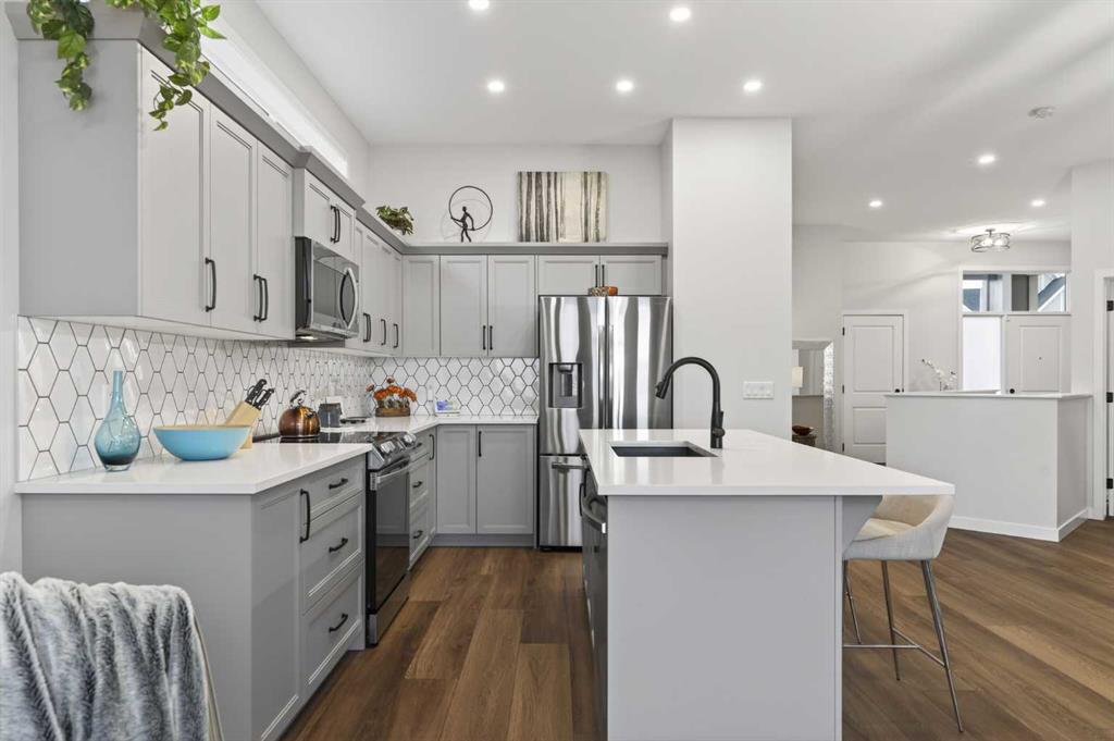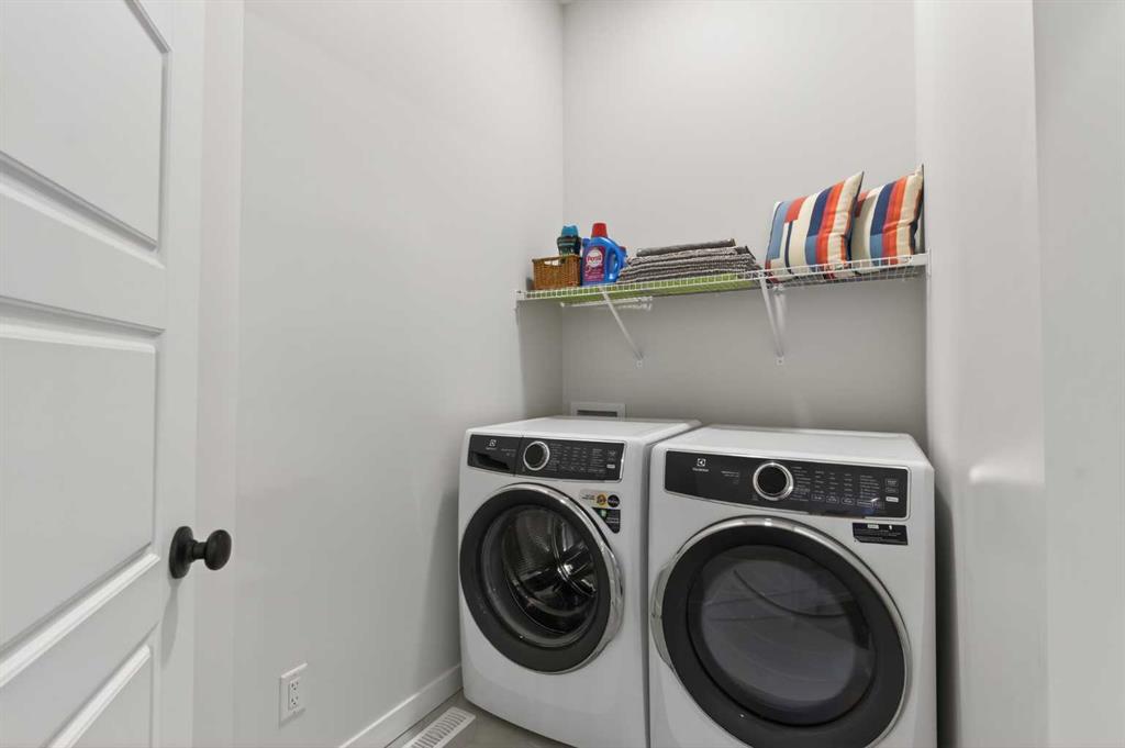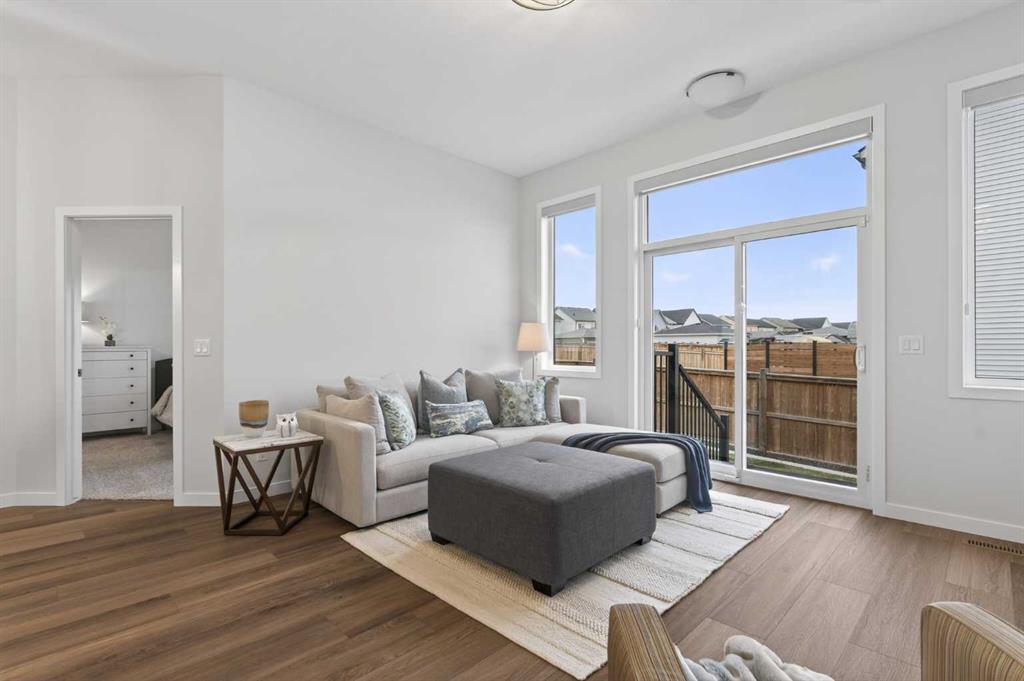 Welcome to 125 Amery Crescent - an immaculate modern bungalow in the sought-after Vista Crossing neighbourhood of Crossfield with quick access to Airdrie and Calgary. This beautifully designed home offers a comfortable and thoughtful design, perfect for both everyday living and entertaining. Showing like-new throughout, this stunning move-in ready home is beautiful both inside and out with professional landscaping completing the west-facing backyard. Stepping inside, you’ll be greeted by an open-concept layout that seamlessly connects the main living areas with soaring ceilings and a bright living space all year round. Large windows flood the space with natural light, highlighting the bright and airy feel throughout. The timeless kitchen is complete with grey shaker cabinetry and white quartz countertops with a large central island that provides additional seating space. The kitchen opens to the main living room and dining areas - creating the perfect space for everyday living and entertaining. A central fireplace with TV hook-ups anchors the main living area with a wall of windows and patio doors opening to the west-facing backyard. The spacious primary suite is a true retreat, complete with a luxurious four-piece ensuite including dual sinks with endless storage space and a walk-in shower with tile complete to the 10' ceilings. Completing the primary suite is a generous walk-in closet. A second well-sized bedroom spanning ~10'x12' and a full bathroom with soaker tub, as well as a laundry room complete the main level. Thoughtful details and warm neutral tones give the home a welcoming sense of elegance and provide the perfect single-level living space. The expansive basement is complete with bathroom rough-in and provides ample space for a future recreation room, bedroom, bathroom and storage area. Completing the home is a double attached garage that is fully drywalled with a finished floor - ensuring a clean and seamless living space throughout the entire home. Outdoors, enjoy a sunny west-facing yard perfect for summer barbecues or quiet evenings under the sky. The professionally landscaped exterior features a stone patio that spans the width of the property and overlooks the backyard with lighting features, 4-zone irrigation and a beautiful front entryway with flowering shrubs - offering a fully complete exterior. If the summer heat becomes too hot, the central A/C will keep you comfortable all summer long. This move-in ready home is immaculate both inside and out - presenting the perfect bungalow for those looking to downsize without compromise in quiet and charming Crossfield. *Virtual tour available upon request.