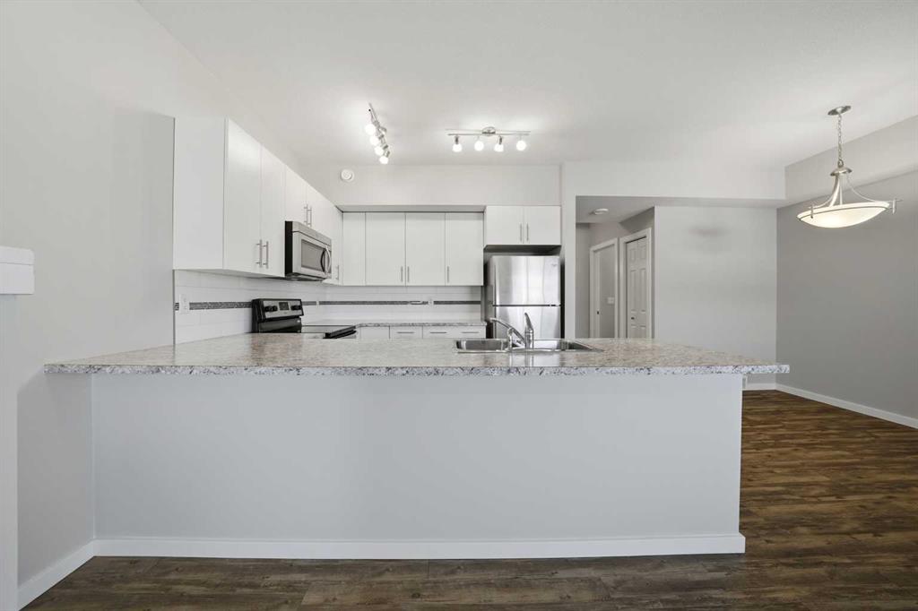 UPPER LEVEL CONDO AT VALLEY CROSSING - Beautifully maintained EAST FACING condo features an OPEN CONCEPT and is close to the skate and mountain bike parks. This development borders the popular Abbey Center, a park, walking trails and has convenient entry to Highway 2 and Highway 2A. Inside you'll find 2 BEDROOMS & 2 full BATHROOMS. There is also IN-SUITE LAUNDRY, LARGE COVERED DECK and 2 assigned POWERED PARKING STALLS right outside your door plus lots of visitor stalls. The kitchen has ample counter space with LARGE PENINSULA and cabinets that have been upgraded to soft-closures and has stainless steel appliances. This condo is very well ran and CONDO FEES are LOW.