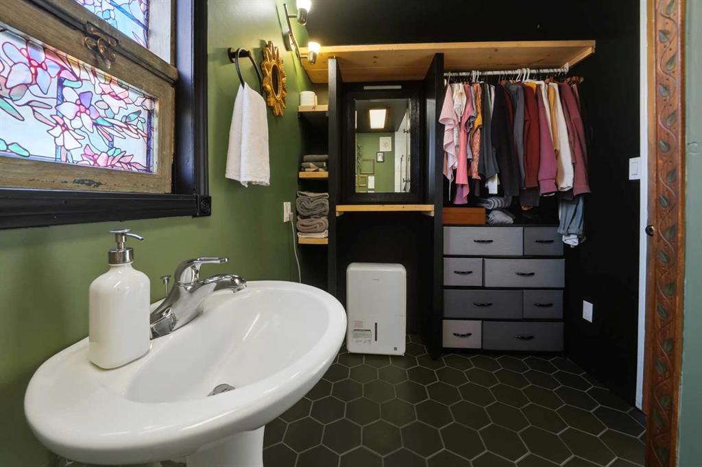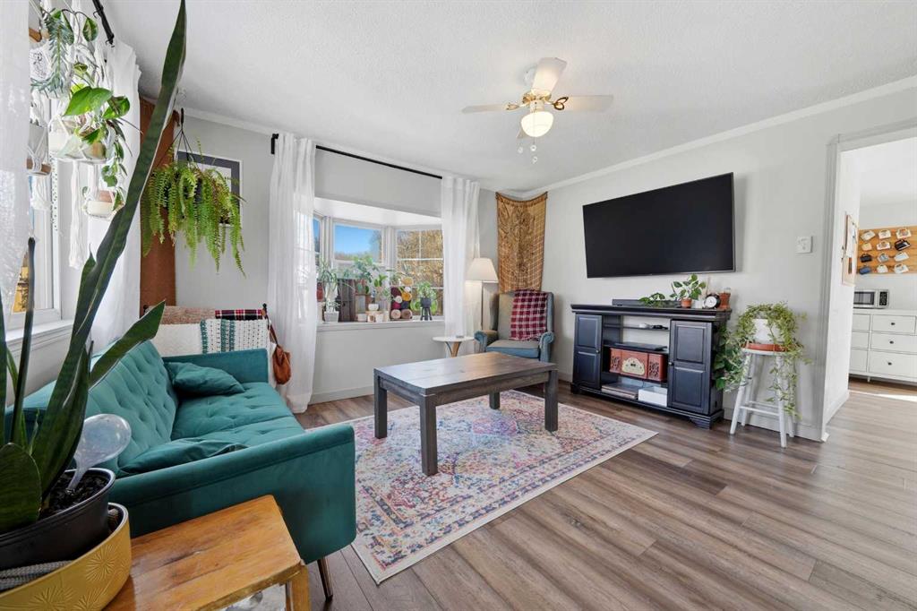 Unique opportunity in central Lacombe. This 1.5 storey home sits on two lots and offers a private, fully fenced yard with mature lilacs. The home includes 1 bedroom and 1 full bathroom, along with an upper loft that provides additional flexible space for a home office, guest area, or hobby room. Flooring and bathroom updates have been completed over the years, along with regular maintenance including plumbing, electrical, and duct cleaning. Outside, enjoy a stamped concrete patio, rear access with extra parking, and space for RV storage. A detached single garage adds practical storage. Zoned R2, the property offers potential for future development or income opportunities. An excellent choice for buyers looking for space, privacy, and long-term value.