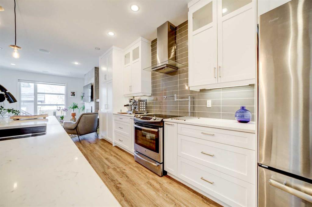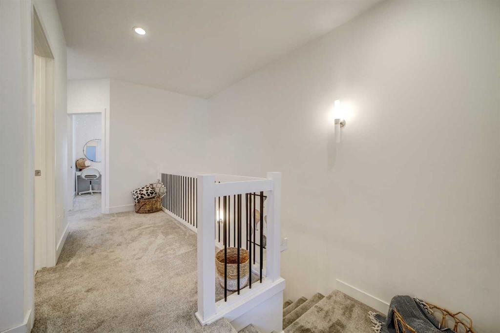 Experience the scale and privacy of a detached home in this stunning 2017-built half-duplex. Beautifully high ceilings and floods of natural light and, the expansive open-concept main floor gives a remarkably wide and airy space. The heart of the home is a gourmet kitchen featuring quartz countertops and a eat up/breakfast bar, island that also acts as an abundant prep space. All wired with a built-in speaker system to set the perfect mood. Upstairs, the intelligent layout places the fully finished laundry room on the same level as the bedrooms for ultimate convenience. The primary retreat is a true standout, offering a spa-like ensuite with dual sinks, a private water closet, and a walk-in shower with three heads, including a rain shower. Located in a prime spot just down the street from the hospital, this property is finished with an undeveloped basement awaiting your custom vision. With its rare combination of a home that is truly loved, and an unbeatable location, this home is a must-see that stands in a class of its own.