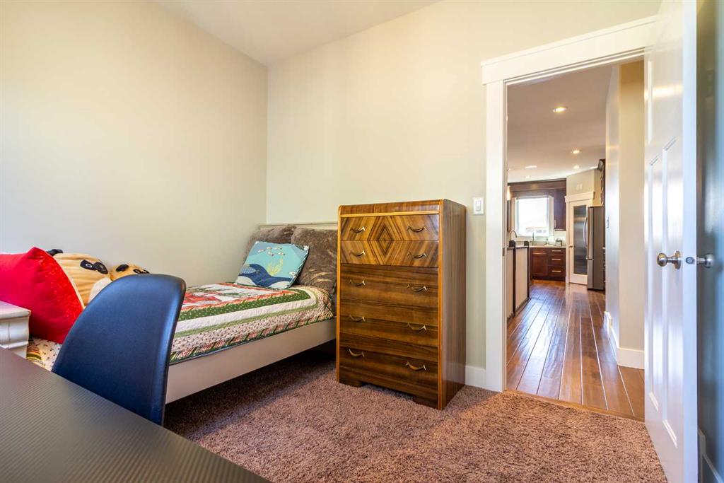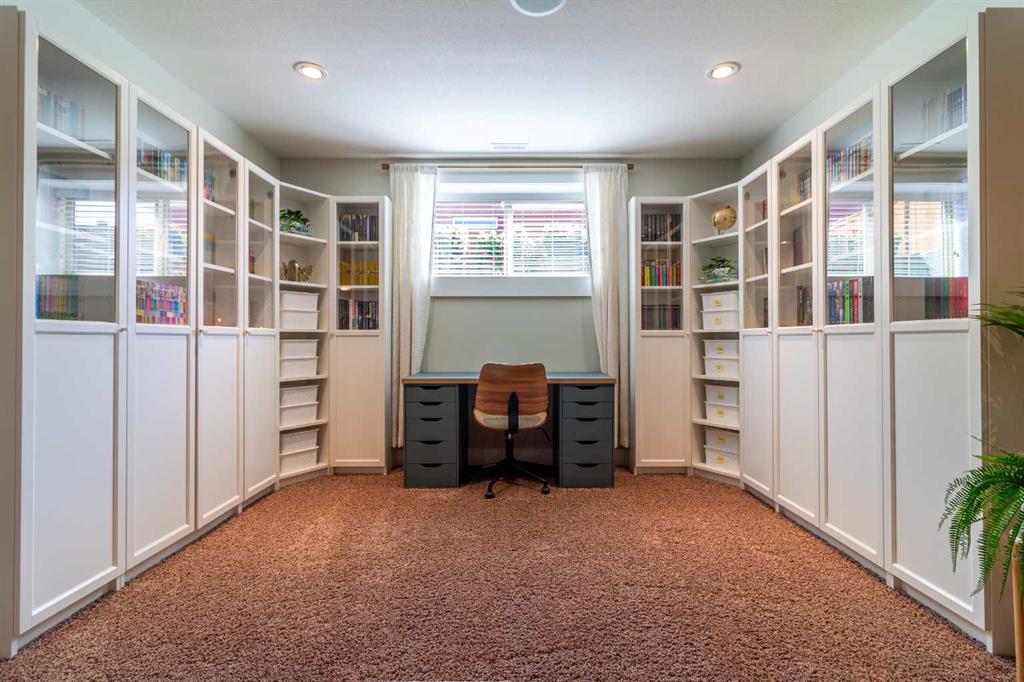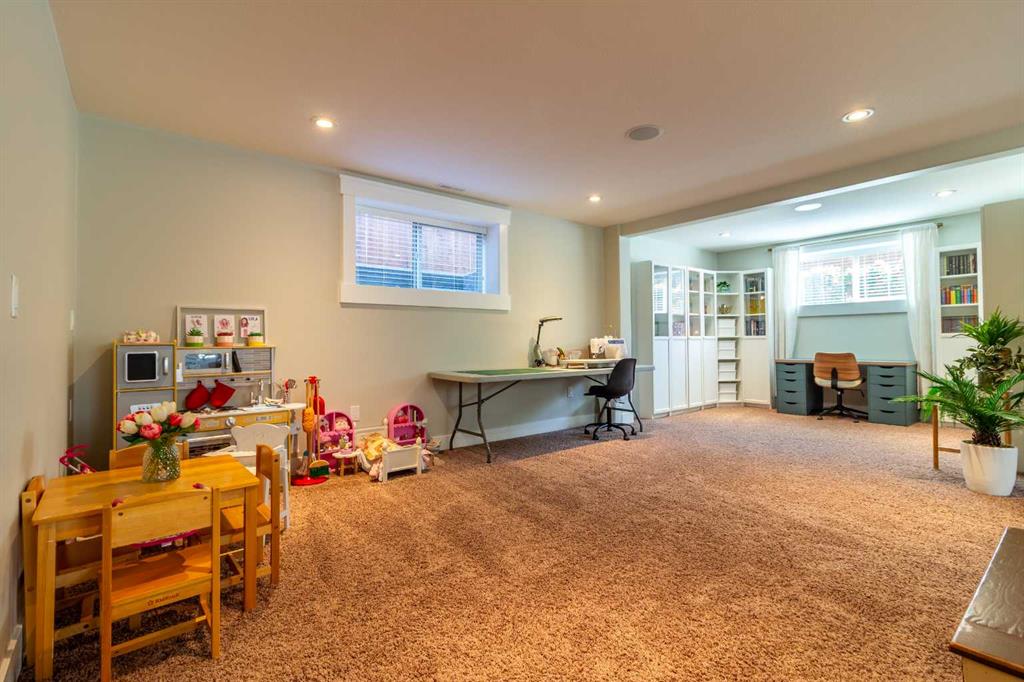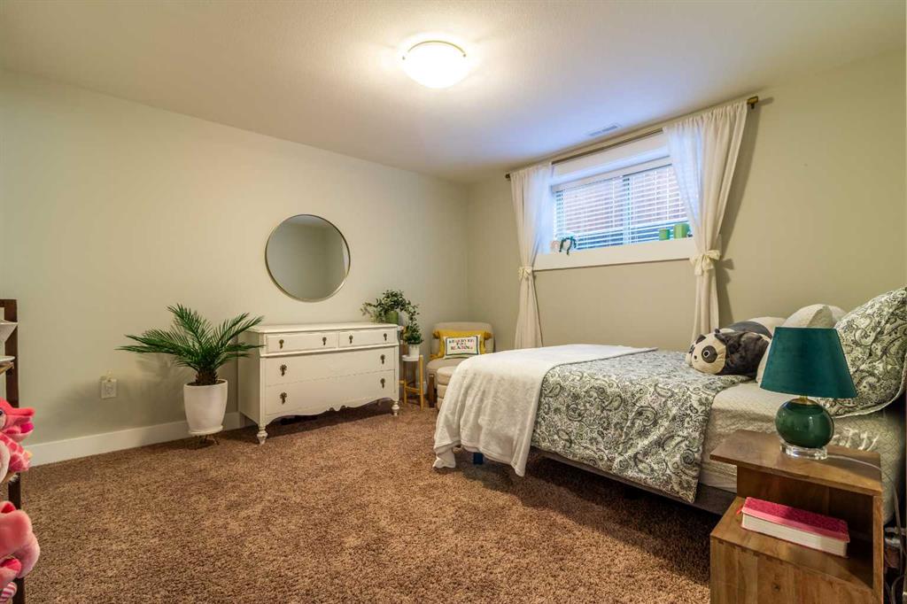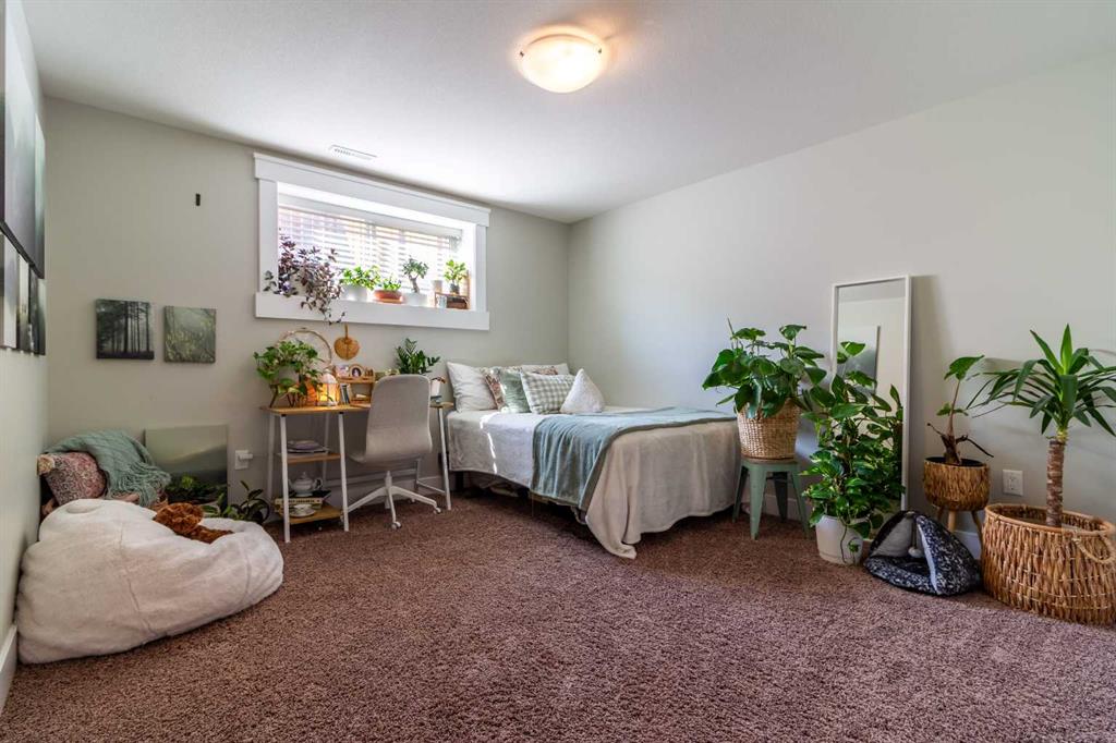 A rare gem! This 1,600 sq. ft. five-bedroom “Craftsman-inspired” bungalow was originally built as the builder’s own home—so you can expect thoughtful design, quality craftsmanship, and exceptional extras throughout. Curb appeal is immediately evident, highlighted by the expansive corner lot with mature trees and lush landscaping. The custom stamped concrete driveway leads to an impressive combined exposed & stamped concrete front entry, while the stone-accented front porch offers the perfect setting for a relaxing swing. Step inside and you’ll be struck by the rich wood flooring, beautifully complemented by wide baseboards that enhance the home’s character. Just off the entry is a private main floor office, enclosed by elegant French doors—ideal for working from home or creating a quiet retreat. Moving further in, the attention to detail continues with a stunning coffered ceiling and striking stone fireplace, designed to serve as true focal points for both everyday living and entertaining. The open-concept living space flows seamlessly into a chef-inspired kitchen, complete with a functional prep island with sink, quartz countertops, soft-close cabinetry, and an abundance of storage. Adjacent to the kitchen is a bright and inviting dining area featuring double doors that open onto a covered composite deck, complete with a BBQ gas line—perfect for indoor-outdoor entertaining. The primary suite is a true retreat, thoughtfully designed with comfort and style in mind. Enjoy a relaxing corner soaker tub, a separate glass shower, and, of course, a spacious walk-in closet. The main floor also features two additional generously sized bedrooms, offering flexibility for family living, along with the rare bonus of a dedicated office space—all on one level. A standout feature of this home is how seamlessly the main level transitions to the fully developed lower level, creating a connected and open feel throughout. Downstairs, you’ll immediately appreciate the plush carpeting underfoot, along with a third full bathroom and two exceptionally large bedrooms. The lower level also offers multiple functional spaces, including a comfortable family TV area, a cushioned fitness or play zone, and additional flexible space to suit your needs. Storage is plentiful, with a dedicated storage room as well as additional space under the stairs. The list of extras continues with permanent soffit holiday lighting, air conditioning, hot water on demand, stylish exterior soffit lighting, exposed concrete window wells, a fully fenced yard, and added heated garage storage. This is a truly unique home that combines quality, space, and standout features in every corner. Be sure to add it to your list—this is one you won’t want to miss.