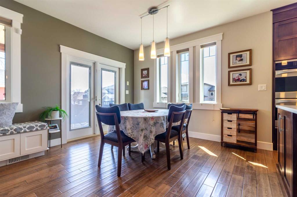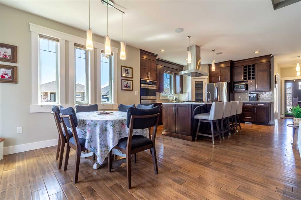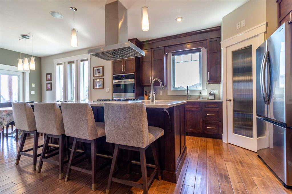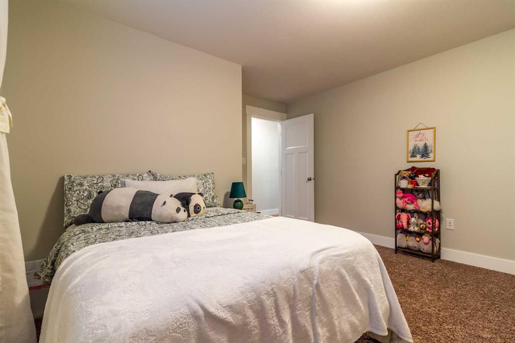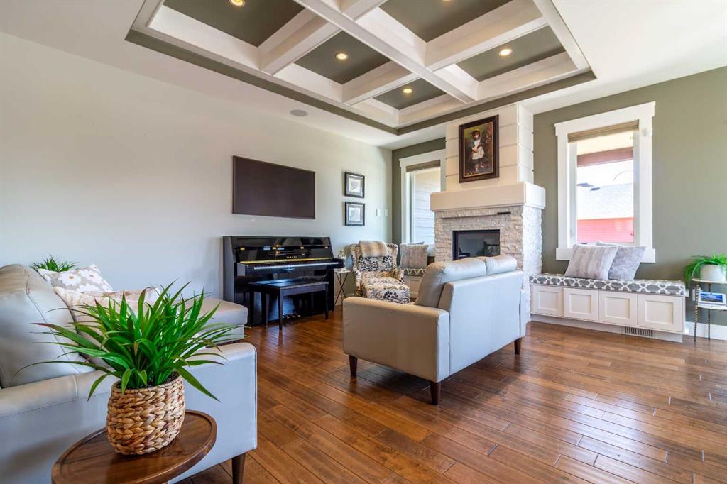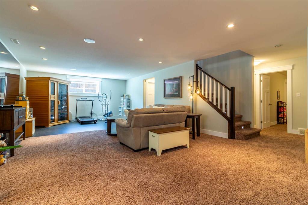 A rare gem! This 1,600 sq. ft. five-bedroom “Craftsman-inspired” bungalow was originally built as the builder’s own home—so you can expect thoughtful design, quality craftsmanship, and exceptional extras throughout. Curb appeal is immediately evident, highlighted by the expansive corner lot with mature trees and lush landscaping. The custom stamped concrete driveway leads to an impressive combined exposed & stamped concrete front entry, while the stone-accented front porch offers the perfect setting for a relaxing swing. Step inside and you’ll be struck by the rich wood flooring, beautifully complemented by wide baseboards that enhance the home’s character. Just off the entry is a private main floor office, enclosed by elegant French doors—ideal for working from home or creating a quiet retreat. Moving further in, the attention to detail continues with a stunning coffered ceiling and striking stone fireplace, designed to serve as true focal points for both everyday living and entertaining. The open-concept living space flows seamlessly into a chef-inspired kitchen, complete with a functional prep island with sink, quartz countertops, soft-close cabinetry, and an abundance of storage. Adjacent to the kitchen is a bright and inviting dining area featuring double doors that open onto a covered composite deck, complete with a BBQ gas line—perfect for indoor-outdoor entertaining. The primary suite is a true retreat, thoughtfully designed with comfort and style in mind. Enjoy a relaxing corner soaker tub, a separate glass shower, and, of course, a spacious walk-in closet. The main floor also features two additional generously sized bedrooms, offering flexibility for family living, along with the rare bonus of a dedicated office space—all on one level. A standout feature of this home is how seamlessly the main level transitions to the fully developed lower level, creating a connected and open feel throughout. Downstairs, you’ll immediately appreciate the plush carpeting underfoot, along with a third full bathroom and two exceptionally large bedrooms. The lower level also offers multiple functional spaces, including a comfortable family TV area, a cushioned fitness or play zone, and additional flexible space to suit your needs. Storage is plentiful, with a dedicated storage room as well as additional space under the stairs. The list of extras continues with permanent soffit holiday lighting, air conditioning, hot water on demand, stylish exterior soffit lighting, exposed concrete window wells, a fully fenced yard, and added heated garage storage. This is a truly unique home that combines quality, space, and standout features in every corner. Be sure to add it to your list—this is one you won’t want to miss.