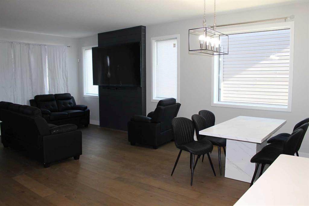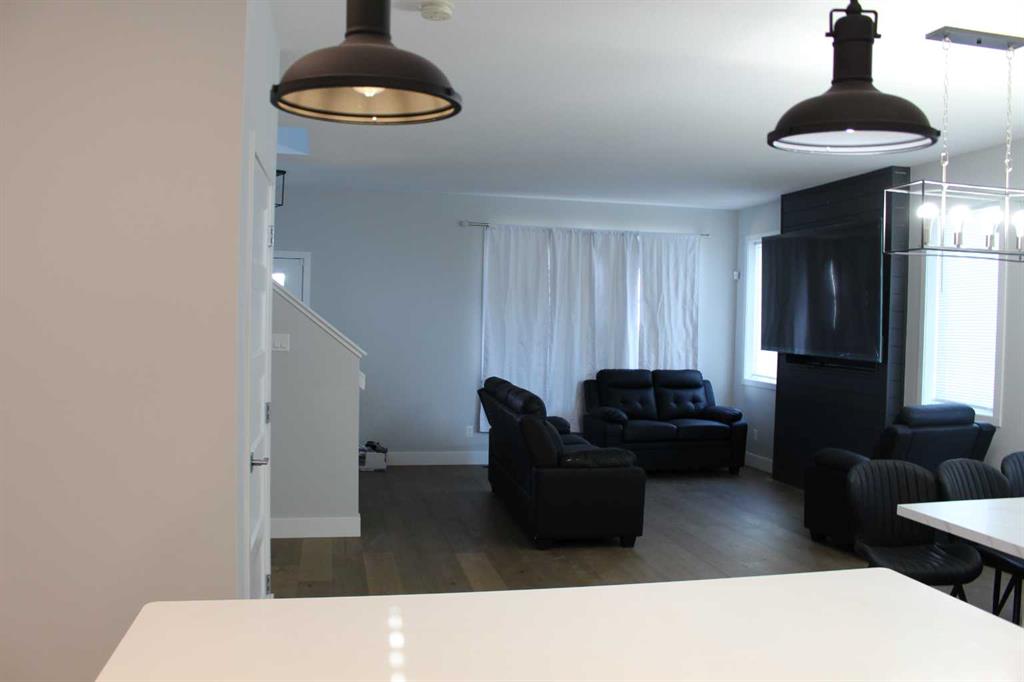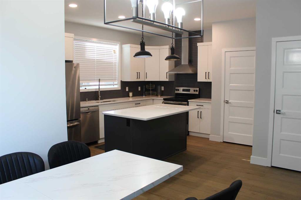 Stunning, one-of-a-kind new build thoughtfully designed for modern living! This beautifully crafted home showcases an attractive front elevation with a rear attached garage and sits on a generous corner lot. Inside, you’ll find a bright open-concept layout filled with natural light from oversized windows. The contemporary kitchen features quartz countertops and a large island—perfect for casual mornings or entertaining guests. Step out from the kitchen onto a private deck tucked between the garage and main floor, offering a cozy outdoor space—ideal for relaxing or hosting family and friends. Upstairs offers three spacious bedrooms, including a primary retreat complete with a walk-in closet and stylish ensuite. A versatile bonus room provides the perfect space for a kids’ play area, home office, or evening lounge. Convenient upper-floor laundry adds everyday ease. The expansive corner lot provides plenty of outdoor room for play and entertaining. This exceptional home blends comfort, style, and functionality—truly a must-see!