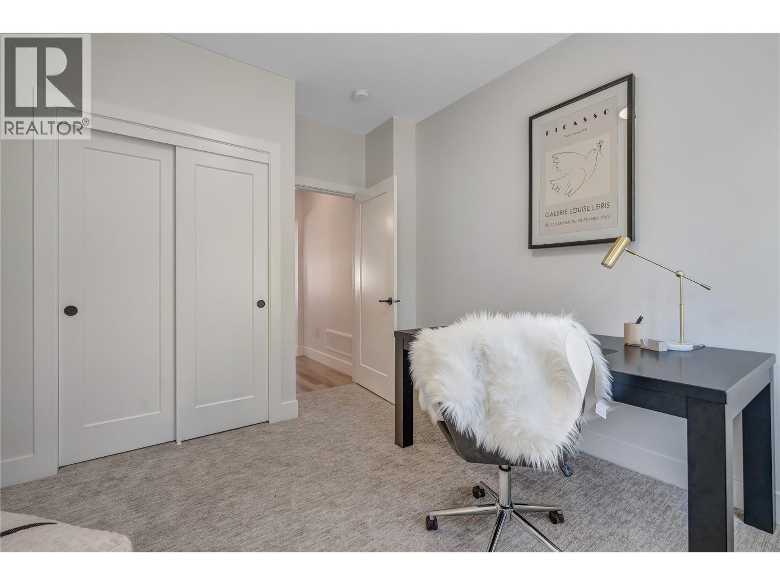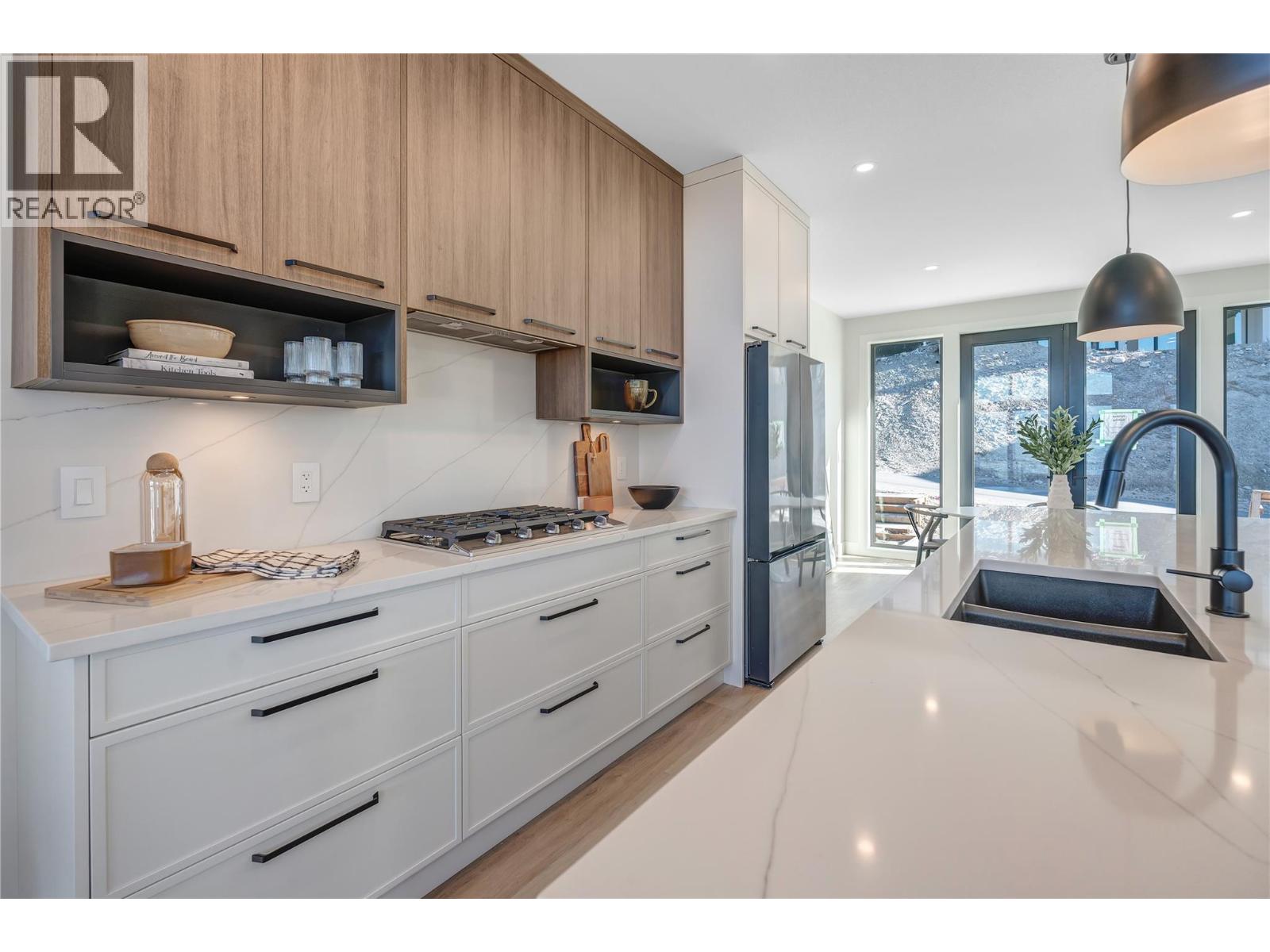 Thoughtfully designed modern duplex with breathtaking views of Skaha Lake and the Okanagan Valley located in The Ridge Penticton. This home boasts 3 storey's of luxurious living space spanning over 2100 square feet and has been designed with convenience in mind, featuring an elevator to take you to each level with ease. Enjoy the amazing views from the top floor while having your morning coffee or entertaining guests for dinner. This floor also has a conveniently located bedroom/den or office space. Bring in groceries with ease from the level laneway access. On the second floor you'll find a spacious laundry room, primary bedroom with 5 piece ensuite with in floor heating and walk in closet. Another spacious bedroom with it's own 4 piece ensuite is also located on this floor. The theatre room on the lower level is perfect for watching sporting events or family movie nights. Featuring quartz countertops, luxury vinyl plank floors, stainless steel appliances, modern lighting packages and 2 car tandem parking in the garage. Enjoy the Okanagan lifestyle with this easy, turnkey living home.