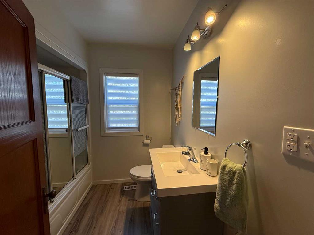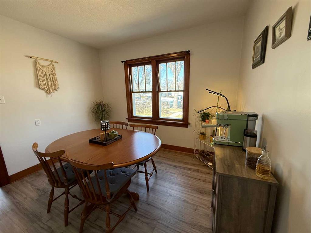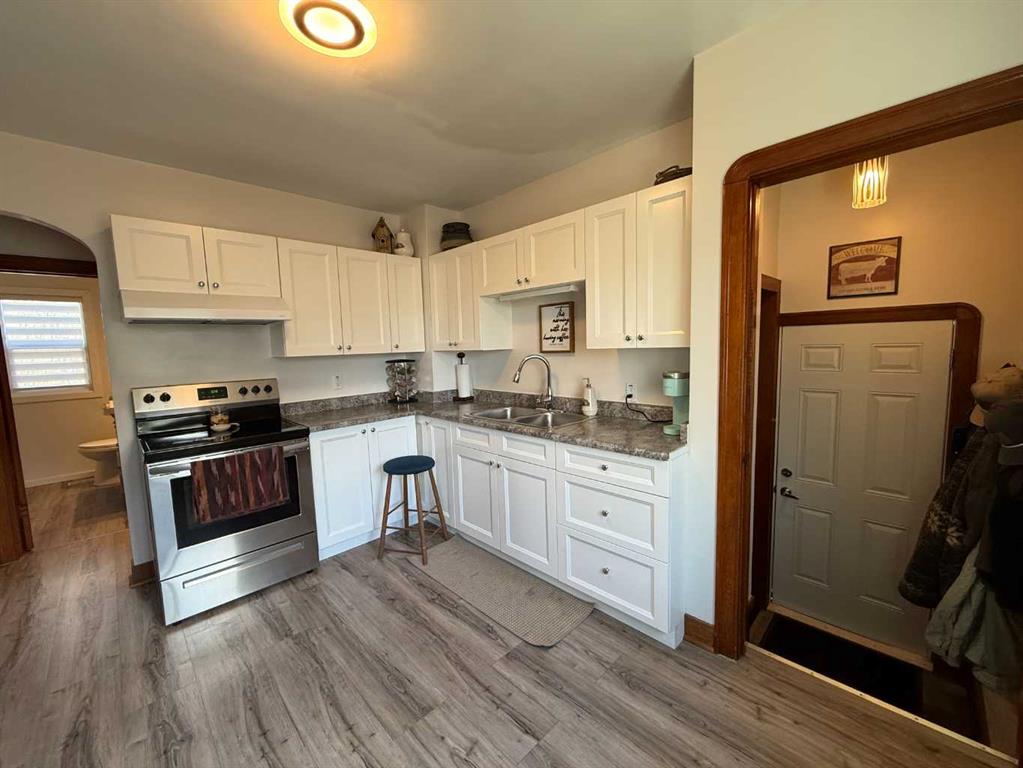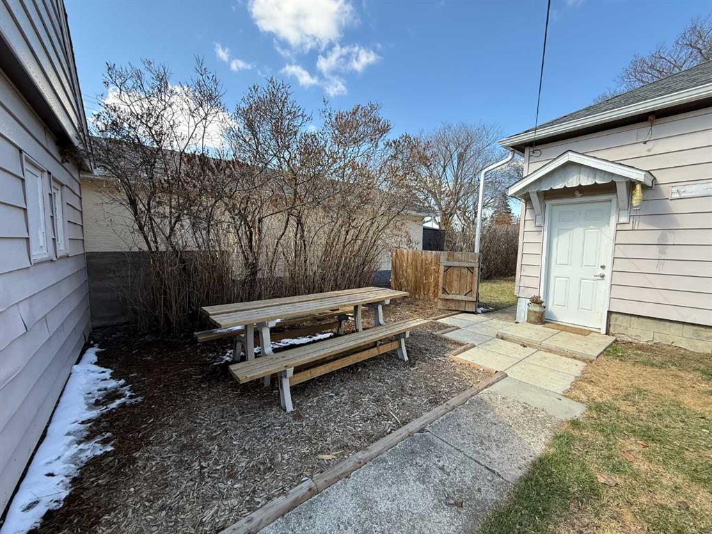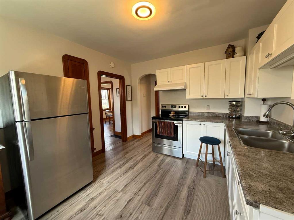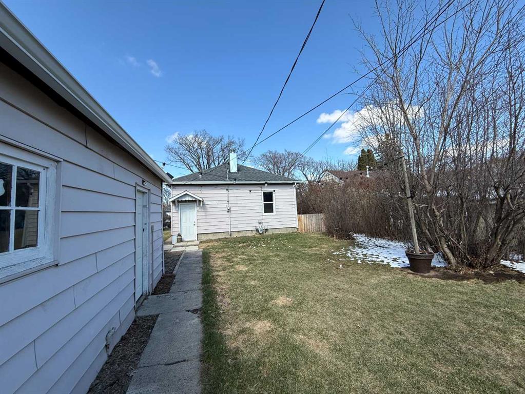 This charming, and completely upgraded Bungalow is perfectly suited for first-time buyers, downsizers, or those looking for a solid investment opportunity. From the moment you step inside, you are greeted by a warm and inviting living room filled with natural light, original wood trim and baseboards that have been restored, creating a bright and comfortable space to relax or entertain. There is a versatile bedroom that is currently utilized as a dining room and could also make a nice office space, ideal for working from home. The new kitchen sits at the heart of the home, offering ample counter space and plenty of cabinetry. Tucked just off the kitchen is the primary bedroom, complete with a walk in closet featuring built-in shelving. A full bathroom conveniently completes the main floor. Toward the back of the home, a practical rear entry provides a great space for coats, shoes, and everyday storage. The basement offers a designated laundry area along with abundant storage space. It presents excellent potential for future development to suit your lifestyle needs. Outside, the beautifully landscaped backyard adds to the overall charm of the property, with a fully fenced yard featuring a newer fence for added privacy and peace of mind. A detached garage provides secure parking and additional storage. Recent improvements include new front and back steps completed between 2024–2026. In the past 5 years extensive renovations were completed including majority of windows replaced on main floor, new shingles, new flooring throughout main floor, new bathroom fixtures, electrical and plumbing upgrades. Ideally located within walking distance to schools, parks, and all downtown amenities, this delightful property offers both comfort and convenience in a great location.