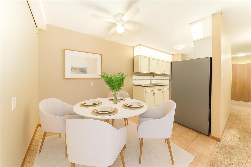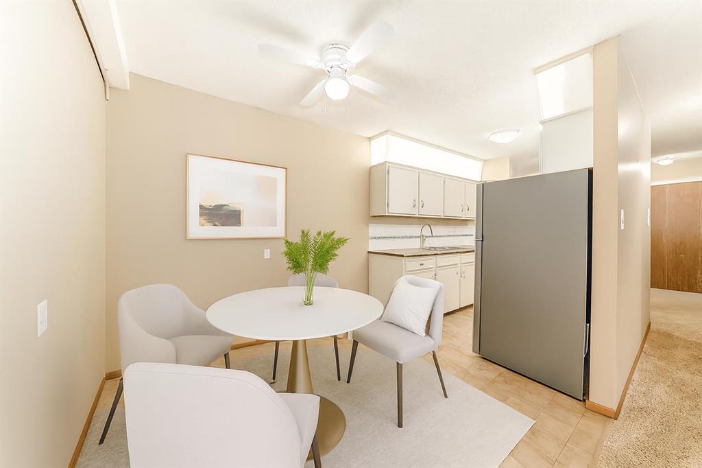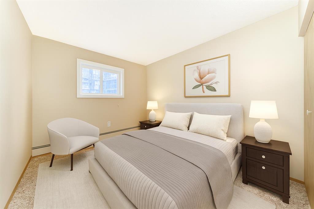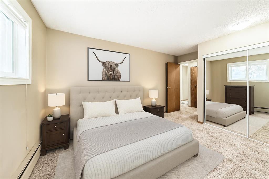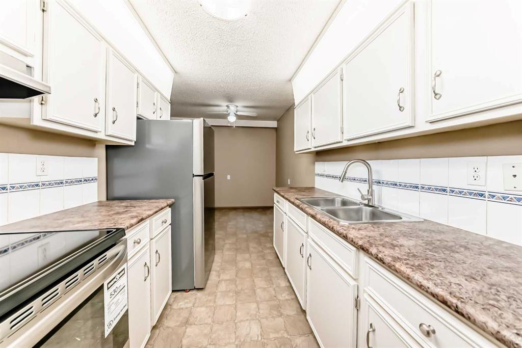 Great shape 2 bedroom unit. Numerous improvements over the years and shows very well. 2 bedrooms with double mirrored closet door in spacious primary bedroom ,upgraded dome light fixtures with LED bulbs, freshly steam cleaned carpet in Living room and bedrooms, lino in KI/DI, ceramic tiles in Entrance area with mirrored closet doors. The full 4 Pce Bathroom has ceramic floor tiles, Bath tub has ceramic tiles and shower doors, ceramic sink, large mirror and built in medicine cabinet. Kitchen has lots of cabinetry, re painted, double sink, ceramic backsplash, retro California sunshine ceiling. New stainless steel FRIDGE ,STOVE , HOOD FAN in this efficient galley kitchen opens to dining area. All good size vinyl windows and good window coverings. Coin laundry in the building. Paved assigned parking stall with power and room for more vehicles on the street. Condo fees cover for insurance, heating, water, sewer, garbage, all exterior repairs as well as snow removal, and lawn care. Tenant pays for power. Building has had extensive exterior and interior improvements and it shows. New Intercom system plus Security camera's in building. Common Laundry room on same level. Now that makes for a winning opportunity on this property. Seller will include 2 months of prepaid condo fees. See some ideas of furnishing of your new home.