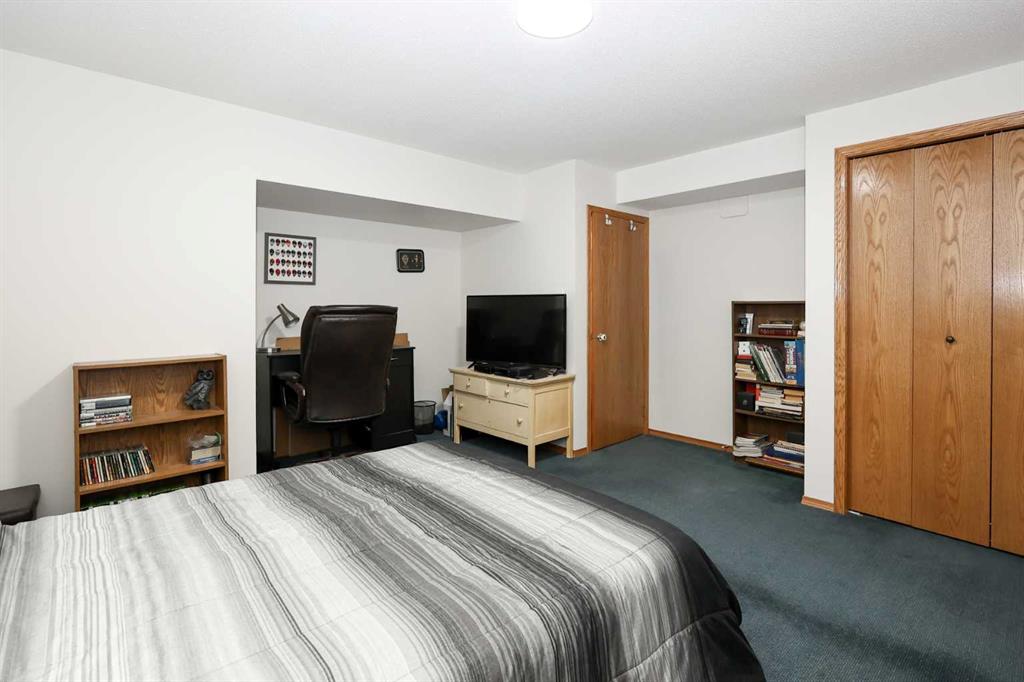 FULLY DEVELOPED 5 BEDROOM, 3 BATHROOM BUNGALOW WITH 1530 SQ. FT. ABOVE GRADE ~ LOCATED IN DESIRABLE ANDERS PARK EAST ~ DOUBLE ATTACHED GARAGE ~ Landscaped front yard with aggregate driveway and walkways offer eye catching curb appeal to this well cared for home ~ A bright and spacious foyer with tile floors welcomes you and opens to the living room with vaulted ceilings and a large bay windows that overlook the front yard and allow for plenty of natural light ~ Vaulted ceilings continue into the generous size kitchen offering an abundance of cabinets with crown moulding, under cabinet lighting, and a built in desk; ample counter space; full tile backsplash; window above the sink, two pantries; and an eat in dining space where you can easily host large gatherings ~ Just off the kitchen is a family room featuring a brick faced fireplace with a raised hearth and mantle ~ Rear entrance has a coat closet and leads to the south east facing deck with duradek finish, aluminum railings, and privacy panels ~ The primary bedroom can easily accommodate a king size bed plus multiple pieces of large furniture, and has ample closet space ~ 3 piece ensuite features a walk in shower with a grab bar, and an oversized vanity ~ 2 additional main floor bedrooms are also a generous size with good closet space ~ 4 piece main bathroom has an oversized vanity, and a jetted soaker tub with a tile surround and grab bar ~ The fully finished basement offers tons of living space including a huge family room with LED lighting and a gas fireplace with a brick surround, raised hearth and mantle ~ 3 piece bathroom has a walk in shower and a linen closet ~ 2 additional bedrooms (for a total of 5) ~ Laundry is located in it's own room, has built in cabinets and a sink ~ Large storage room with an abundance of built in cabinetry provides endless storage ~ The sunny south east facing backyard is fully fenced with back alley access, extensively landscaped with trees(fruit), perennials, and shrubs, still leaving tons of yard space and includes a shed with power ~ Other great features include; central vacuum, triple pane windows, Phantom screens ~ The 22' x 22' double attached garage is insulated, finished with painted drywall, has over 11' ceilings, and a man door to the side yard and gate to the backyard ~ Located in a quiet cul-de-sac steps to multiple parks and walking trails, with easy access to schools, Collicut Rec Centre, multiple shopping plazas, and all other amenities.