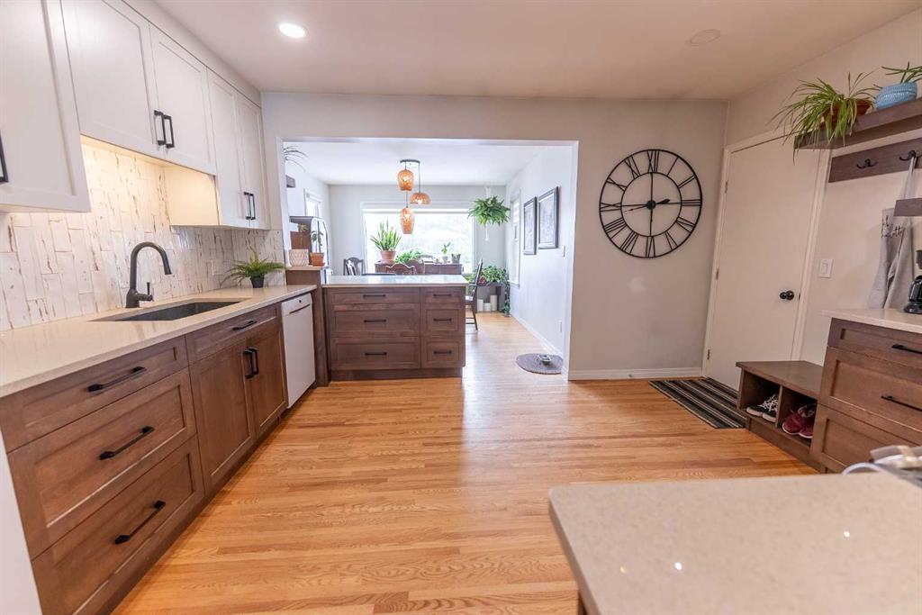 **Suite Sensation Meets Modern Luxury** Welcome to a home where high-end design meets functional living. This property has undergone over $100,000 in gorgeous custom renovations, blending "suite sophistication" with thoughtful, modern upgrades. From the moment you step onto the matching red oak hardwood floors that flow throughout the main level, you will feel the quality and care poured into every square inch. The heart of the home is a spectacular kitchen that has been professionally opened up to a sunny, south-facing dining room, creating a bright and airy atmosphere perfect for entertaining. This chef’s dream features sparkling quartz countertops, a pantry , extra cabinetry, and custom built-in shelving and bench seating. The main level offers two huge bedrooms and a designer bathroom that feels like a private spa, complete with trendy penny-tile flooring, a stunning stone vessel sink, and a beautifully finished shower. Adding to the incredible value of this home is a separate rear entrance that leads directly downstairs to a fully finished and furnished lower level. This versatile space includes a functional second kitchen, a large third bedroom, a three-piece bathroom, and a flexible room perfect for a home office or gym, all while maintaining access to a shared laundry area. Step outside to enjoy the covered back deck overlooking a large, private yard—an ideal oasis for summer evenings. The property is rounded out with a single detached garage, an additional storage shed, and convenient off-street parking. Situated in a quiet, prime south-side location, you are just two blocks away from the Michener Recreation Centre, making this the perfect home for families or those seeking a premium investment. A Pleasure to View; a Privilege to Own. Its a great home isn't it! Shouldn't it be yours?
