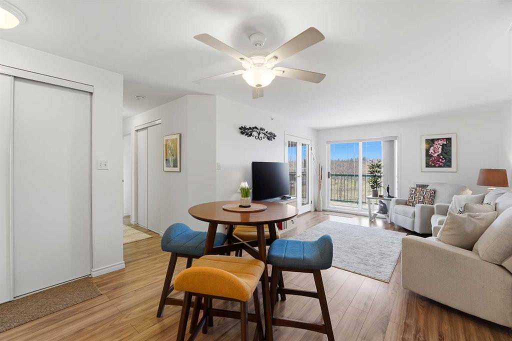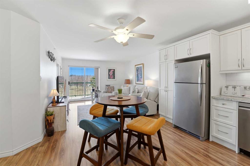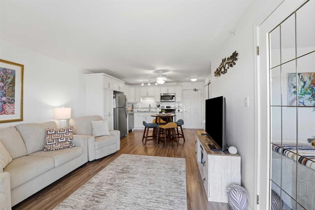 Welcome to easy, elevated living in this beautifully maintained 2-bedroom, top floor, 45+ condo—designed for comfort, convenience, and your next chapter. This inviting home features a bright, east-facing exposure with a spacious private balcony overlooking peaceful parkland—the perfect place to enjoy your morning coffee and sunrise views. You’ll appreciate the rare bonus of two large storage units right on the balcony, offering exceptional functionality without sacrificing space. Inside, the thoughtfully updated kitchen showcases premium stainless steel appliances, modern finishes, and plenty of storage. The refreshed bathroom adds a clean, contemporary touch, while the convenience of in-suite laundry makes everyday living effortless. Additional highlights include: Heated underground parking for year-round comfort Low maintenance fees and a well-managed building with a healthy reserve fund Located in the sought-after Golden Circle area where activities and companionship flourish. Offered fully furnished, this turnkey home is ideal for those looking to simplify, settle in, and start fresh without the hassle. Live with like-minded neighbours. A perfect blend of lifestyle and value—this is low-maintenance living at its best.