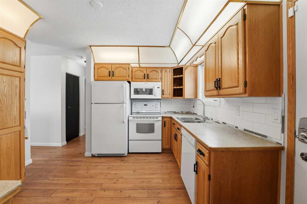 This adorable, practical and truly FUNCTIONAL home checks all the boxes- and then some. Perfectly located to schools, shopping, and everyday amenities, it also sits on a MAJOR BUS ROUTE, making commuting easy and ensuring prompt snow removal in winter. (a seriously underrated perk!) Inside the main floor features two beautiful spacious bedrooms and a four-piece bathroom, ideal for families, downsizers, or anyone wanting main-level living. The heart of the home is warm and INVITING, with a LARGE LIVIING ROOM, dining area, and a CHARMING COUNTRY KITCHEN that will impress any cook. You'll love the abundance of cabinetry, including a pull-out pantry complete with built in spice racks-both practical and wonderfully spacious. The fully developed basement expands your living space with a third bedroom, a three-piece bathroom, and a HUGE FAMILY ROOM. With NEWER windows already installed, this home is truly move in ready and offers IMMEDIATE POSSESSION! Step outside to find a DREAM SETUP: a 24x25 HEATED GARAGE wired with 220 volt, has its own furnace and hot water tank, plus a 10x24 shed wired with electricity, and a BEAUTIFULLY LANDSCAPED, FENCED YARD. Lots of patio stone out back, and the GAZEBO on the spacious deck stays!! Make this your forever home, COZY, CONVENIENT and exceptionally cared for. Neutral colors throughout, warm wood cabinets, there is nothing not to love about this home, it feels like a warm fuzzy sweater that hugs you!