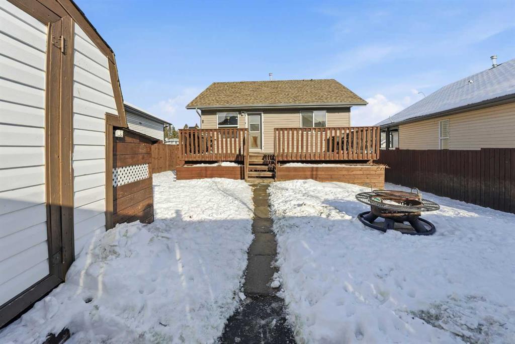 Welcome to this well-cared-for bilevel home located in a prominent, family oriented subdivision in Rocky Mountain House. Pride of ownership is evident throughout this 4 bedroom /2 bathroom home which is filled with natural light thanks to the large main floor windows. Recent updates include new vinyl plank flooring , baseboards and paint throughout all levels and rooms, along with newer high-end Whirlpool kitchen appliances. The shingles were replaced approximately 5 years ago, hot water tank in 2018 and the furnace had new thermostat, blower motor, and circuit board installed. The large fully fenced back yard offers plenty of space and features a built in dog house - perfect for your furry companions. There is plenty of room to build your dream garage in the back as there is parking for 3 + vehicles. Located close to parks, playgrounds, school bus service and all the amenities families need this move in ready home is an excellent opportunity for first time buyers looking to put down root in a welcoming community.
