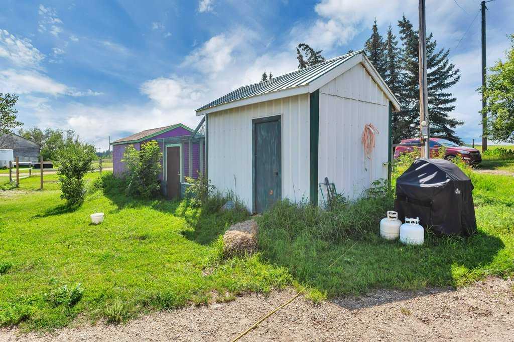 Bring the horses!! Located just 6 minutes to Alix on pavement! This Character home was brought in and placed on a newer poured concrete foundation in 1977. The plumbing and electrical has been updated over the years. This 5.45 Acre FENCED property features a detached 30'x60' shop, PLUS a 40'x90' HEATED BARN / (currently used as a RIDING ARENA) with storage, and an auto waterer in the North large pasture. The barn/arena previously had water to it, so may still have the ability to have that now. Just inside the door of the home is the mudroom and a heated tack room to store saddles etc. Inside you'll notice the character and charm of this beautiful two story with tons of space and windows throughout. A bedroom/office is located right off of the kitchen which would work nicely as a walk in pantry! There is a full bathroom on this level, functional kitchen with large dining space and living room. Upstairs has 4 bedrooms including the large primary that provides its own ensuite. Downstairs has been partially developed, currently 2 rooms, 1 bedroom and the other considered a den as the deck covers the window (no egress). Other updates to note is the NEW SIDING July 2025, new outdoor riding pen, some new windows, newer roof, & new Culligan water UV filtration system. This land is FULLY FENCED so the livestock can roam safely. There is also a heated shed with outdoor space attached for chickens, bunnies etc. Acreages this close to town haven't come up much in the last several years, your right in between Alix, Mirror and Tees! A perfect spot for some country living!