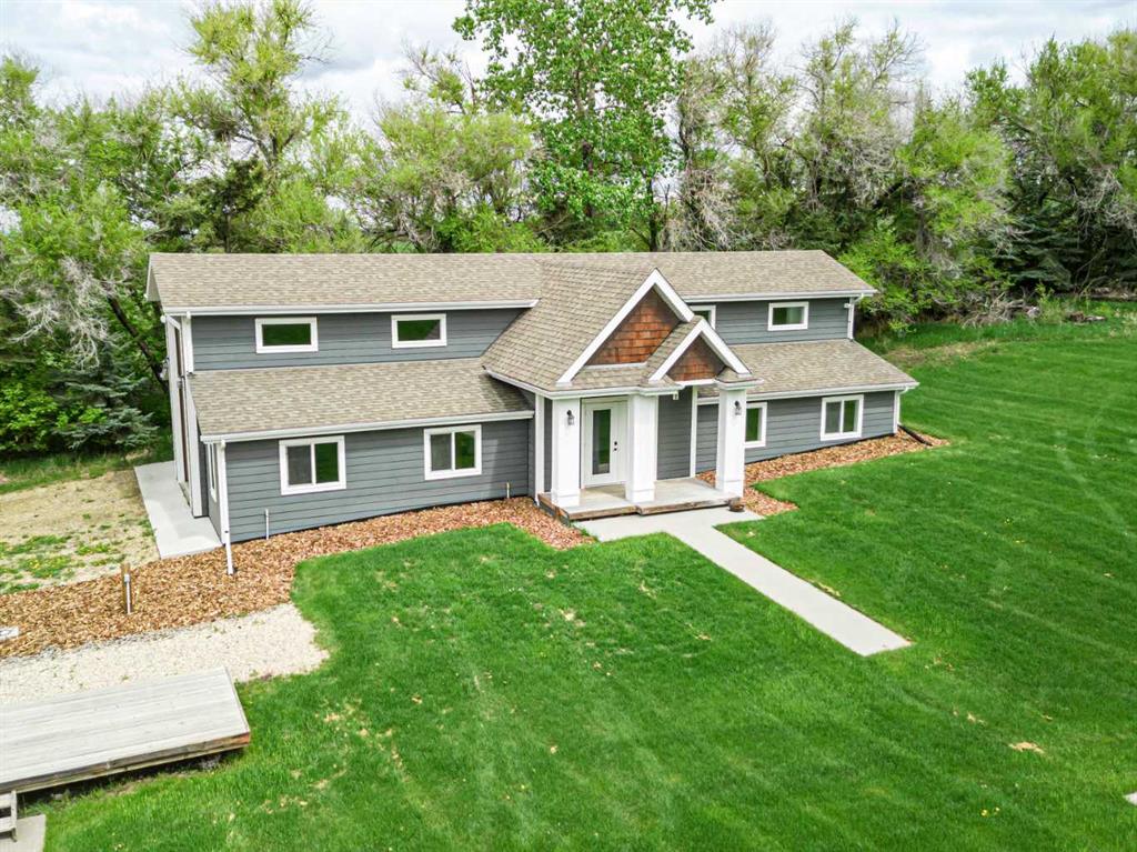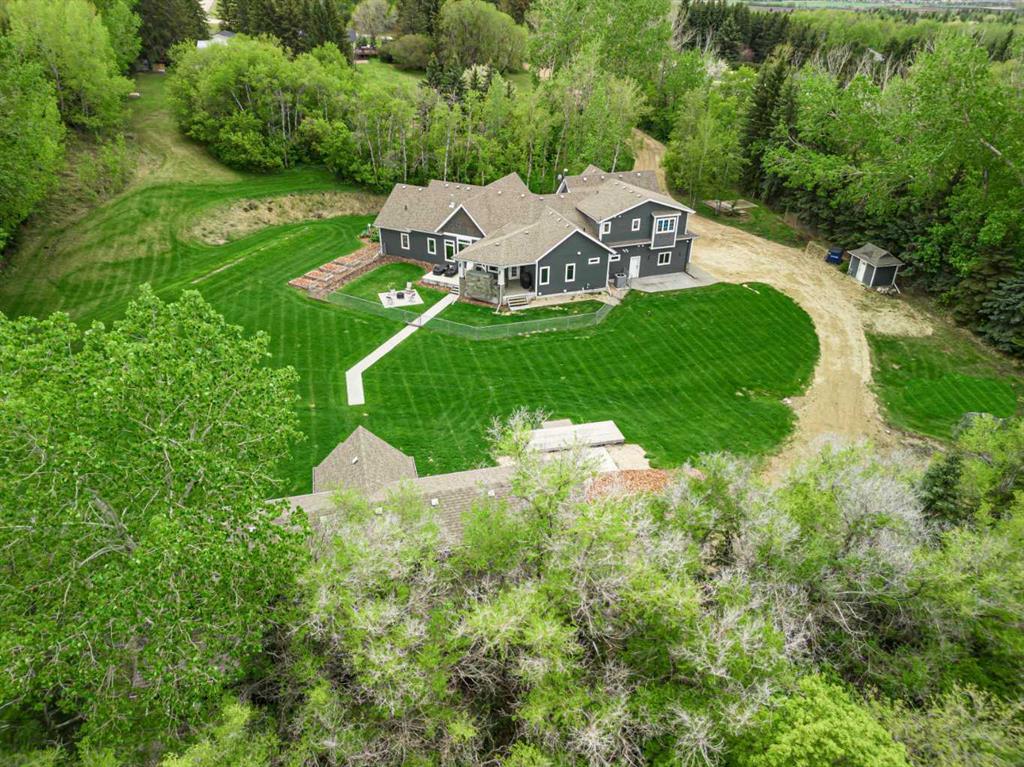 A Rare Find! Why settle for city living when you can own your own private paradise just minutes from Red Deer? This luxurious 2.45-acre estate offers unparalleled privacy, elegance, and convenience. Enter through a stunning high-end entrance gate, equipped with cameras and an integrated security system for added peace of mind. A serene, tree-lined driveway leads you to this custom-built home, showcasing the finest materials and craftsmanship throughout. With 3,536 sq. ft. above grade, the home features multiple vaulted ceilings with knotty pine planks and maple-finished beams. The spacious living room boasts wide-plank white oak hardwood flooring, vaulted ceilings, a floor-to-ceiling stone-front gas fireplace with built-ins on either side, and large windows offering breathtaking views of the expansive acreage. The adjoining two-tiered back deck includes an additional gas fireplace, perfect for outdoor relaxation and entertaining. The home has been freshly painted throughout and is equipped with central air conditioning.The chef’s kitchen is a dream, complete with floor-to-ceiling soft-close white cream cabinetry, granite countertops, a full tile backsplash, pot and pan drawers, under-cabinet lighting, high-end Monogram appliances, a six-burner gas range, a statement range hood, and a commercial-sized refrigerator. The massive island features leathered granite countertops and a lowered eating bar. The cozy dining area opens to the beautiful back deck, making it ideal for entertaining. A huge walk-in pantry adds even more convenience. The spacious primary bedroom is a true retreat, featuring a spa-like ensuite with a soaker tub, a massive two-person steam shower, dual walk-in closets, and separate vanities. The main floor is completed by an additional bedroom, a 3-piece bathroom, a private office, a laundry room, and a large mudroom. Upstairs, you’ll find a second bedroom with breathtaking views, a built-in window seat, and a 4-piece ensuite, along with an additional office. The massive family/games room features vaulted ceilings, a wet bar with a microwave and fridge, and a TV with 3D capability for ultimate entertainment. A second laundry room adds convenience to multi-level living. Car enthusiasts and hobbyists will appreciate the oversized attached triple garage (40' x 32'), complete with in-floor heating, hot and cold water taps, and ample workspace. The beautifully landscaped yard includes an upgraded driveway, an insulated shed (currently a cat/dog house), raised garden beds, two RV hookups, and an impressive 30' x 62' shop. The shop features a finished office, a 14-foot overhead door, and architectural details that complement the home. This property has seen approximately $250,000 in recent upgrades over the past few years. If additional space is desired, the sellers have blueprints for both the house/shop, & plans for more bedrooms. The property is minutes away from golf, skiing & city amenities. This beauty won't last long!