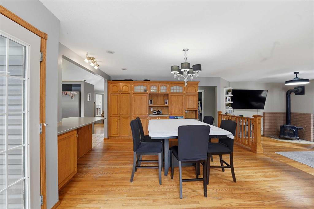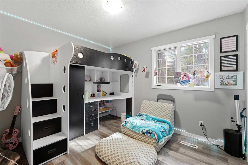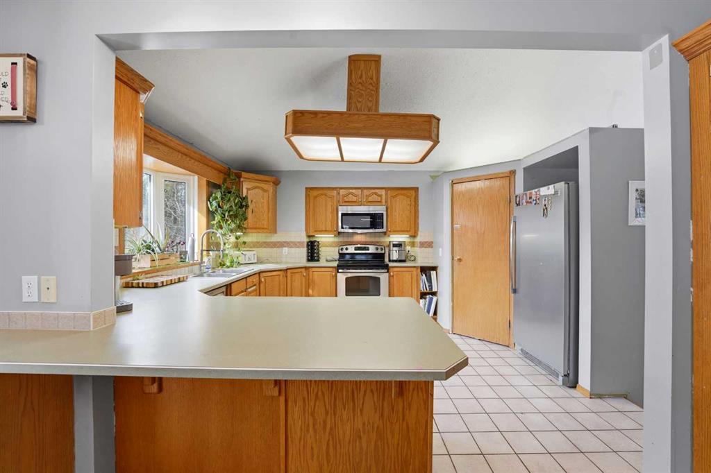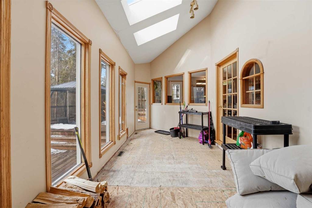 Set on 1.01 acres, this 1½-storey home provides a functional and spacious layout with room to grow. The upper-level features three bedrooms, including a primary suite with a 4-piece ensuite and walk-in closet, along with a second full bathroom serving the additional bedrooms. The main floor offers multiple living spaces including a great room with wood fireplace, kitchen and dining area, a separate living room with a wood stove, home office, 2-piece bath, and a 3-season heated sunroom—a great spot to extend your enjoyment of the outdoors. Downstairs, the basement includes a fourth bedroom, 3-piece bath, a large family room, laundry area, and generous storage space. Outside, the property is well set up for acreage living with a heated 23’x23’ attached garage, RV parking, three garden sheds, and a chicken coop. Mature spruce trees surround the home, and a circular driveway creates a welcoming approach. The backyard features a large deck with patio gazebo, ideal for relaxing or entertaining. Over the past five years, improvements have been started, including roof replacement, porcelain tile in the front entry and hallway, and LVT flooring on the stairs and upper level. This leaves a strong foundation to continue updating and customizing the home to your own style and needs. If you’ve been looking for an acreage with space, layout, and the ability to make it your own, this West Ridge property is well worth a look.