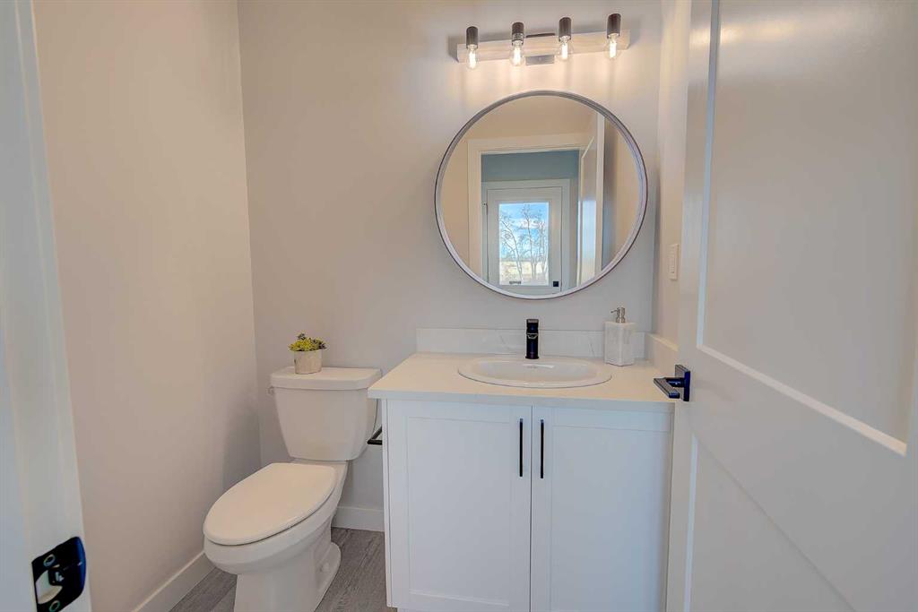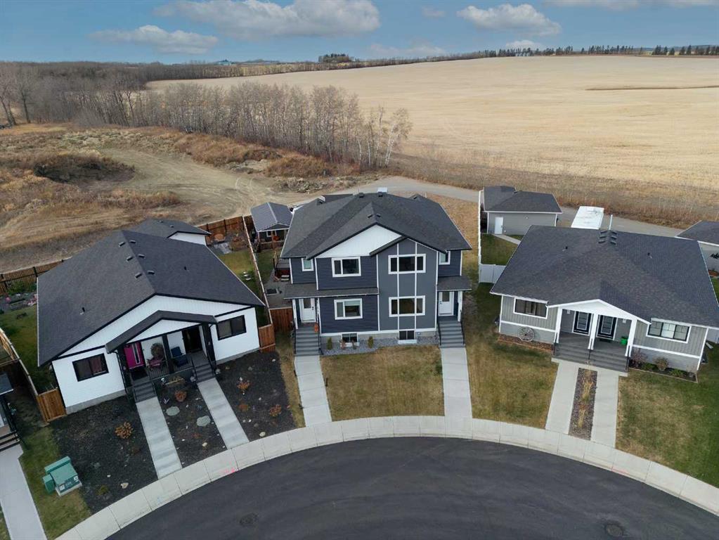 JUST LIKE NEW! This 3 bedroom 2.5 bathroom half duplex is in immaculate condition, featuring a huge PIE SHAPED LOT where you could build as large as a triple garage. Many possibilities are available with separate side entry access to basement. Enjoy peekaboo lake views from the primary bedroom. The extra bonus...it's just a short walk/drive to the lake! As you enter the home you'll be impressed by the amount of natural light in the living room area. The open kitchen/living room/dining room floor plan is great for family gatherings or entertaining. The kitchen features a large central island with quartz counter tops, upgraded stainless steel appliances and ample counter space. Just off the dining area is a garden door to the rear deck and expansive rear yard with parking pad and paved alley. Upstairs you will find 3 good size bedrooms including the master bedroom with a lake view, which features a walk in closet and 4 piece ensuite. An additional 4 piece main bathroom and upper floor laundry complete the upper floor. The basement with separate side entry access is undeveloped and awaiting your own personal touches. Water softener is a bonus. Hard to find a home with a lot this large....don't delay! Balance of new home warranty.