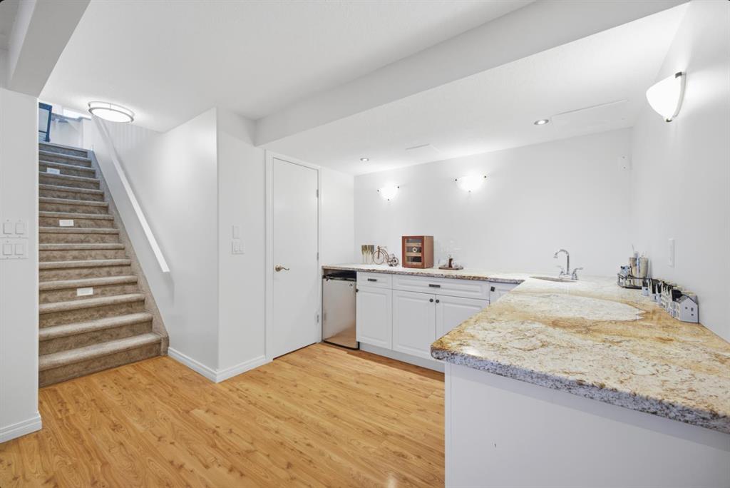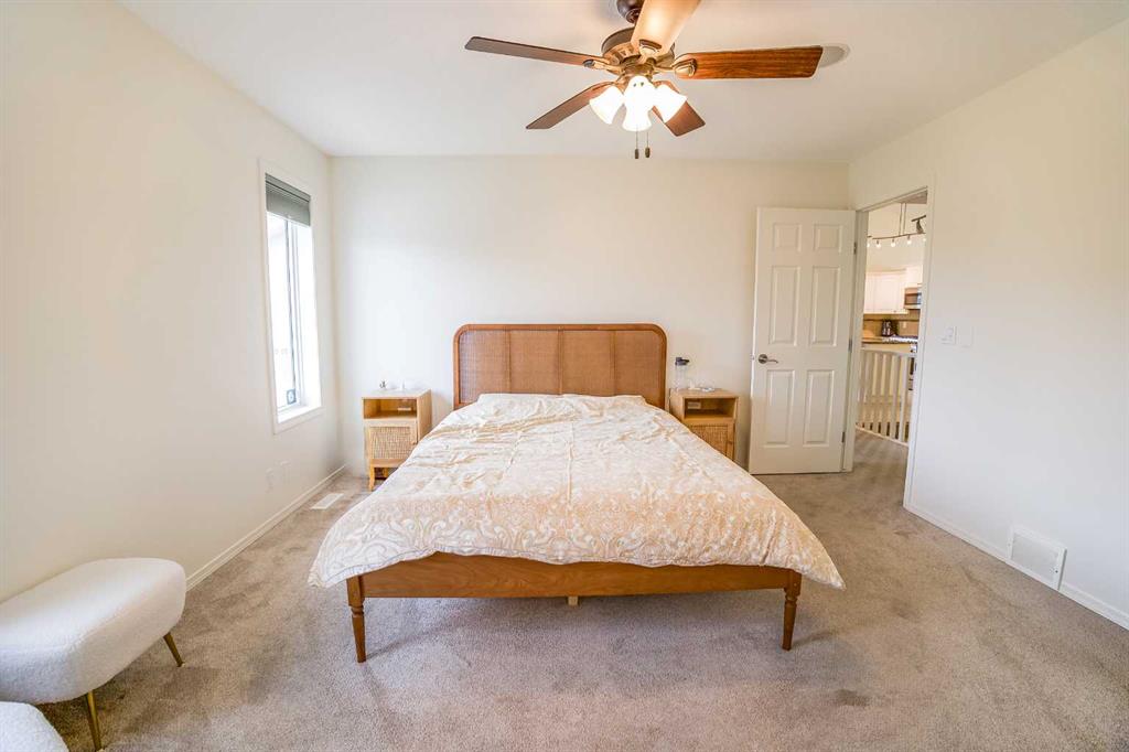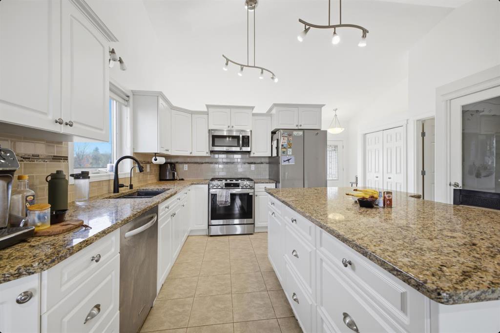 This 5-bedroom, 3-bathroom bungalow is bright, modern, and ready for quick possession. The main floor features vaulted ceilings, large windows, a cozy gas fireplace, and a gorgeous kitchen with granite countertops, island, gas stove, and pantry. Convenient main floor laundry with newer washer/dryer and sink, plus 3 bedrooms including a primary suite with walk-in closet and private ensuite. Located in a highly desired area of Fox Run and close to the school, you can even watch the kids walk to class! The fully finished lower level is perfect for entertaining with a granite wet bar, 2 beverage fridges, spacious rec room, 2 large bedrooms, and full bath. Fresh paint in the past 2 years and large windows keep it bright and welcoming. Outside enjoy a large fenced yard with RV parking, shed, dog run with garage access, and plenty of space for family living. **New A/C unit, Northside shingles just replaced and South side done within past few years. Home furnishings all from Urban Barn are negotiable and sold separately.