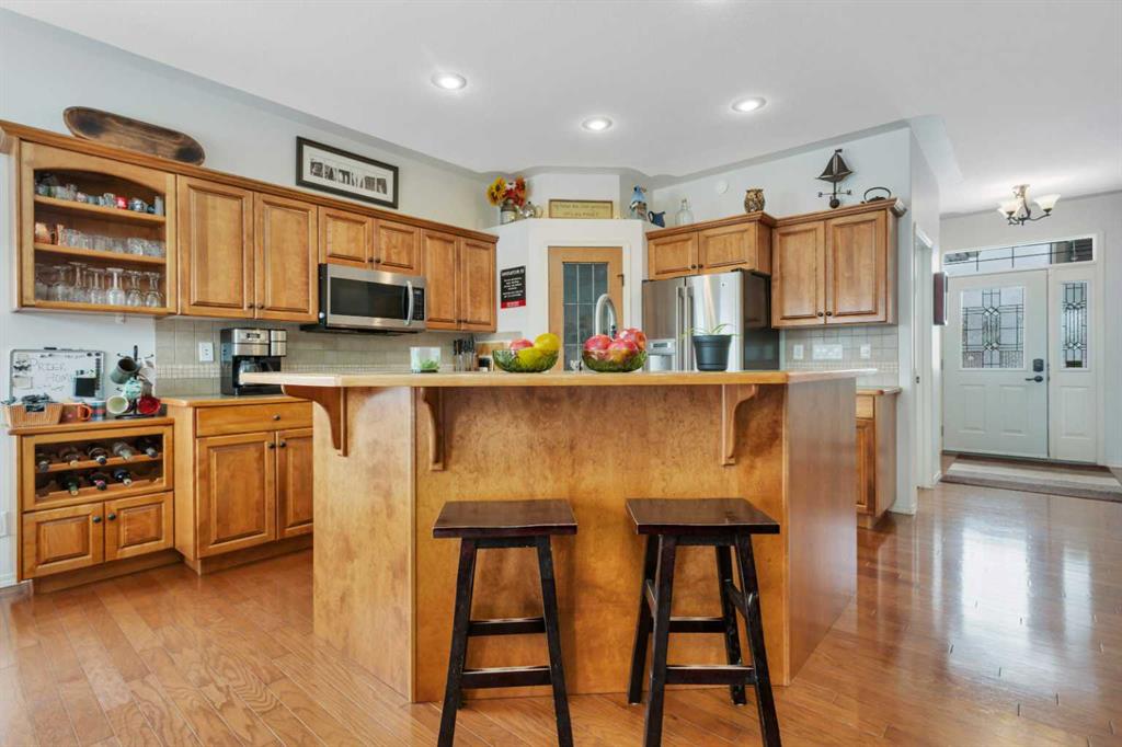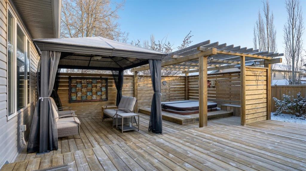 Welcome to 46 Lindman Close, a move-in ready 5-bedroom, 3-bathroom bungalow in Lakeway Landing, Sylvan Lake. Offering 1,312 sqft, a fully developed basement, recent updates, and a double heated attached garage, this home combines functional space, everyday comfort, and a great location near schools, walking trails, shopping, and local amenities. Located in the desirable Lakeway Landing neighbourhood, this well cared for bungalow features an inviting open concept layout filled with natural light. The spacious kitchen flows into the dining and living areas, creating a comfortable space for everyday living and entertaining. Three bedrooms are located on the main floor, including a generous primary suite, while the third bedroom near the front entrance makes an incredible home office. Main floor laundry adds everyday convenience. The fully developed basement expands the living space with two additional bedrooms, a large family room with a cozy fireplace, and a dedicated theatre room for movie nights. A four piece bathroom with a relaxing jet tub and the comfort of in floor heating complete the lower level. Recent improvements include a new furnace blower motor, fresh paint in the primary suite and both basement bedrooms, updated kitchen faucet with new shut off valves, a new drain in the main floor bathroom sink, new LED soffit lighting, laundry room improvements, and a new hot tub cover. Outside, the backyard is designed for relaxing and entertaining with a tiered deck, gazebo, hot tub, and raised garden boxes, all situated on a 55 x 120 lot. The double heated attached garage adds comfort and practicality year round. This home offers the space, layout, and location many Sylvan Lake buyers are searching for. Flexible possession may be available. With easy access to Highway 11, this property offers a great balance of comfort, convenience, and the lifestyle that makes Sylvan Lake living so popular.